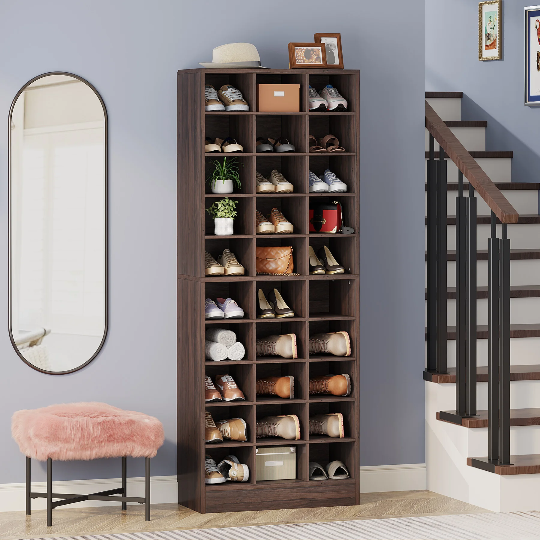 MonoWood 10-Tier Shoe Storage Cabinet, Wooden Shoe Rack with 30 Cubbies, Shoe Organizer Rack with Adjustable Partition