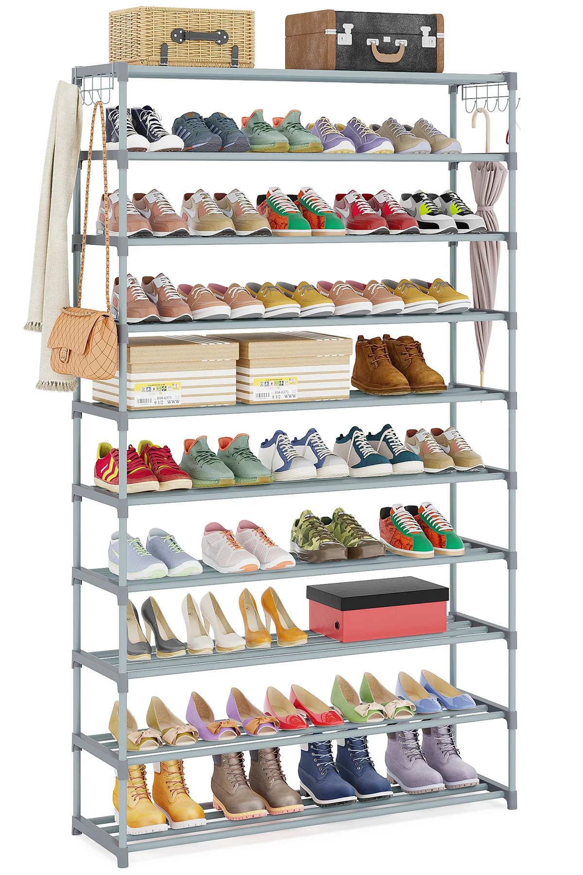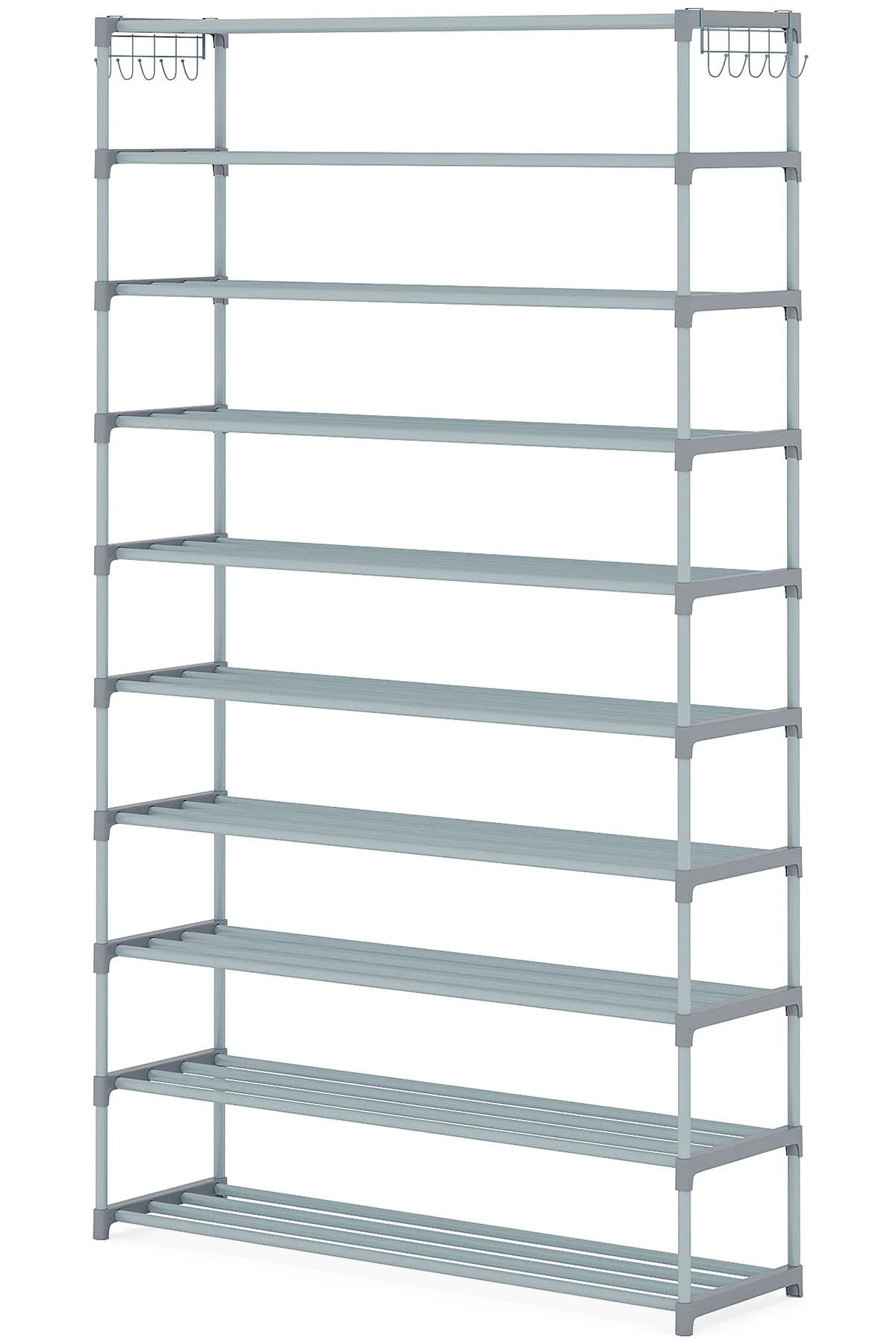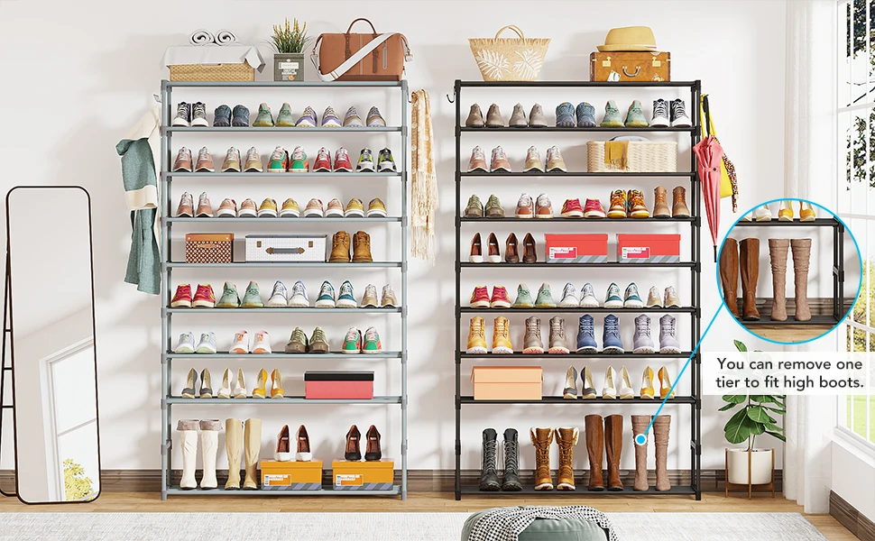 👟 10 Tier Metal Shoe Organizer - Are you still bothered by shoes all over the floor? Our 10-tier shoe rack is designed to provide your entire family members with a large enough storage space for every pair of shoes. Whether it's adult shoes, children's shoes, flats, sneakers, or high top shoes, this stylish and functional metal shoe shelf will give them a sturdy "home".