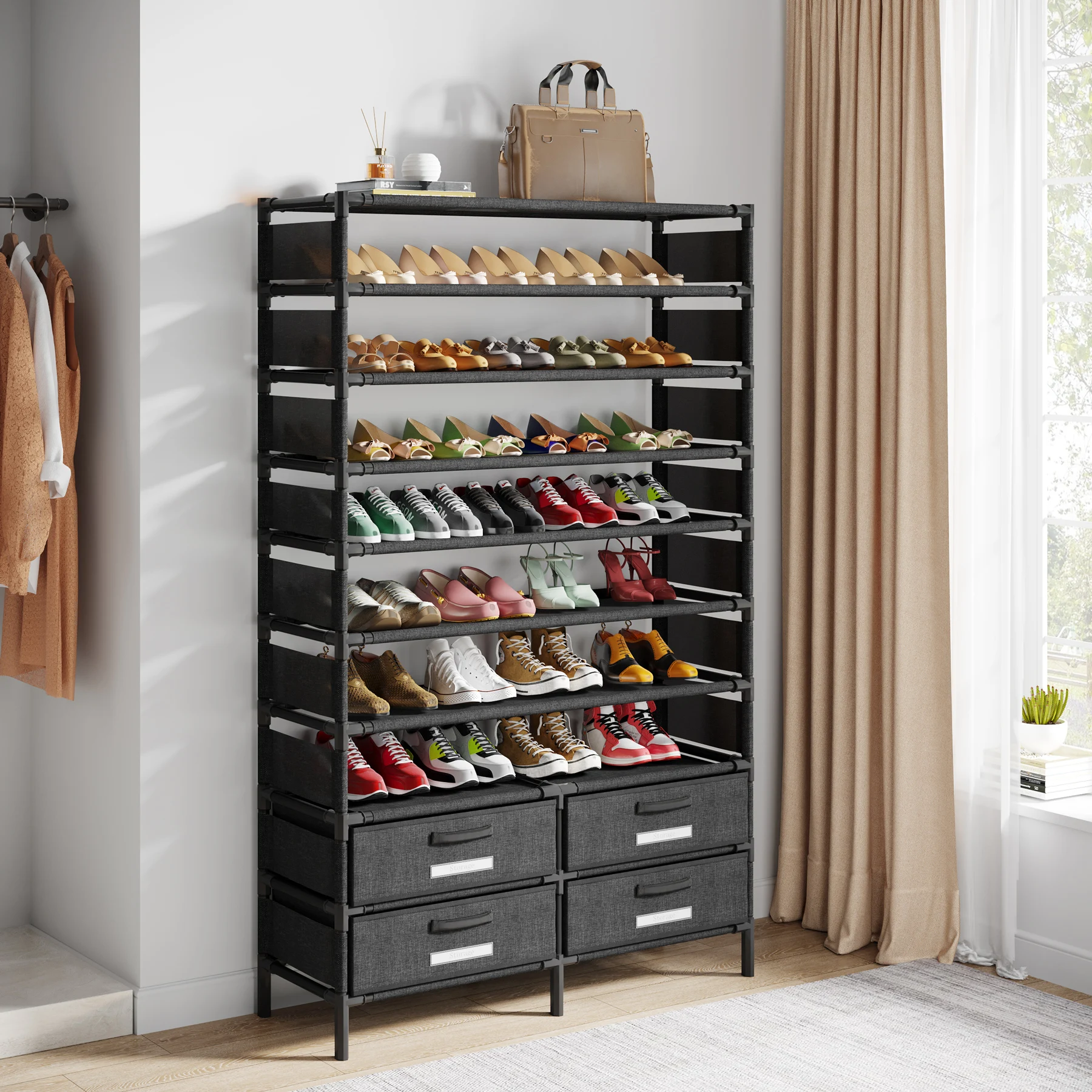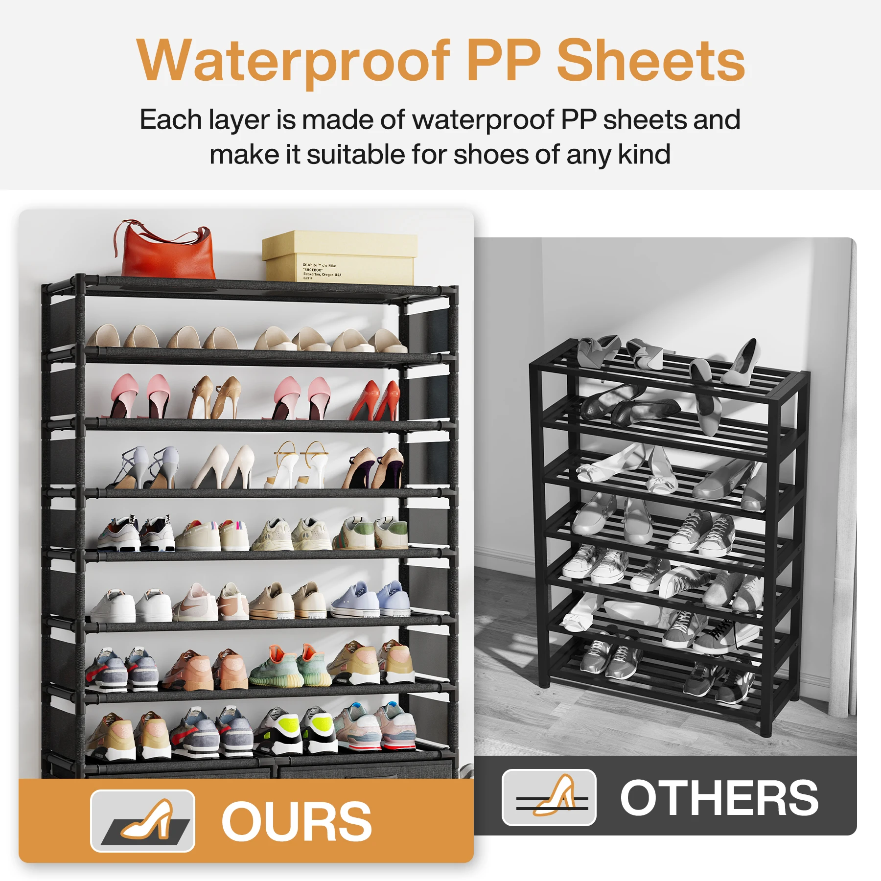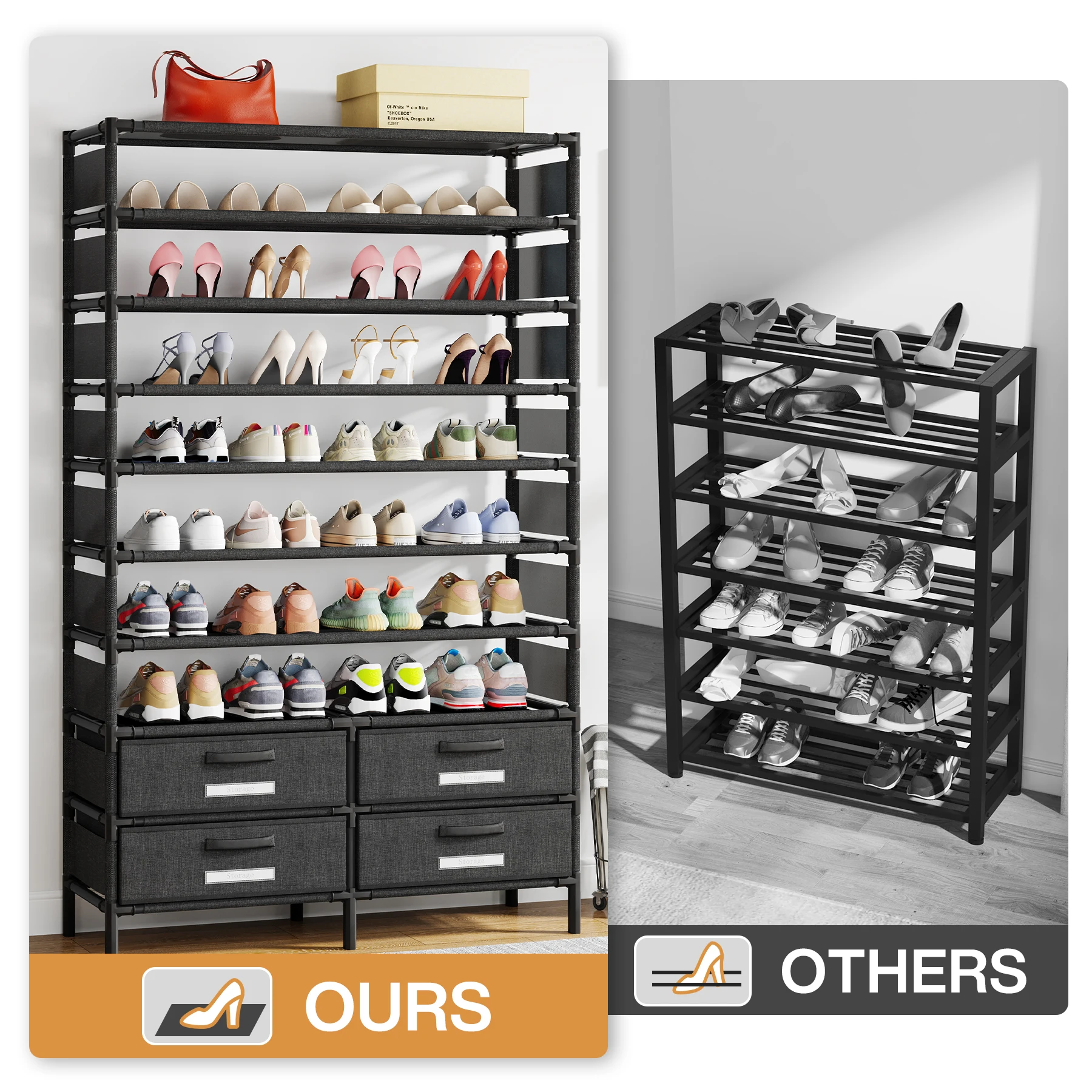 👟 10 Tier Metal Shoe Organizer - Are you still bothered by shoes all over the floor? Our 10-tier shoe rack is designed to provide your entire family members with a large enough storage space for every pair of shoes. Whether it's adult shoes, children's shoes, flats, sneakers, or high top shoes, this stylish and functional metal shoe shelf will give them a sturdy "home".