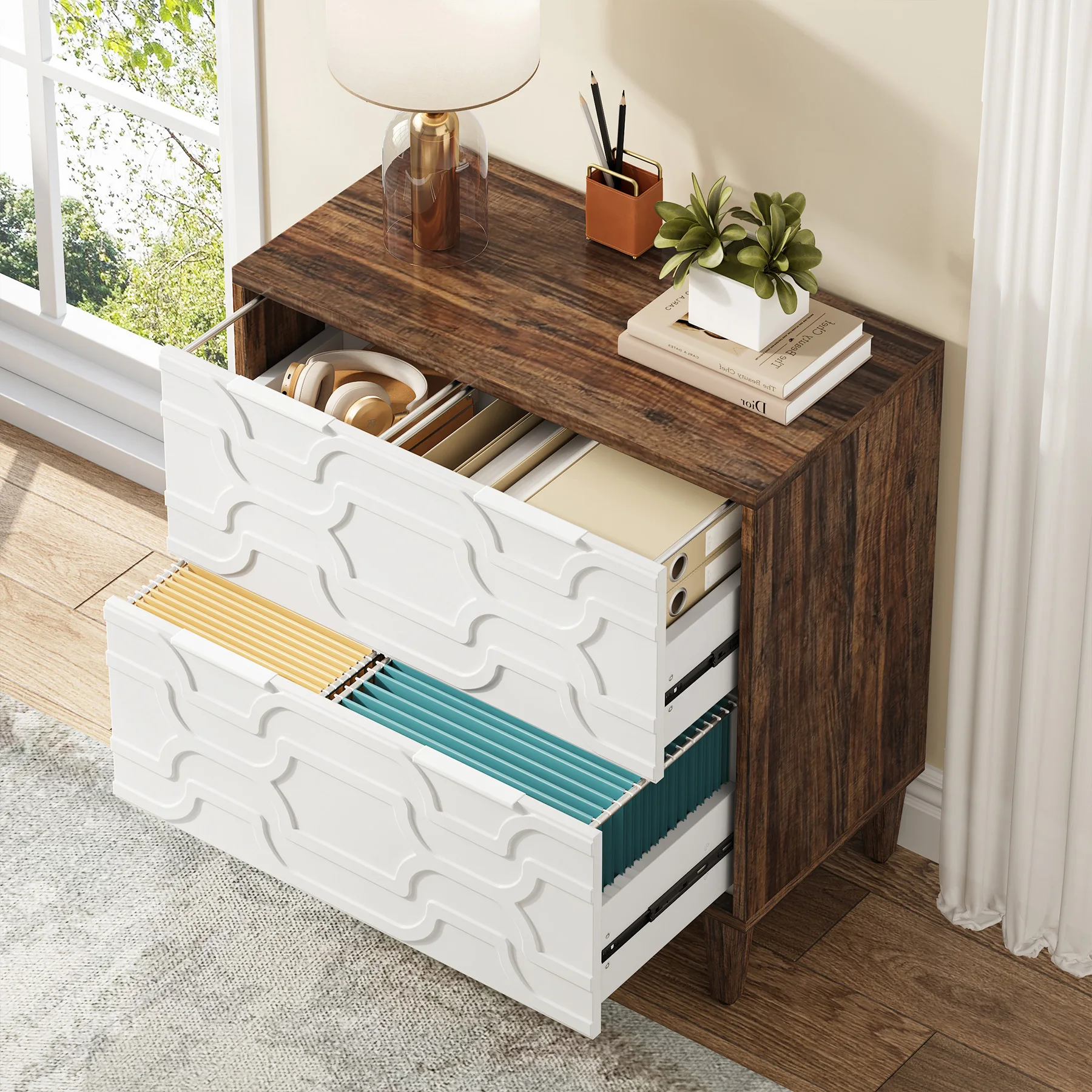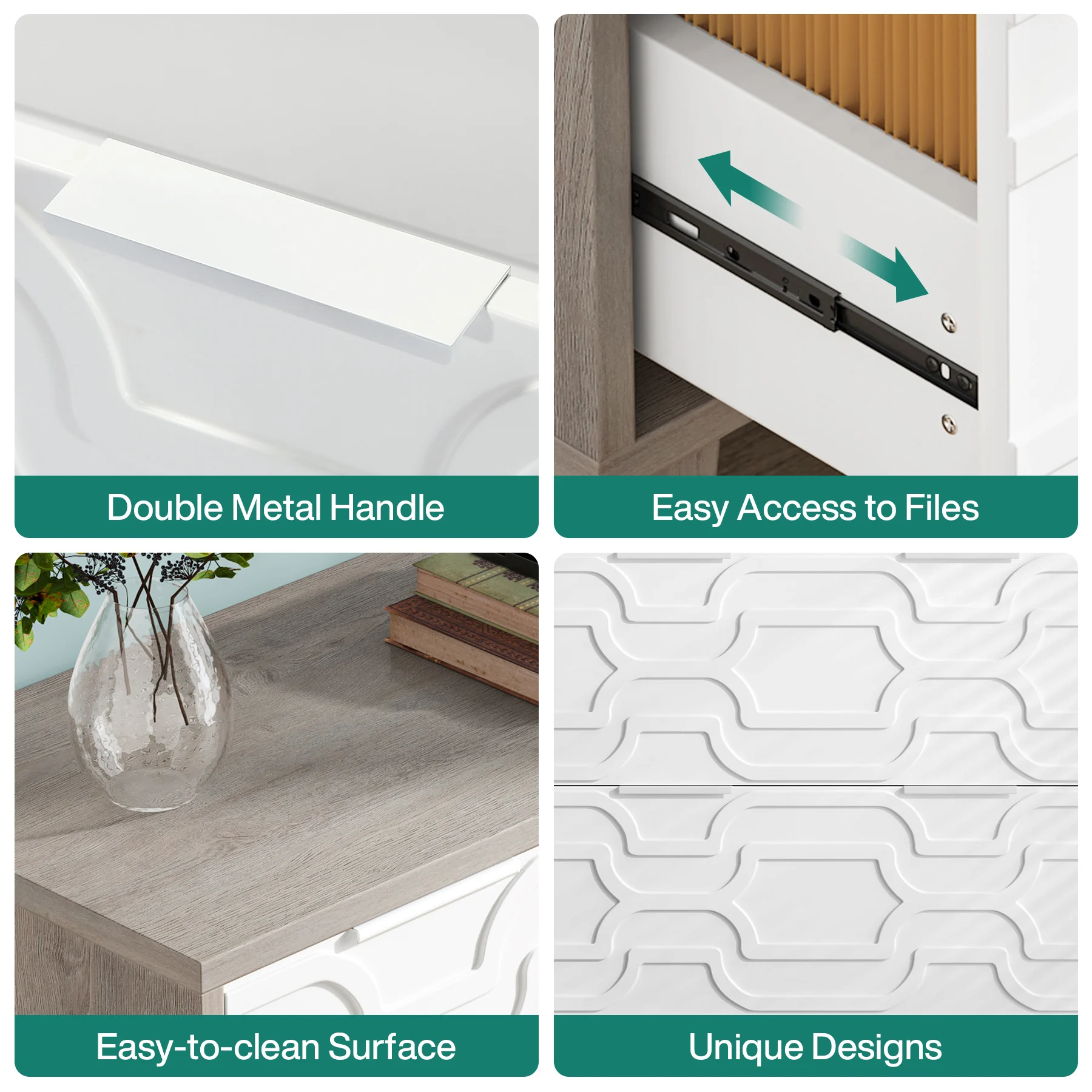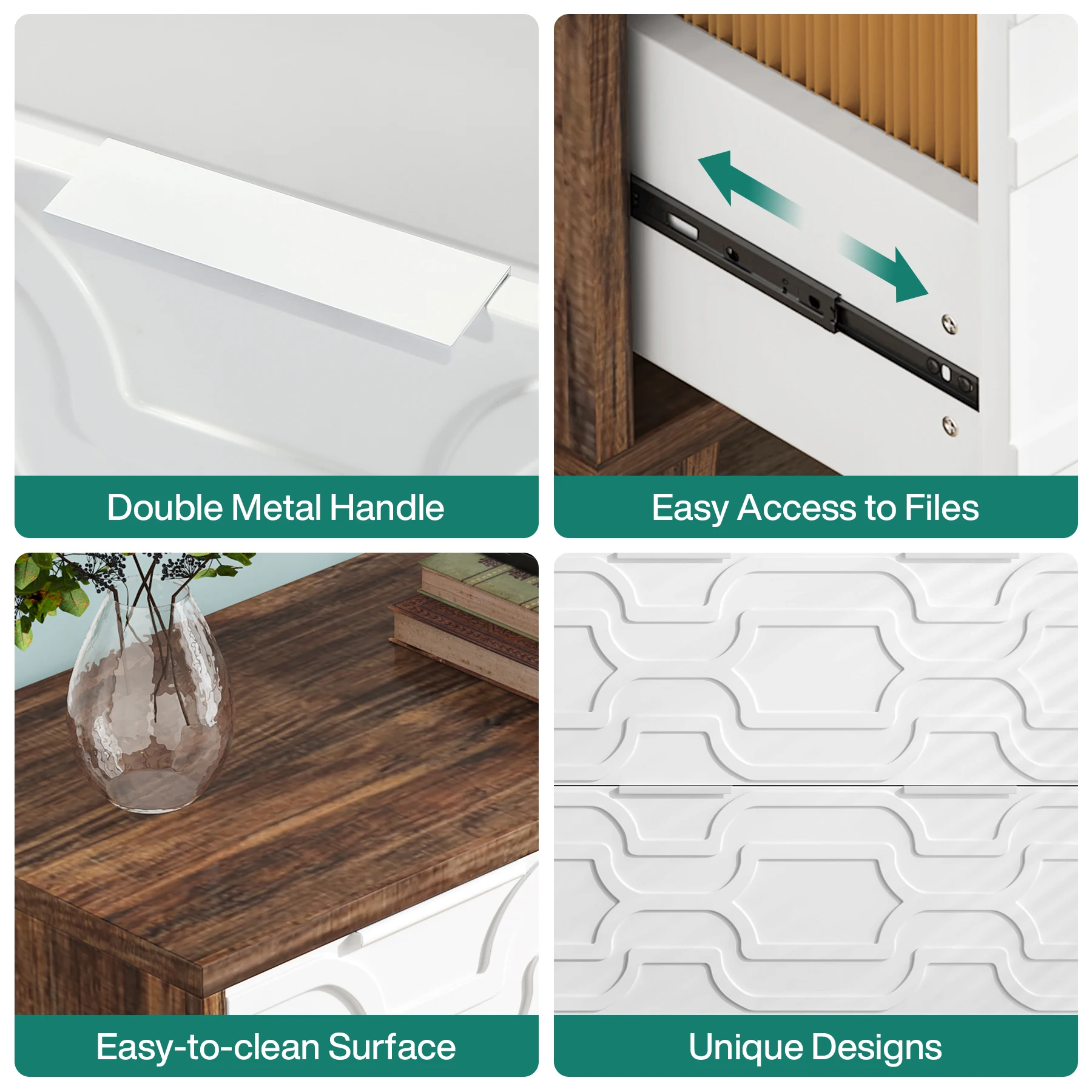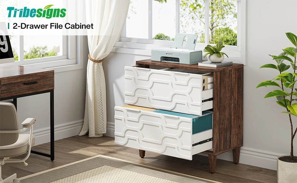 SPACIOUS STORAGE: Experience the convenience of a well-organized workspace with this lateral file cabinet. The spacious drawers on smooth rails allow easy access to your documents while the sturdy desktop can accommodate your printer, scanner or other office suppliers, simplifying your workspace and increasing productivity.
