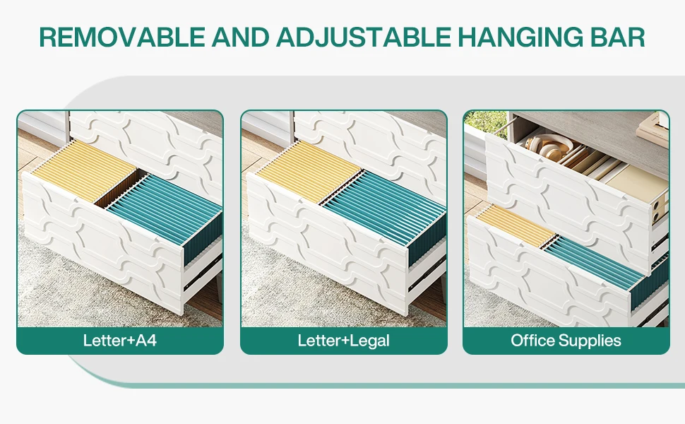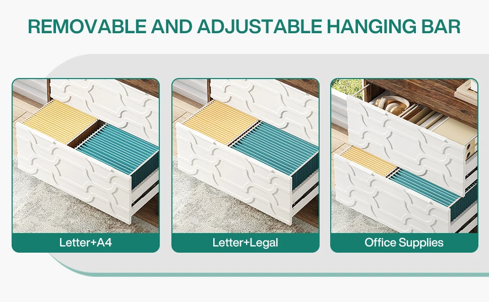 UTILITY FILE DRAWER: Looking for a reliable and spacious file cabinet to store all your study and office supplies? Look no further than this filling cabinet, which features two movable stainless steel hanging rods that can be positioned to fit legal, letter, or A4 size folders. Whether you're at home or in the office, this storage cabinet has got you covered.