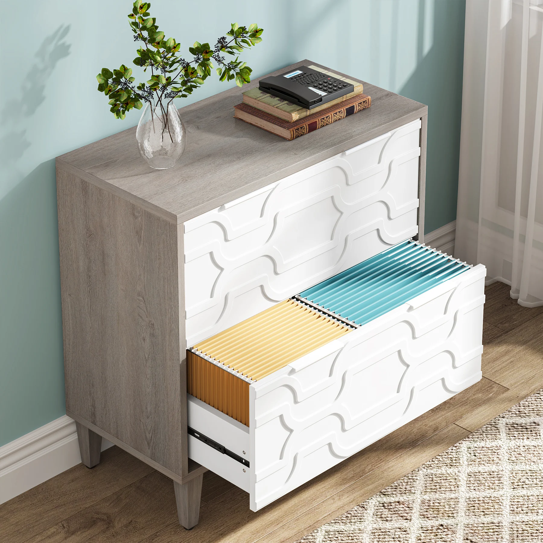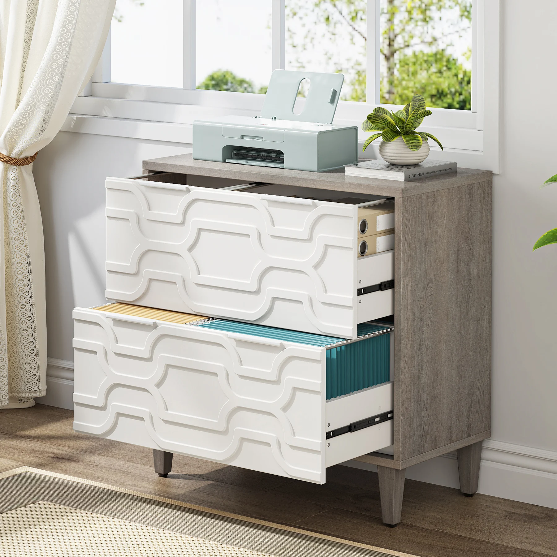 ATTRACTIVE APPEARANCE: Say goodbye to the chaos of a cluttered desk, this 2-drawer file cabinet provides a solution to the mess and brings a sense of elegance to your workspace. With its curved white drawer design and modern gray finish, this office filing cabinet oozes charming appeal and makes it a fantastic fit for any room.