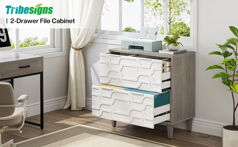 SOLID CONSTRUCTION: The surface of this 2-drawer filing cabinet with water-proof and wear-resistant paint that ensures long time use. Constructed with E0-grade particle board, this office file cabinet can hold up to 350lbs. It comes with four adjustable solid wood legs and tip-over restrains for increased stability and safety.