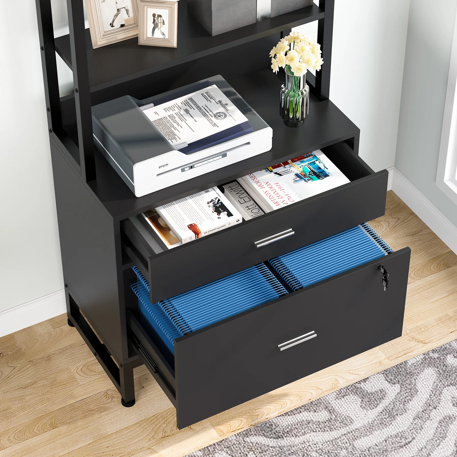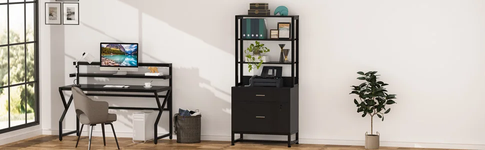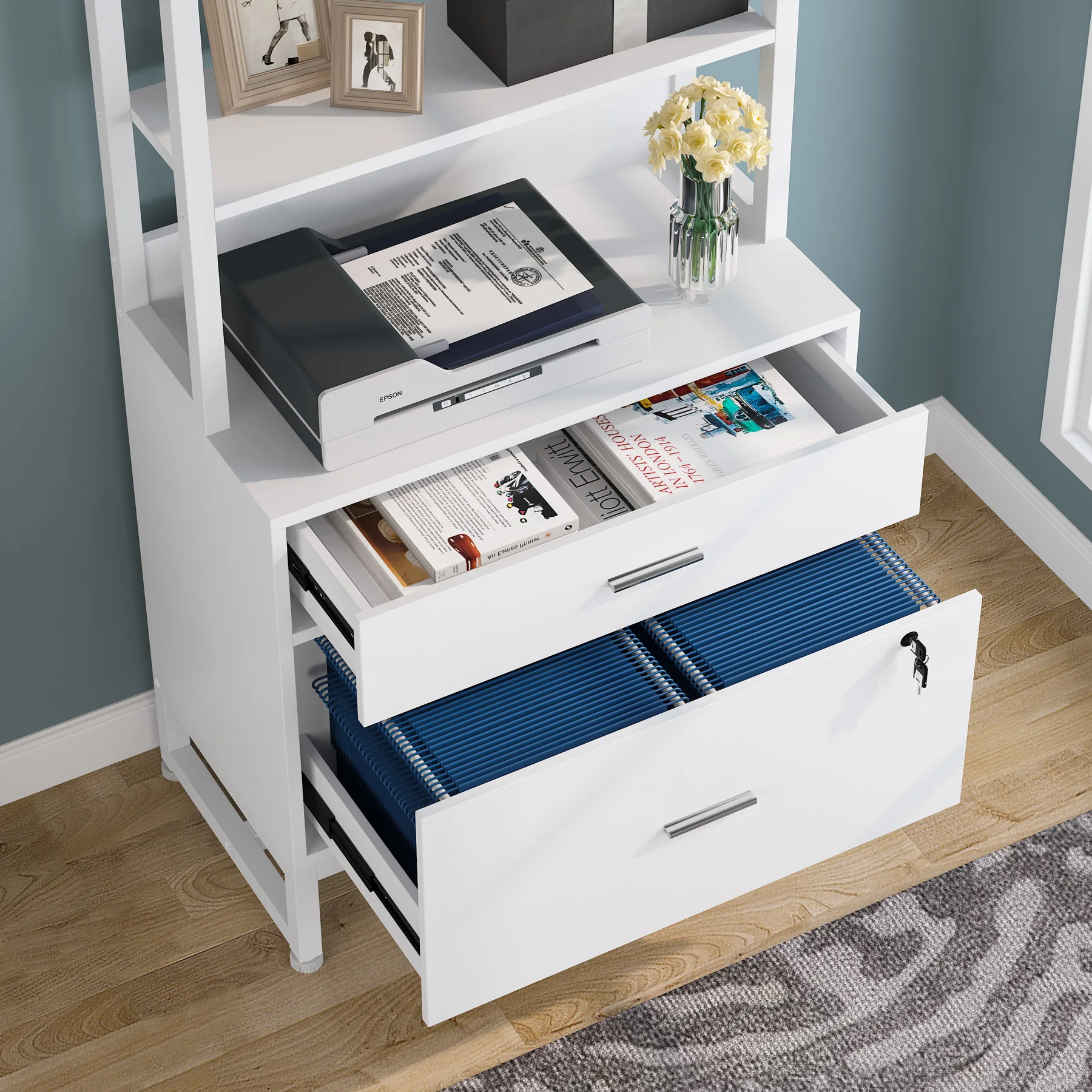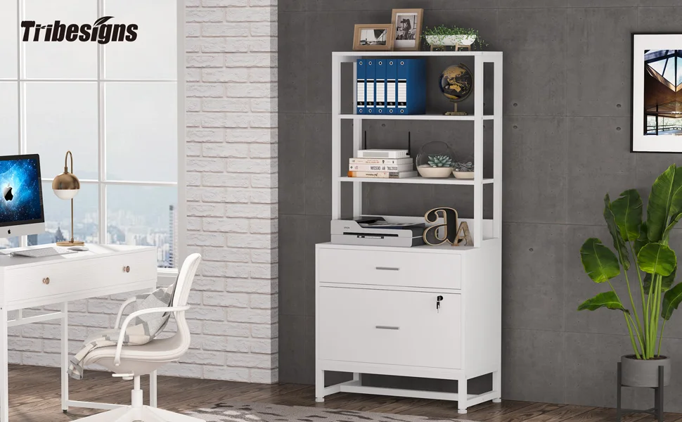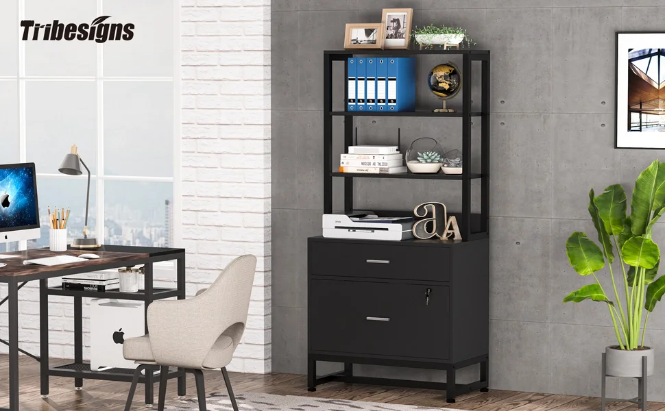 Large Storage Capacity - This office cabinet not only has two drawers for important documents but also features a four-tier open bookcase for storage and display. Simple and practical, an elegant option to systematize your collection of books, files, and office supplies.