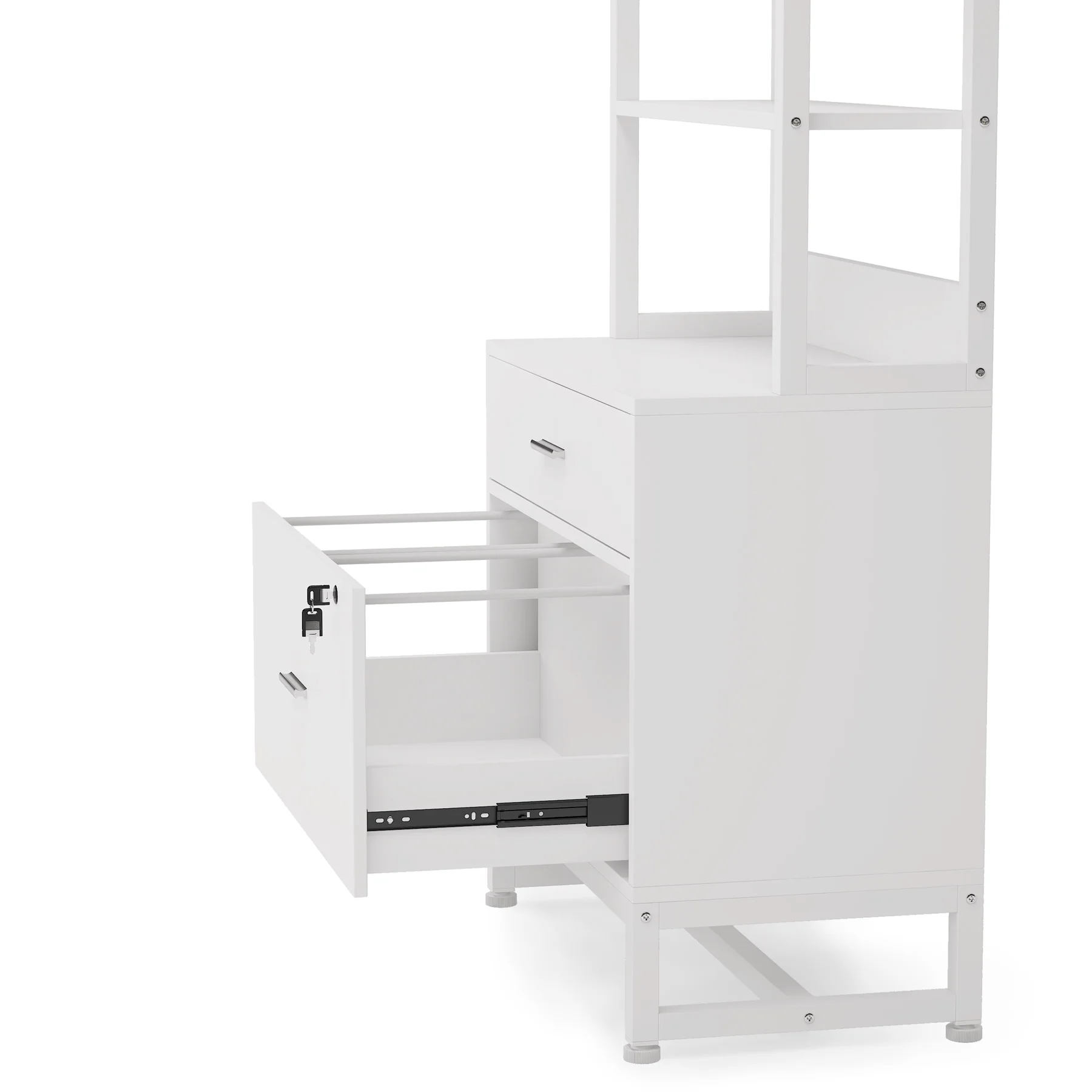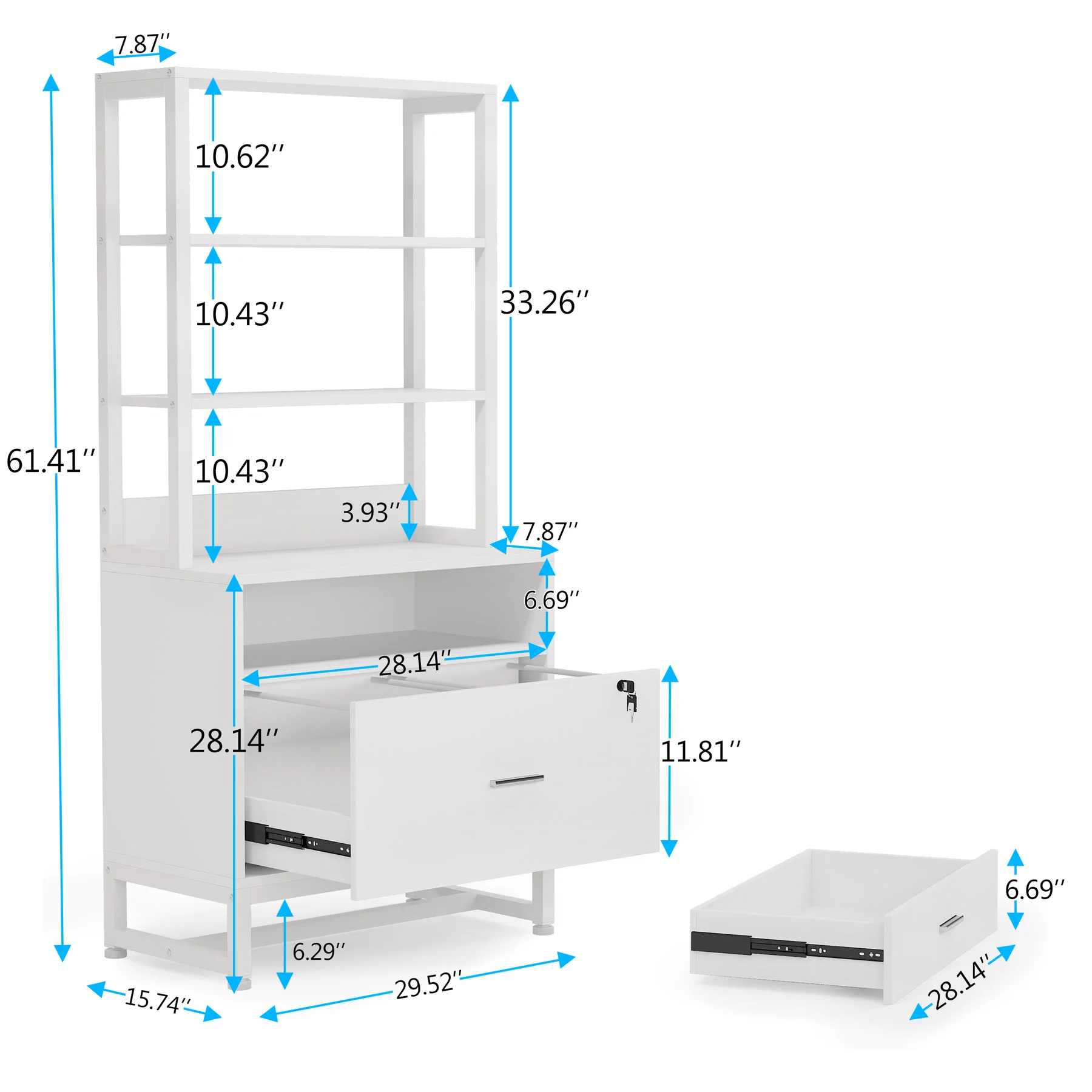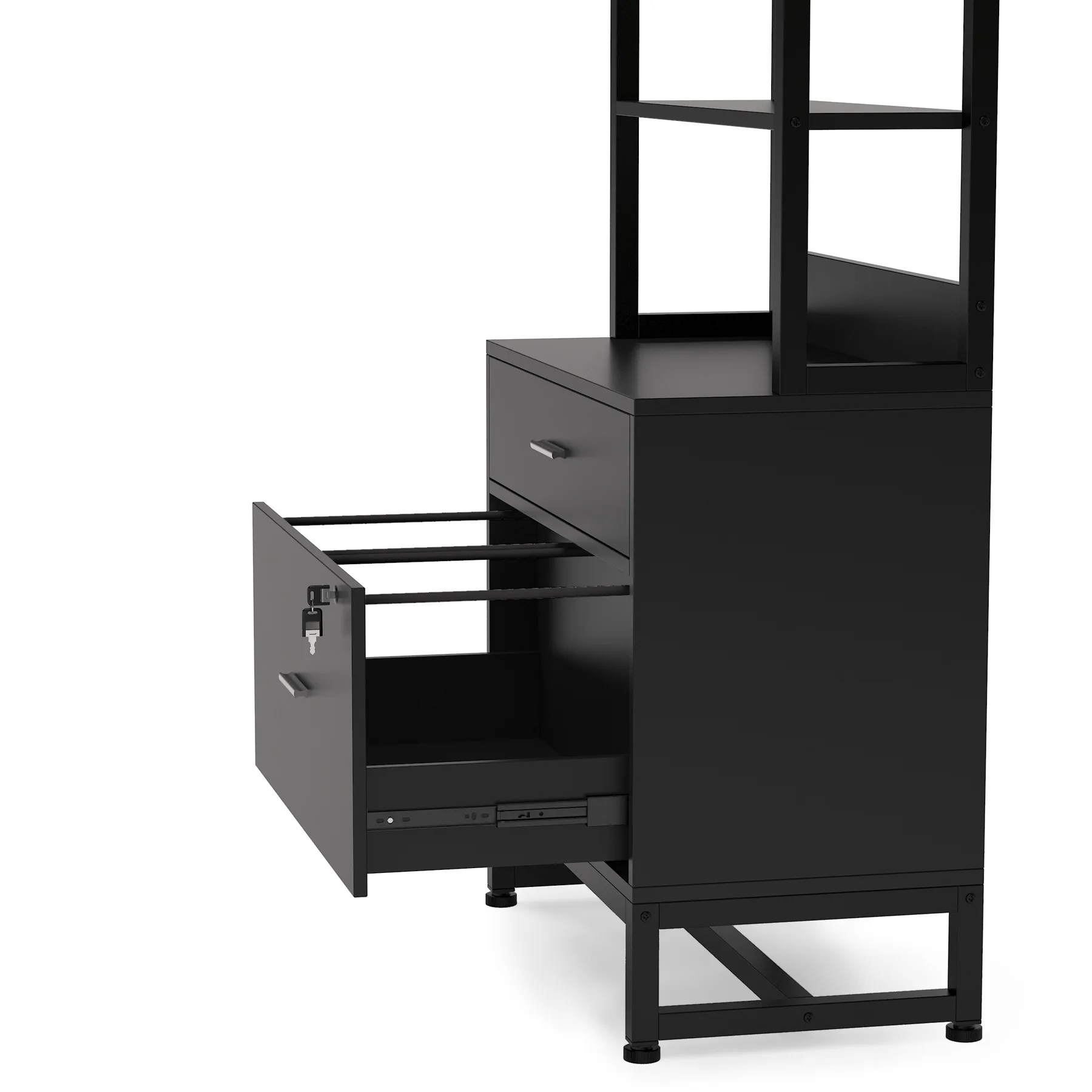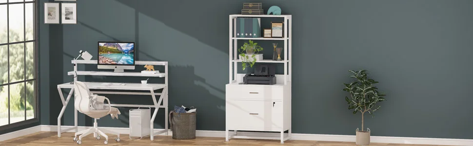 Large Storage Capacity - This office cabinet not only has two drawers for important documents but also features a four-tier open bookcase for storage and display. Simple and practical, an elegant option to systematize your collection of books, files, and office supplies.