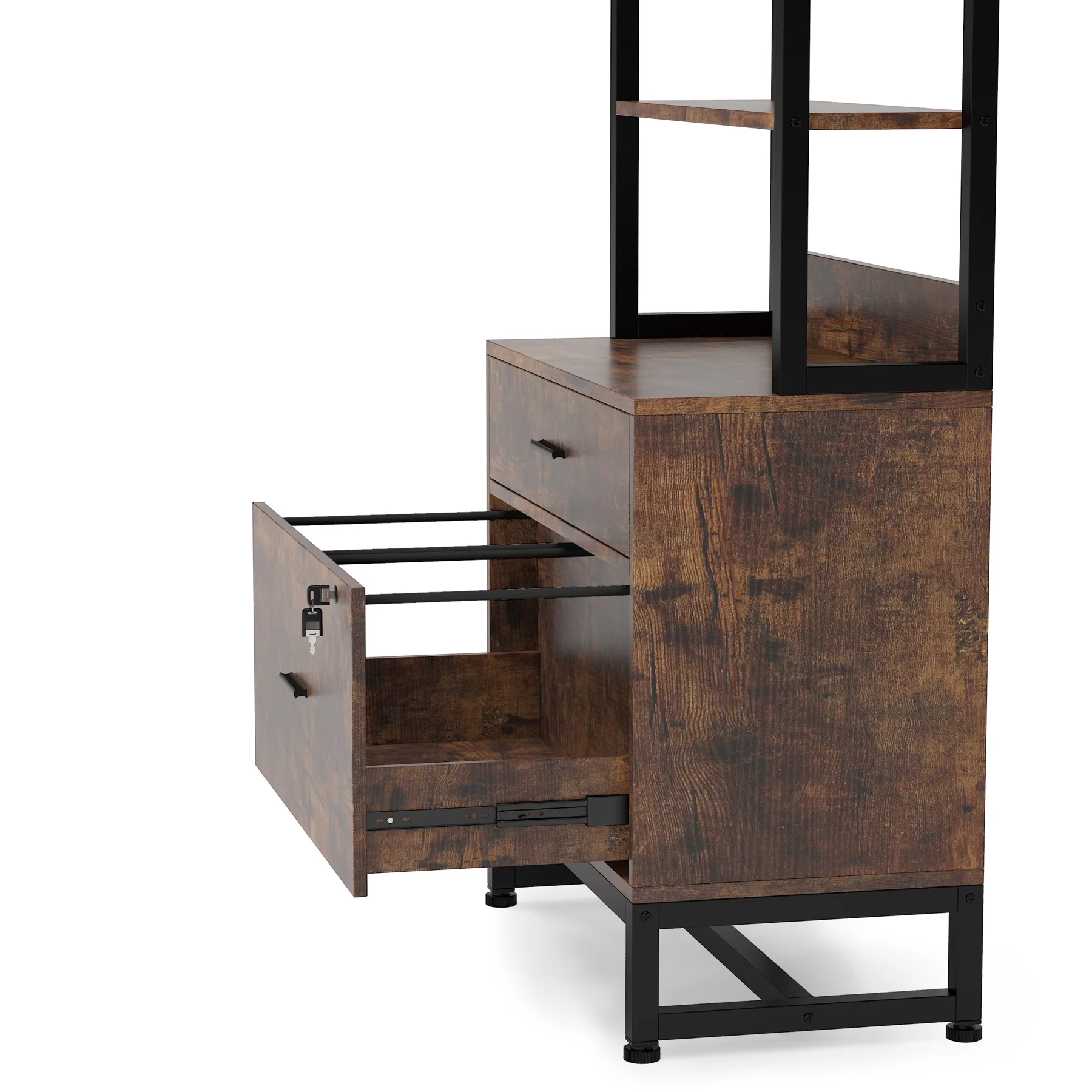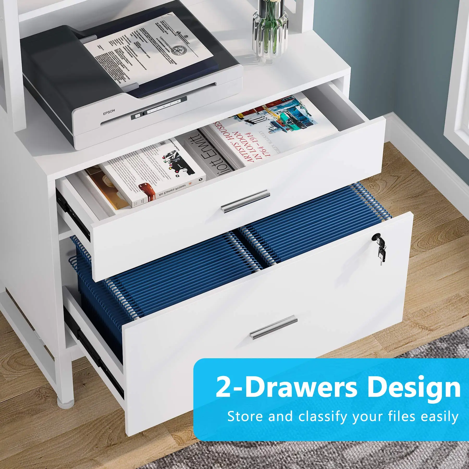 MonoWood 2 Drawer Vertical File Cabinet with Lock & Bookshelf Large Modern Filing Cabinet Printer Stand