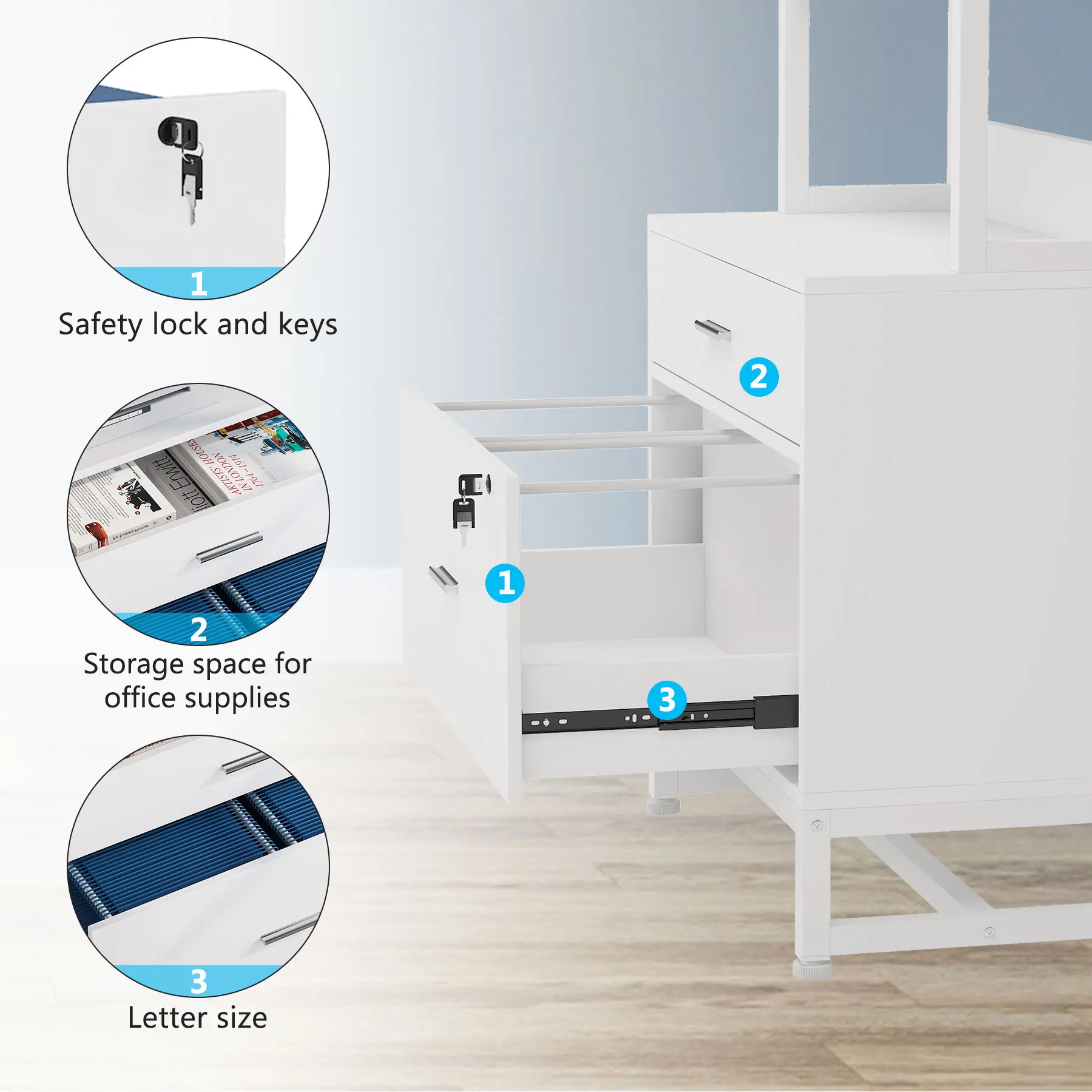 Two Drawers with Lock - The top drawer is used for spare office supplies, and the bottom one with a lock and file hanging bar is for storing important traditional letter-size(216*279mm) files.