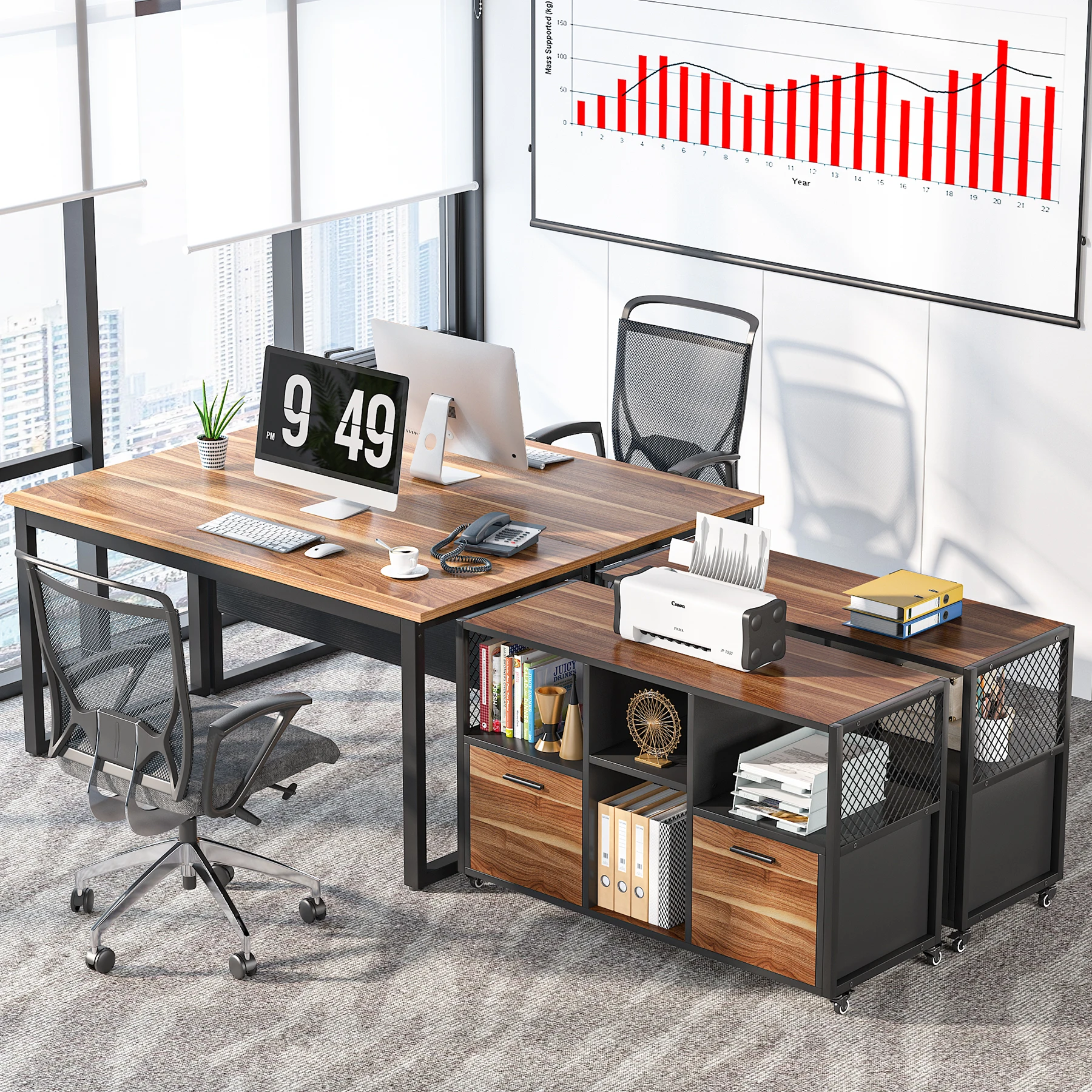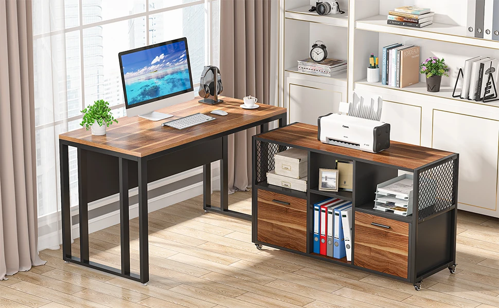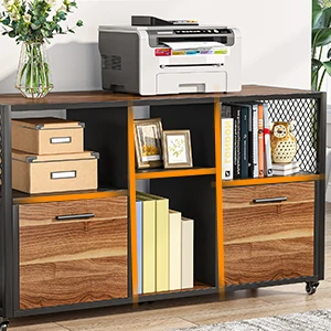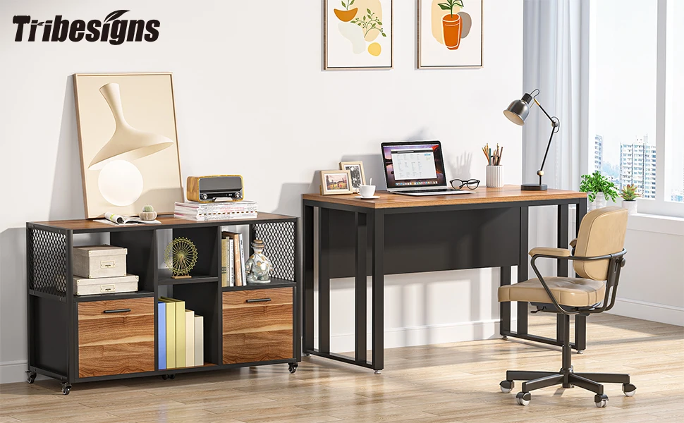 【Large Storage Space】With large surface (43.3” L x15.7” W), the lateral filing cabinet can hold printer, fax machine or other office machines. The 3 cubicles stack your books, decors for easy access and the large shelf can store lever arch files. Two drawers for hanging A4 and letter-size files, everything finds its place and keeps your workstation neat.
