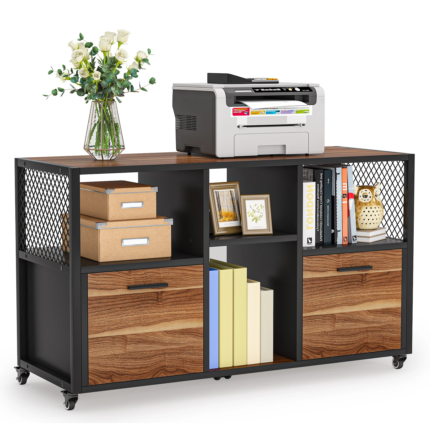MonoWood 2 Drawer Wood File Cabinets, Mobile Lateral Filing Cabinet for Letter A4 Size, Printer Stand with Shelves and Drawer