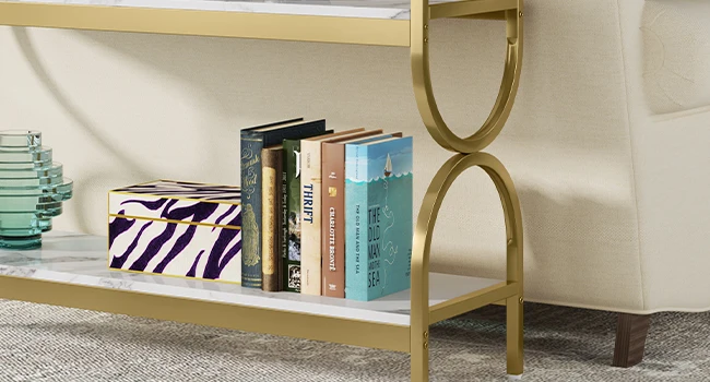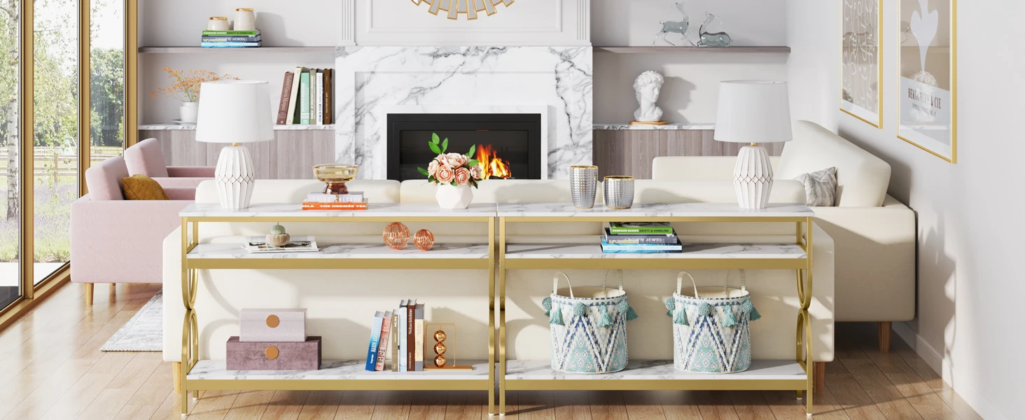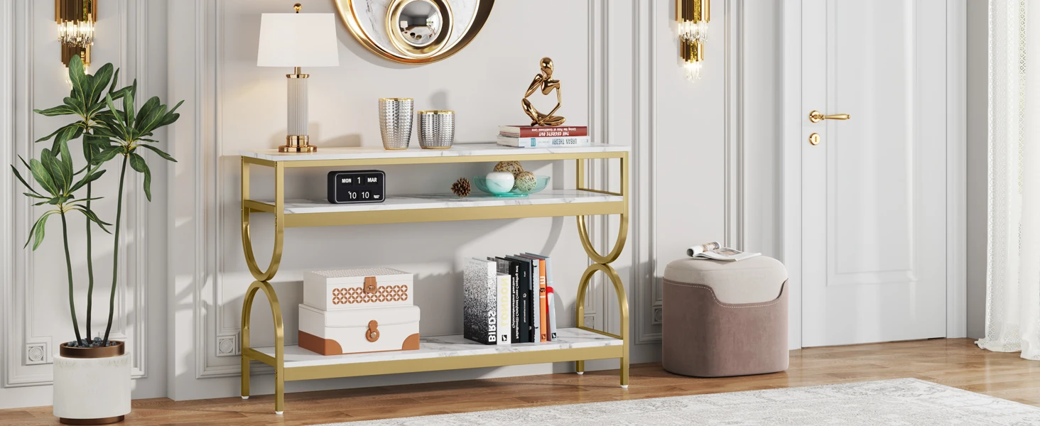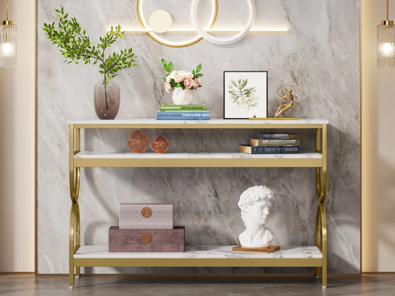 Modern yet Elegant Look: This console table exudes elegance and luxury with its white and gold color scheme and sleek design. The faux marble top adds a touch of sophistication, while the gold frame provides a striking contrast that catches the eye. Its classic yet modern look that will complement any decor style
