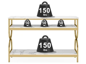 Sturdy & Durable Construction: This 55.1 L*11.8 W *35.4 H Inch Sofa & Console Table is made of sturdy brown manufactured wood and gold powder-coated iron base. The design of the legs on both sides is elegant and strengthens the table, total weight capacity up to 450lbs