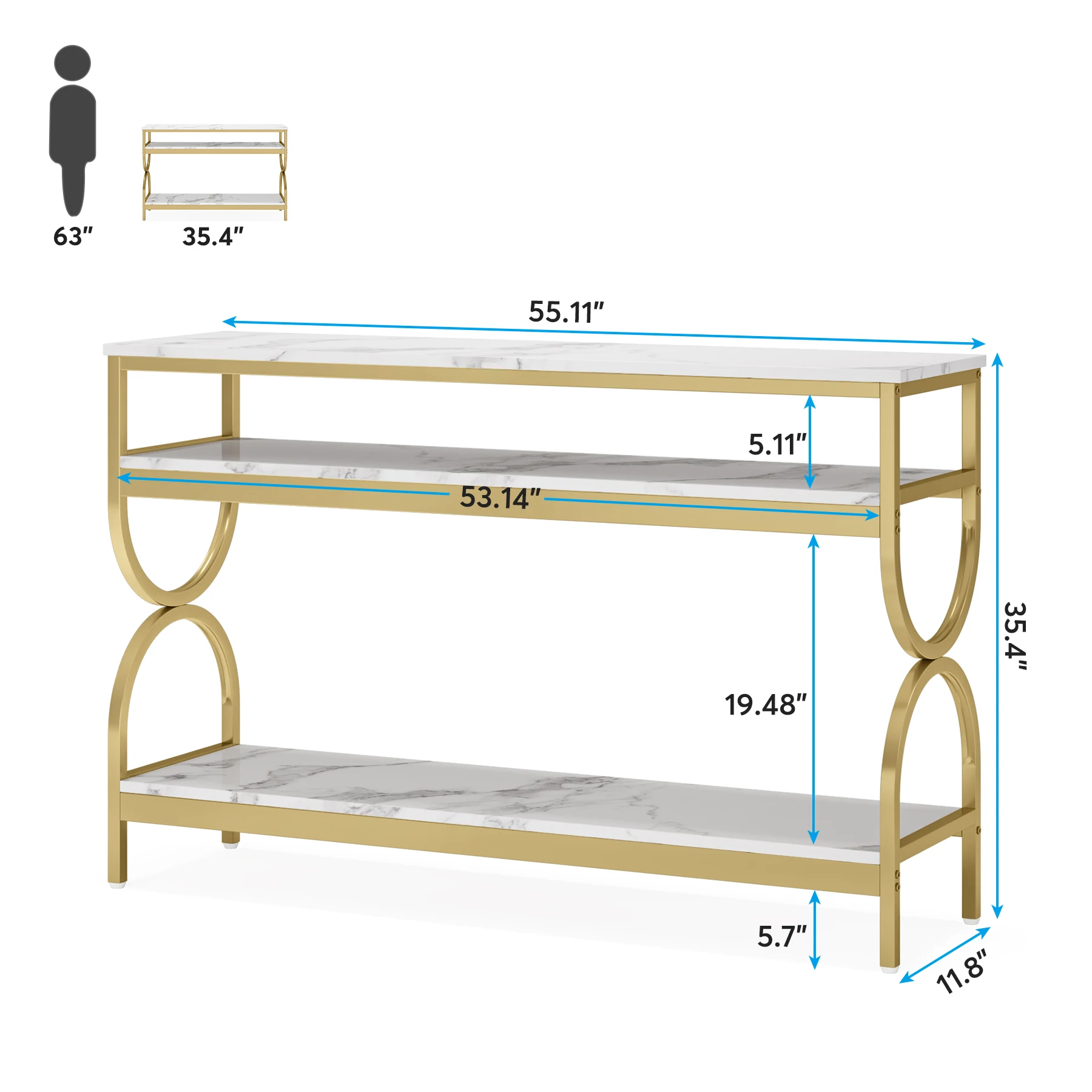 Sofa Table with 3-Tier Storage: The tabletop in 55 inch length is great for keeping lamps, framed photos, and more precious decor. The lower shelves provide additional storage for staging a row of wire baskets and other daily items