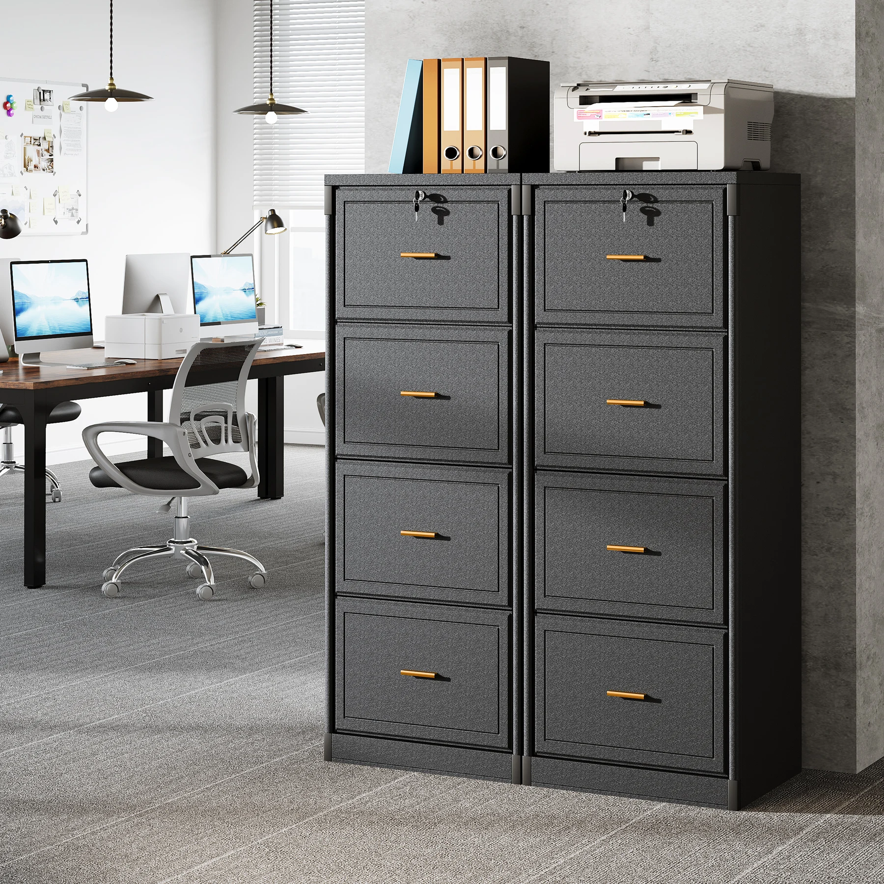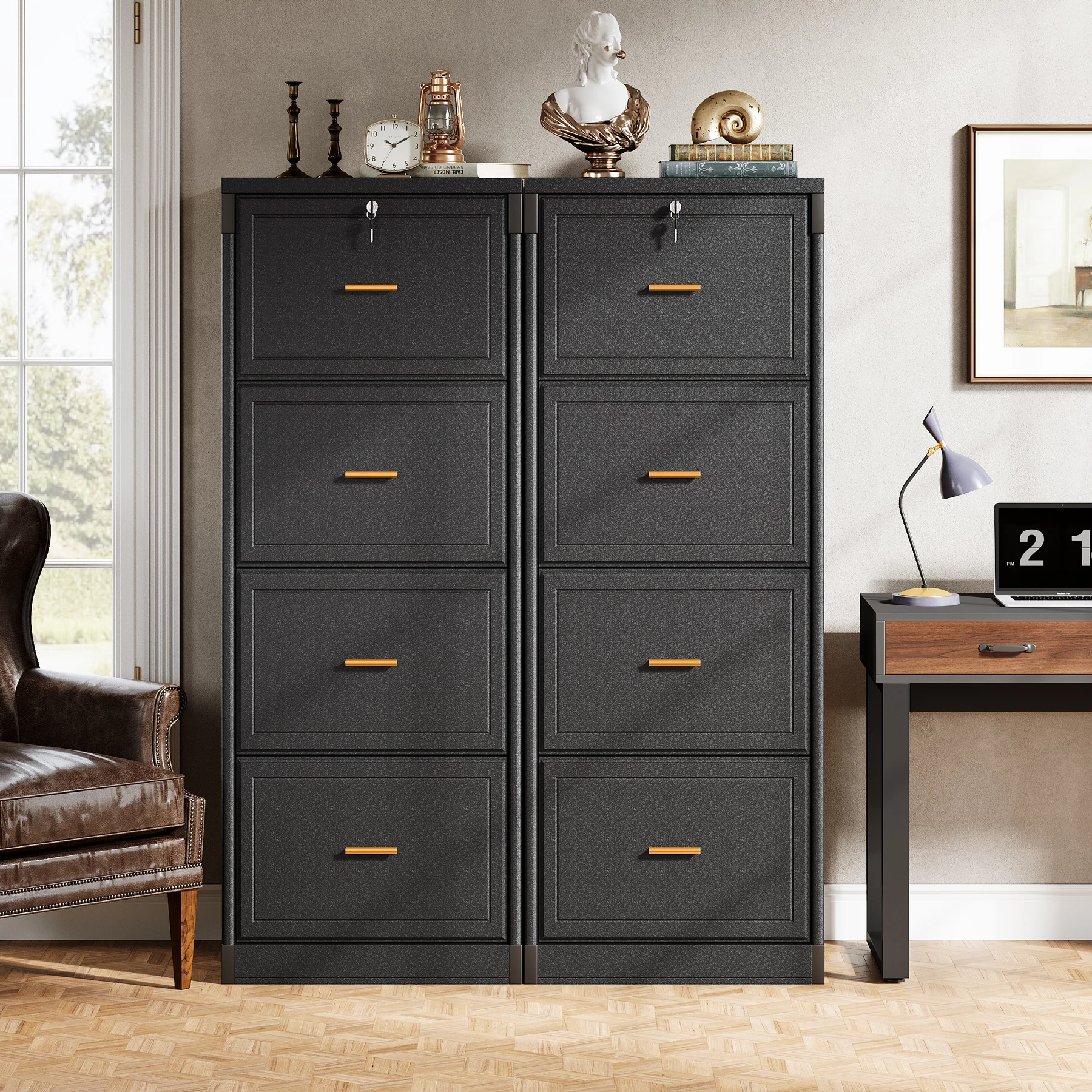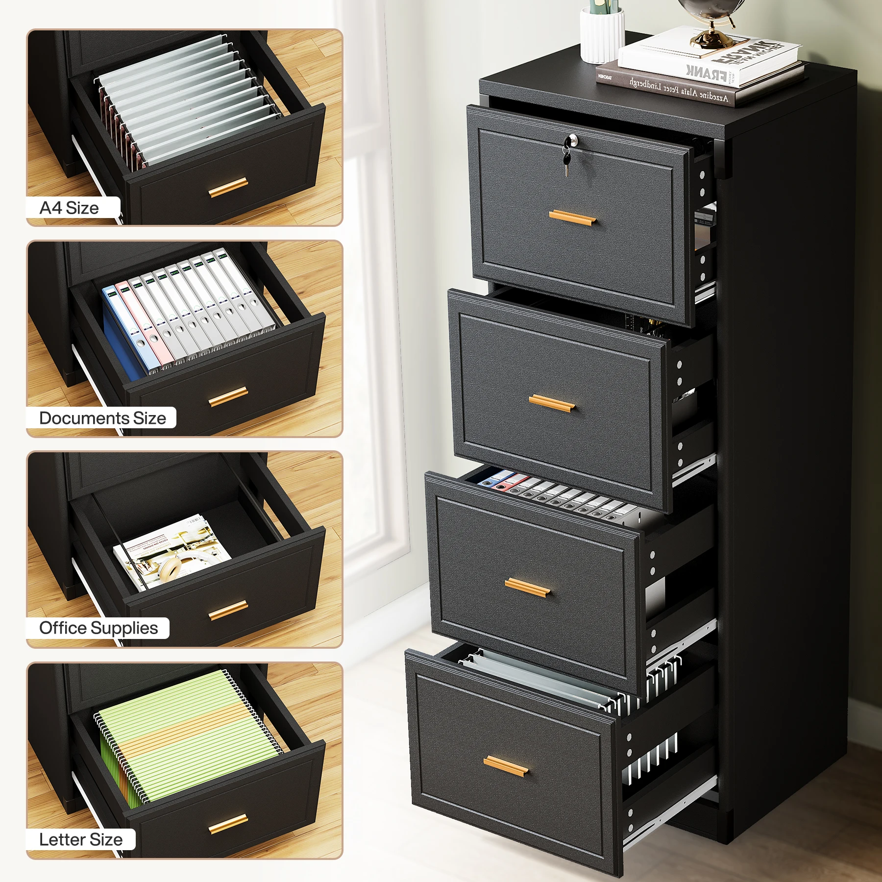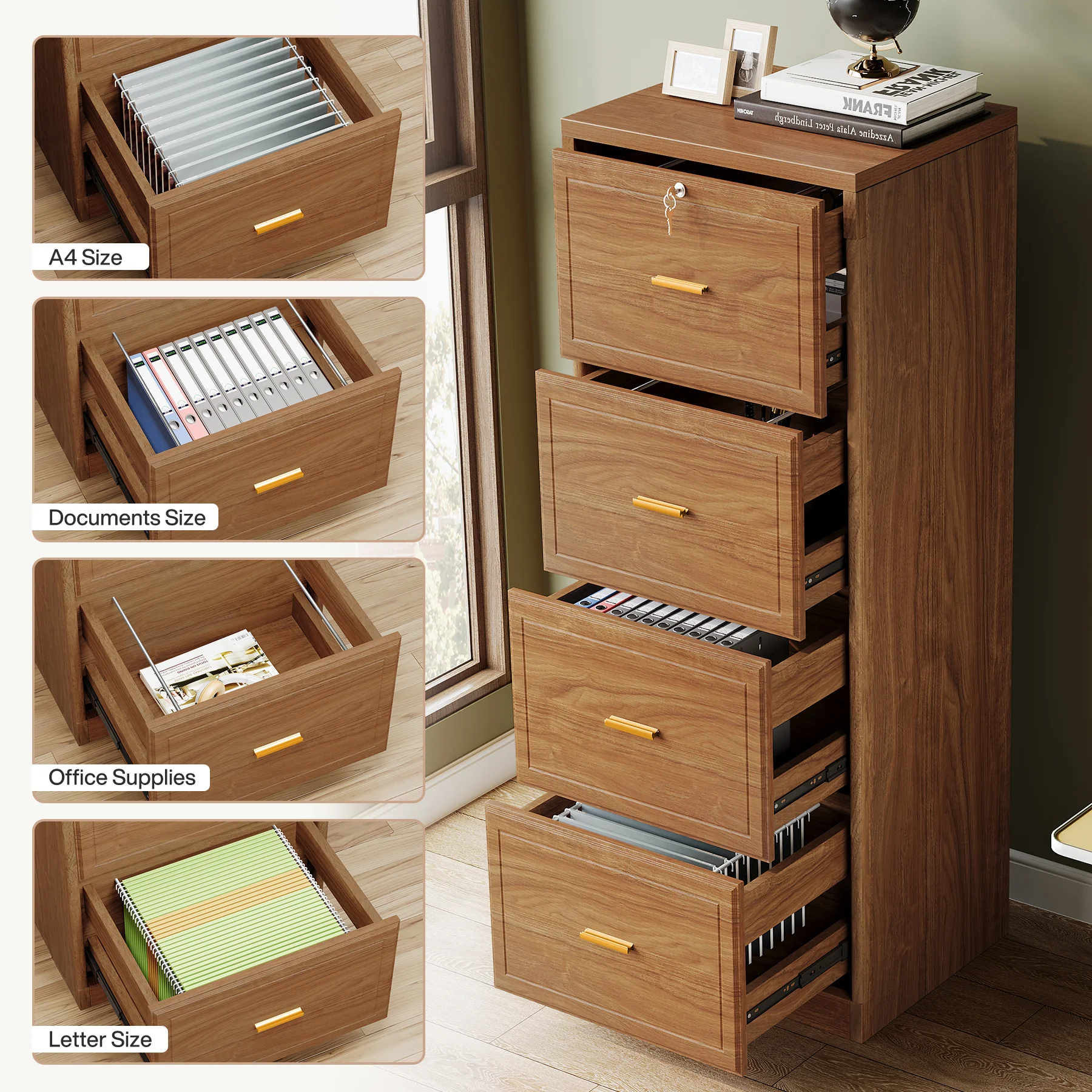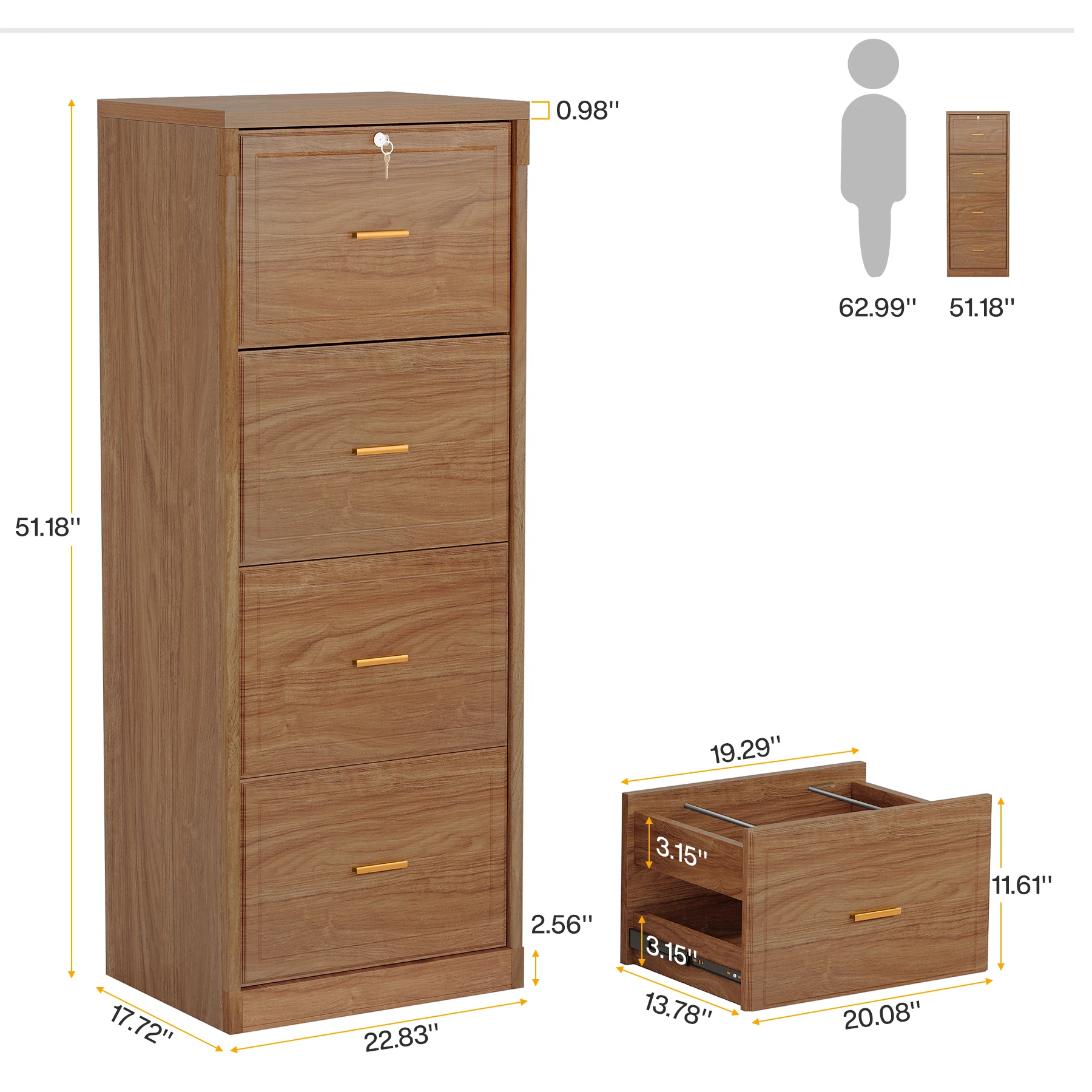 MonoWood 4-Drawer File Cabinet with Lock, Locked File Cabinet with Key, Tall Wooden Filing Cabinets for Home Office