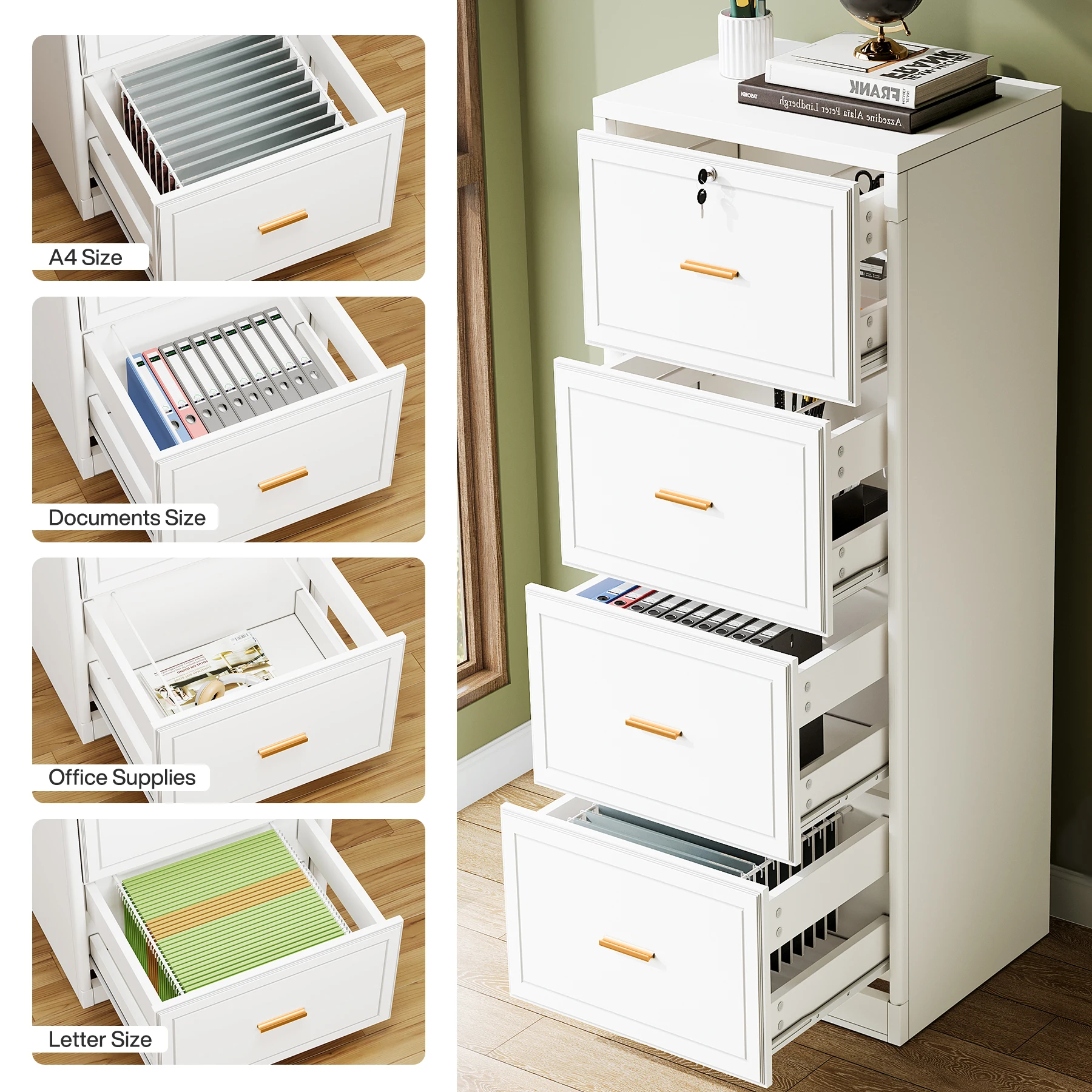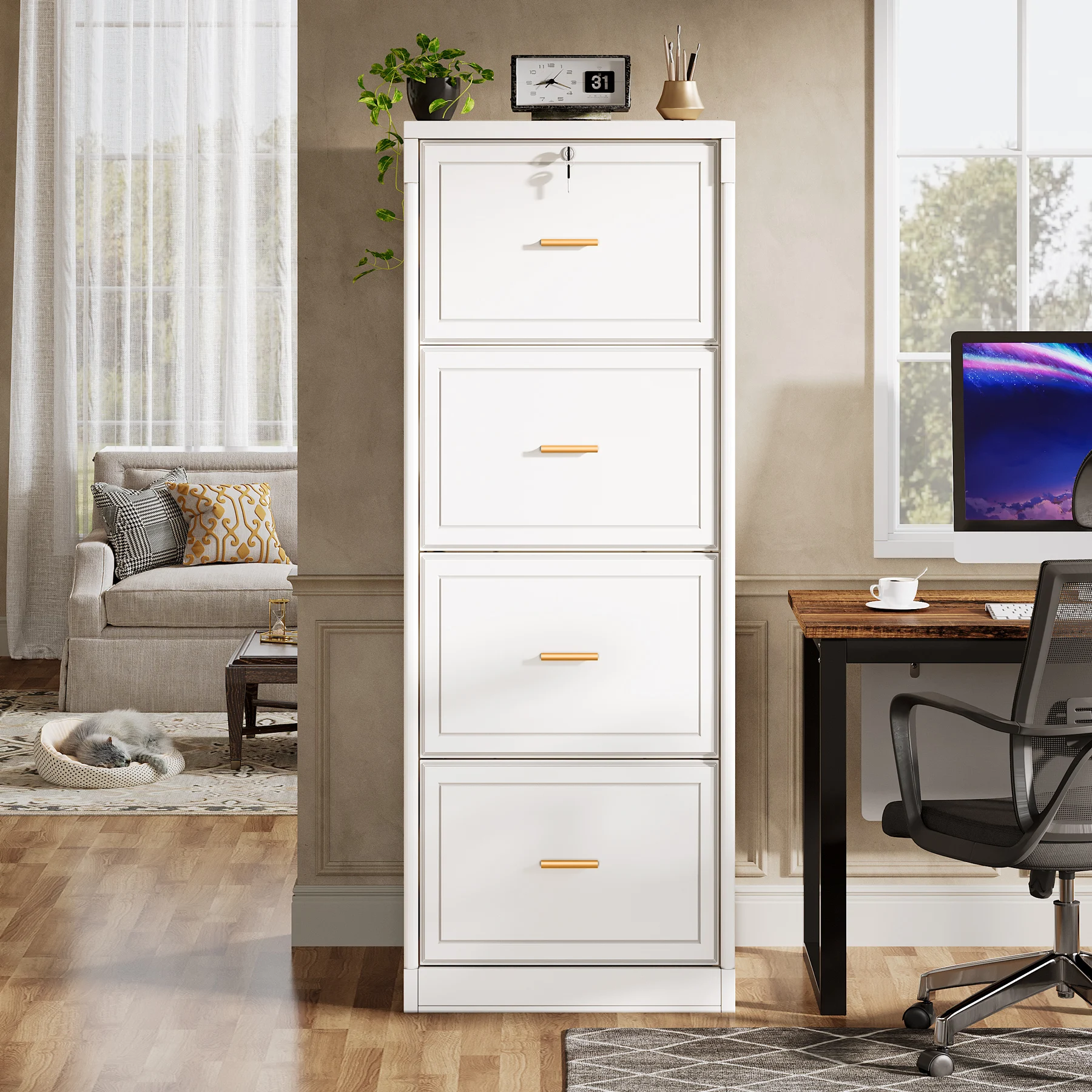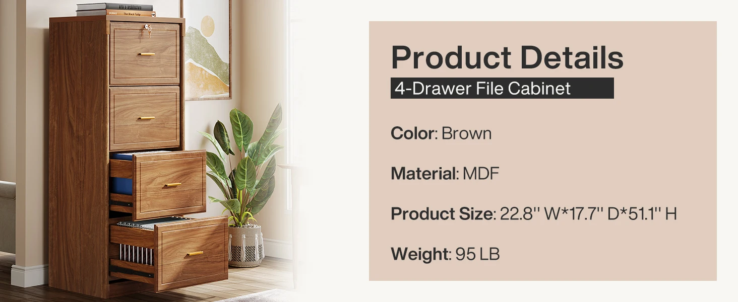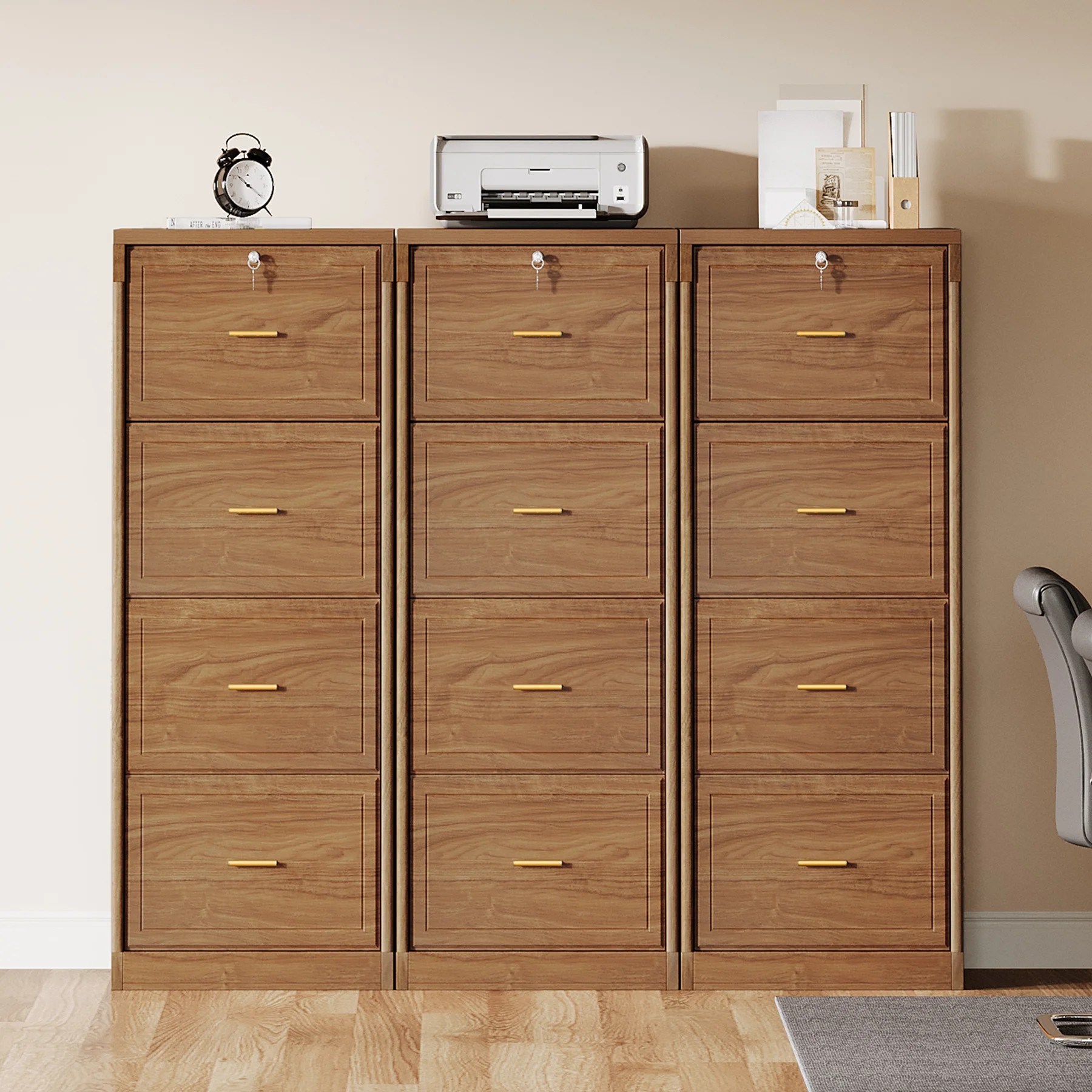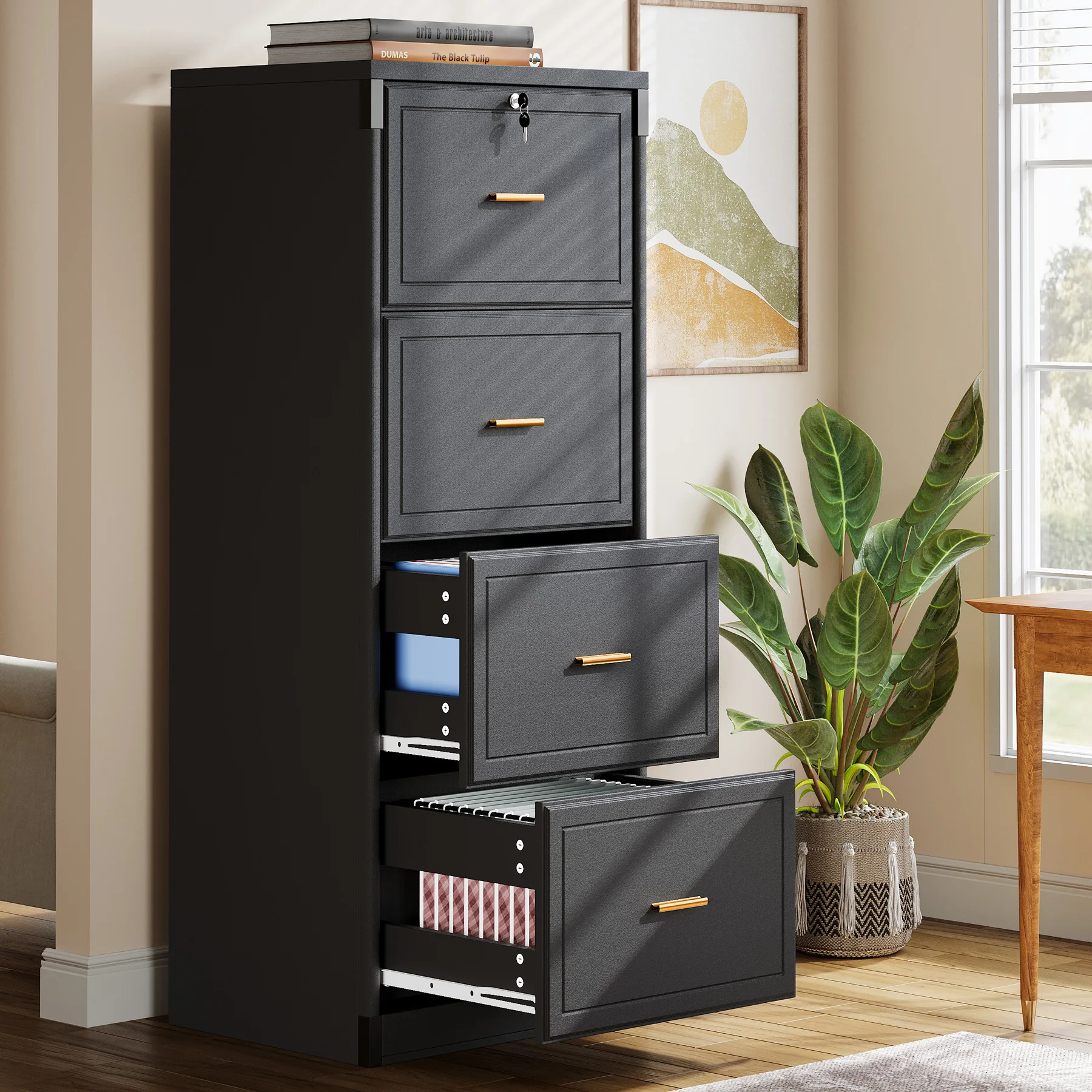 MonoWood 4-Drawer File Cabinet with Lock, Locked File Cabinet with Key, Tall Wooden Filing Cabinets for Home Office
