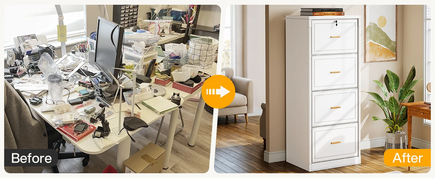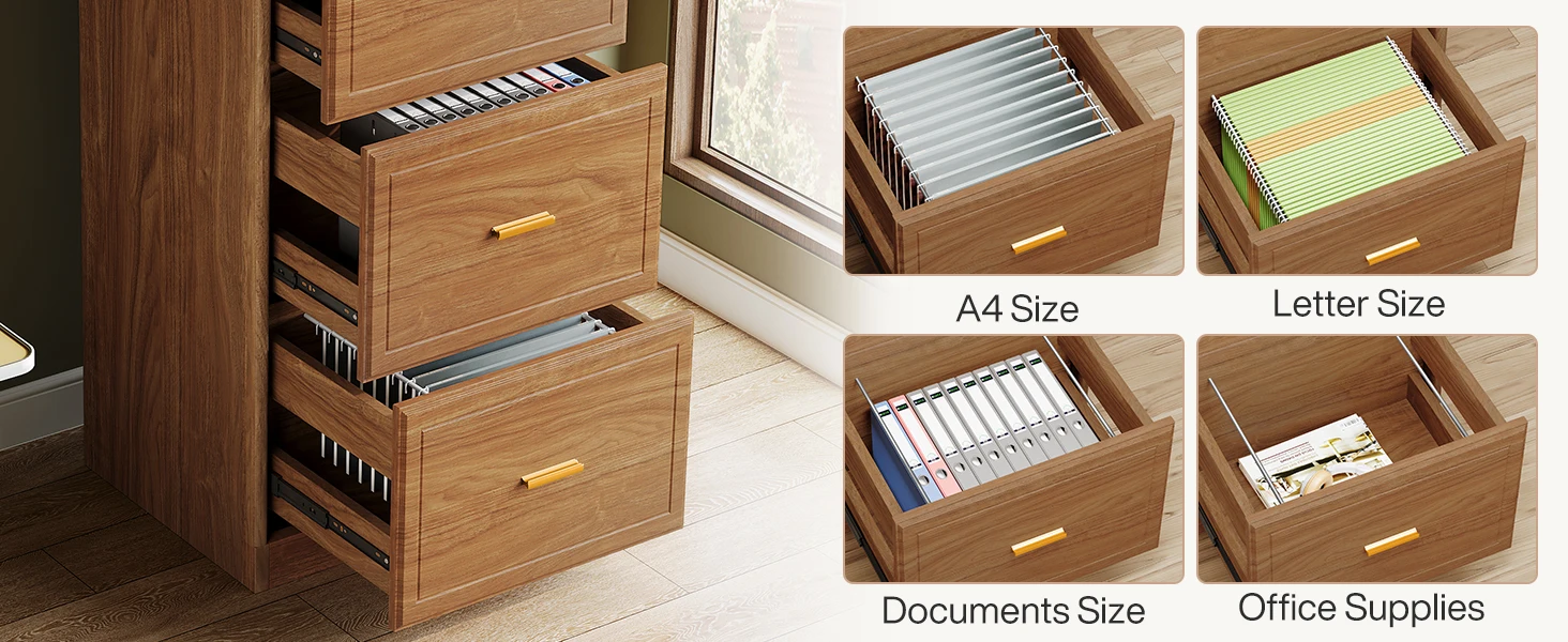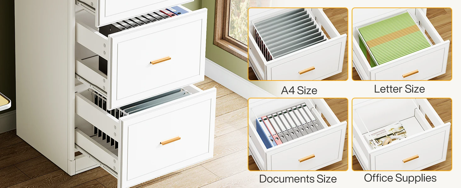 𝐄𝐚𝐬𝐲 𝐎𝐩𝐞𝐧𝐢𝐧𝐠 𝐚𝐧𝐝 𝐂𝐥𝐨𝐬𝐢𝐧𝐠: The metal ball bearing and full extension drawer slides of the filing cabinet will not get stuck or derail, and can easily open and close the drawer. Each drawer is equipped with a metal handle, allowing it to open easily