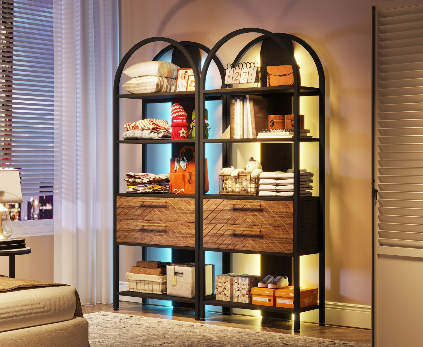 [VERSATILE & STYLISH]: Our black bookshelf is not just for books, its multi-functional design means it can be used as a display shelf, a room divider, or a storage unit. The unique arch design and open etagere silhouette make it a stunning piece of furniture that will enhance any room.