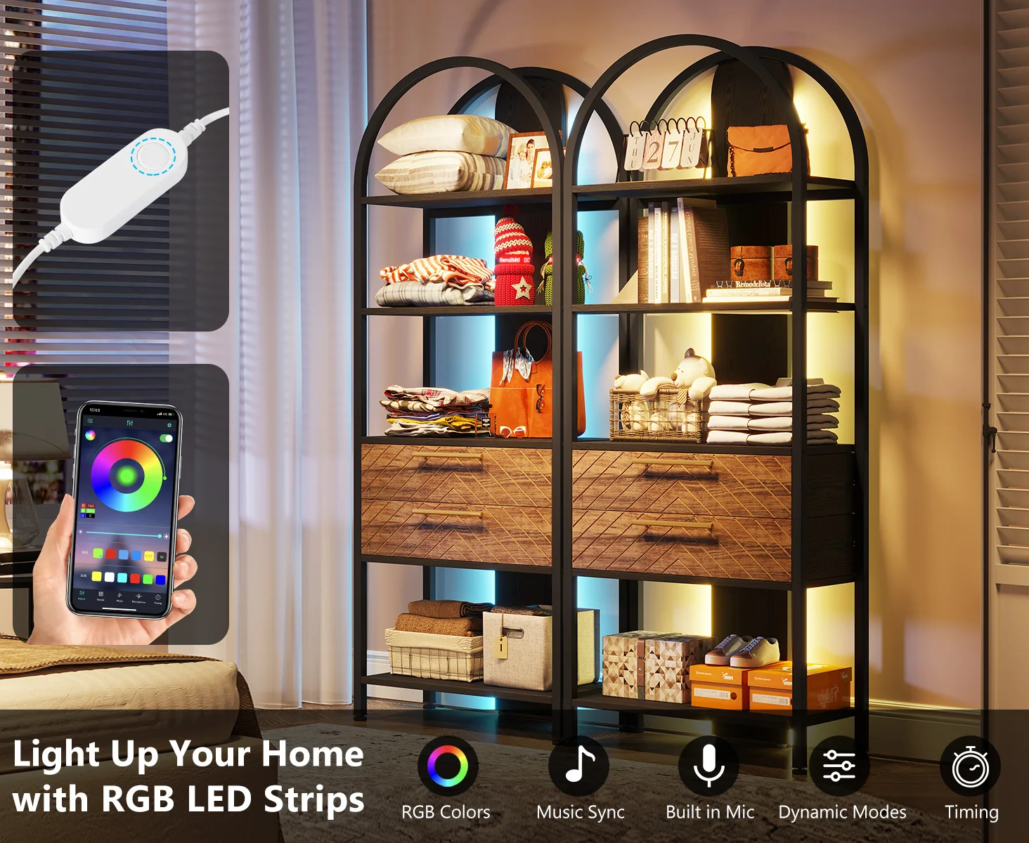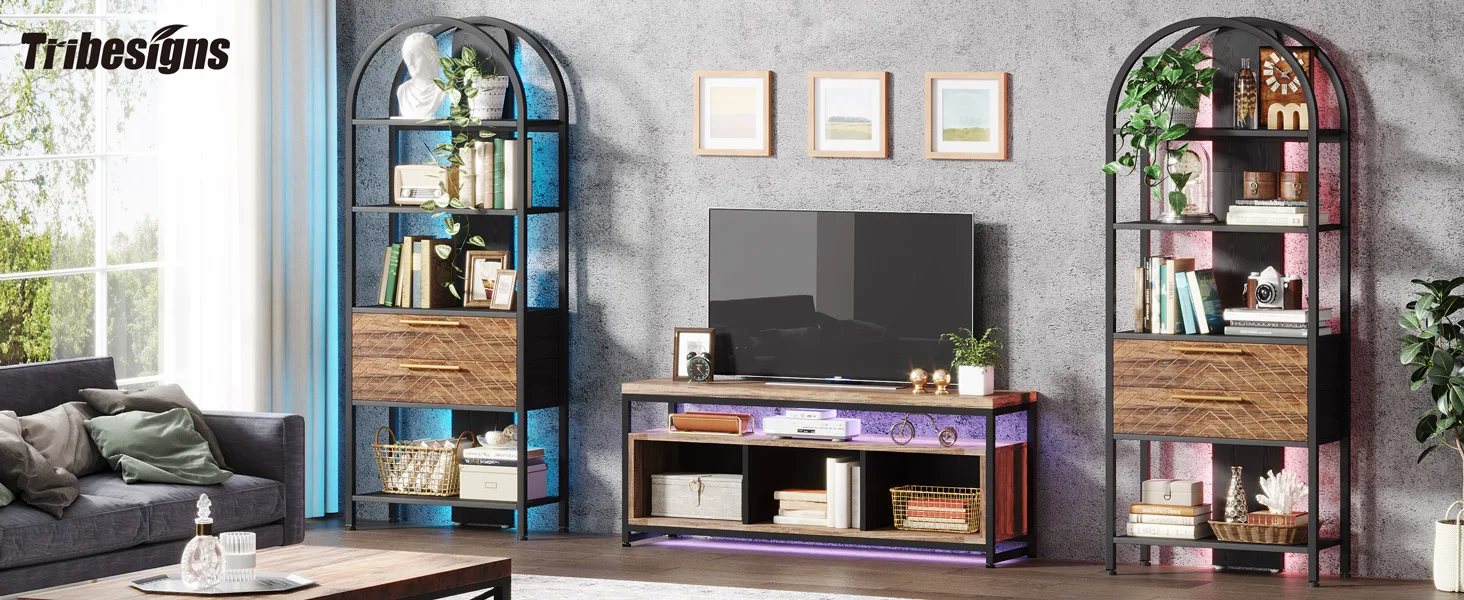 [TRANSFORM YOUR SPACE]: Create a warm and inviting atmosphere with Tribesigns bookshelf with RGB LED light, you can control it by smartphone APP from the comfort of the couch to set the perfect color scheme and brightness level for reading, relaxing, or entertaining guests.