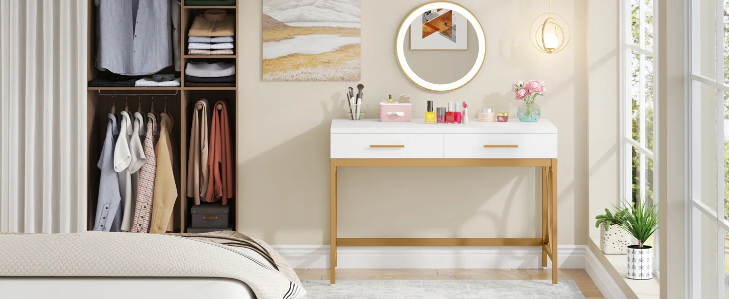 【Indomitable Strength and Endurance】: Constructed with premium MDF and reinforced with heavy-duty steel frames, this white vanity desk boasts outstanding durability. Its robust structure can easily bear up to an impressive 160 pounds. The X-shaped steel frames not only enhance the desk's modern aesthetics but also provide unparalleled support and steadfastness.