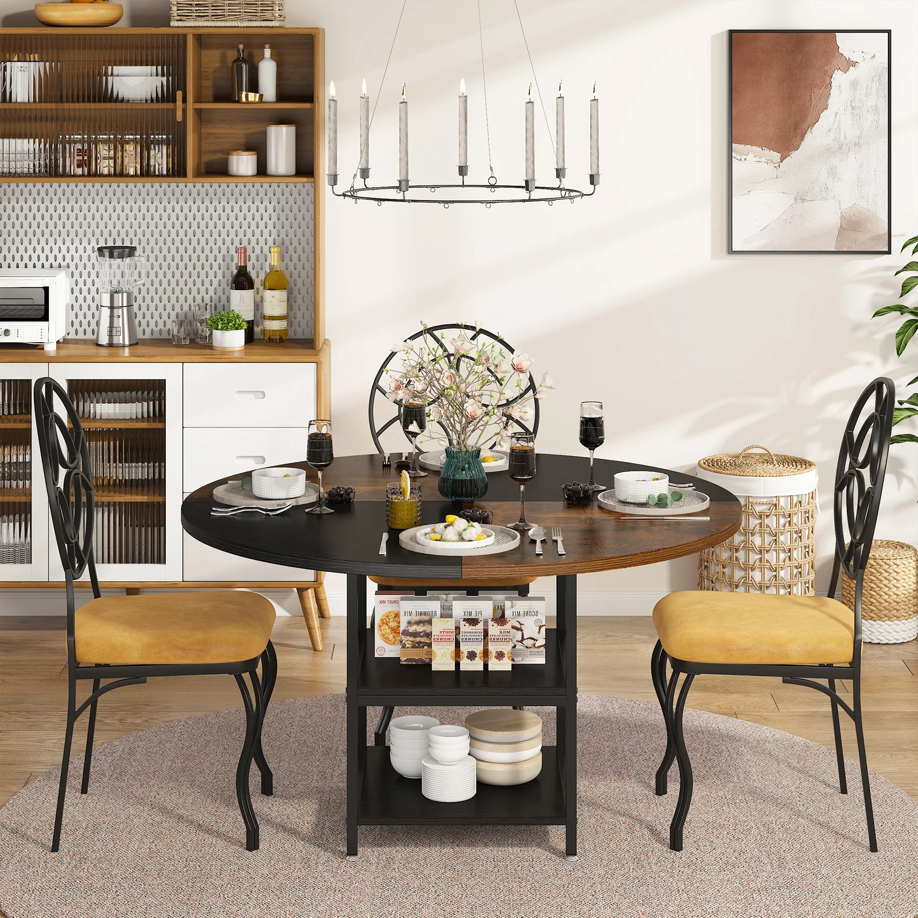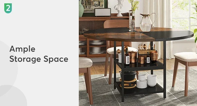 Storage Shelf Included: A standout feature of the Tribesigns Round Dining Table is the inbuilt storage shelf nestled between the metal legs. The additional shelf provides ample space for storing dining accessories, dinnerware, placements, and any other items you'd like to keep within arm’s reach. It maximizes your dining area without sacrificing floor space, offering stylish, practical storage solutions.