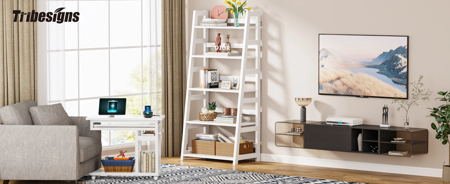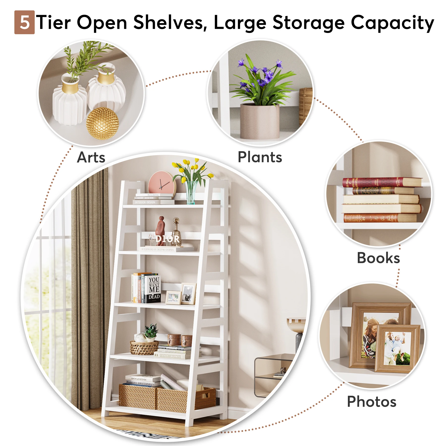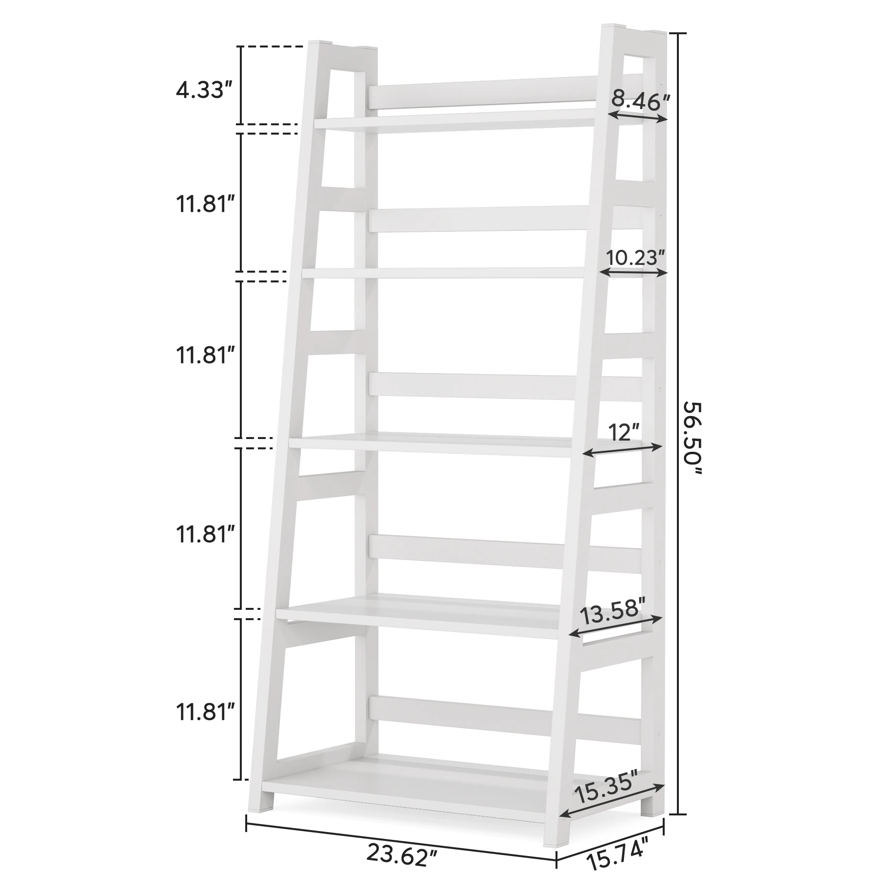 ✔ 【5-Tier Large Storage Capacity】 : Overall size: 23.6”L x 15.7”W x 56.5”H. The ladder storage shelf provides ample storage space for your books, knickknack, family photos, ornaments and more. Bottom shelf is 11inch in high which allows you to put baskets on it