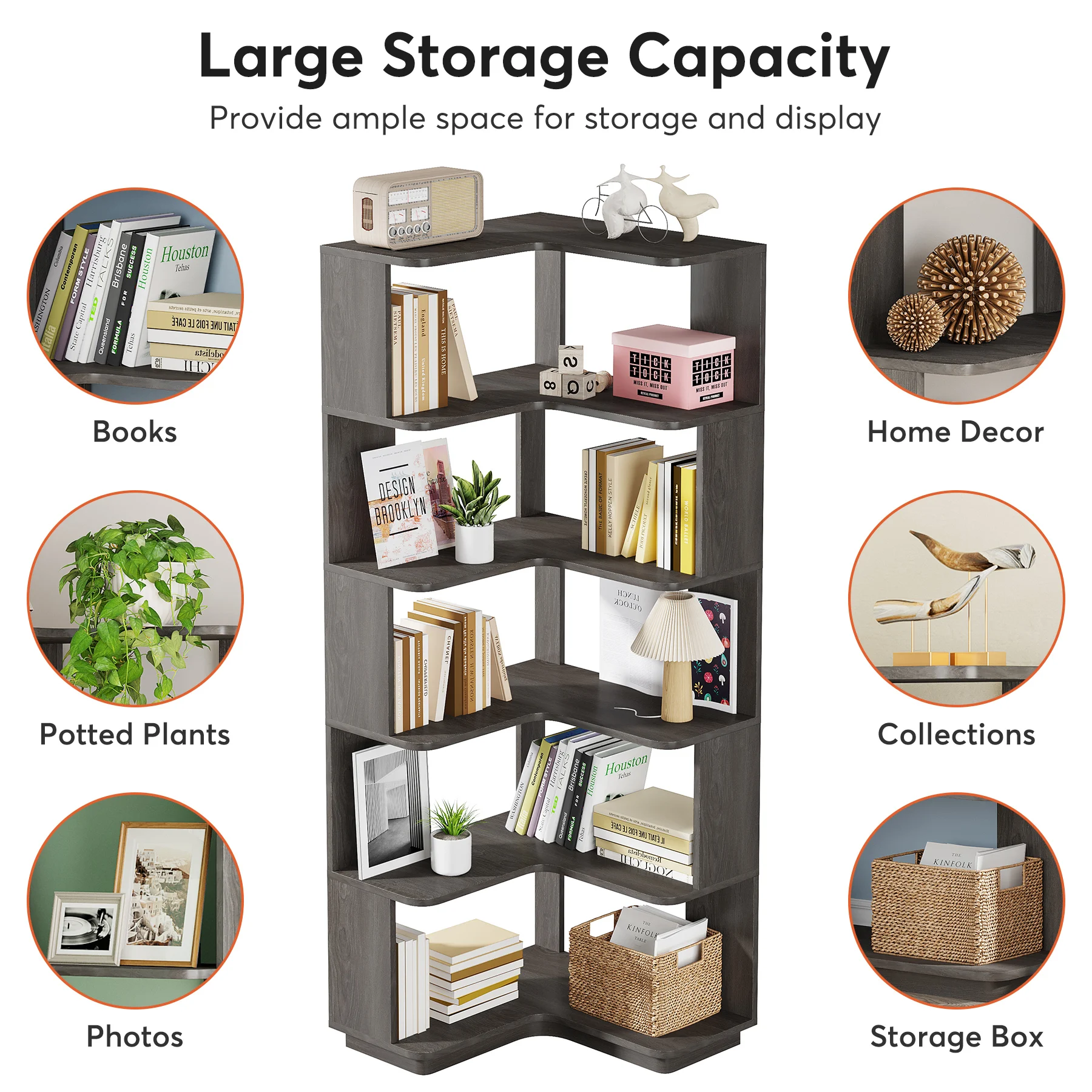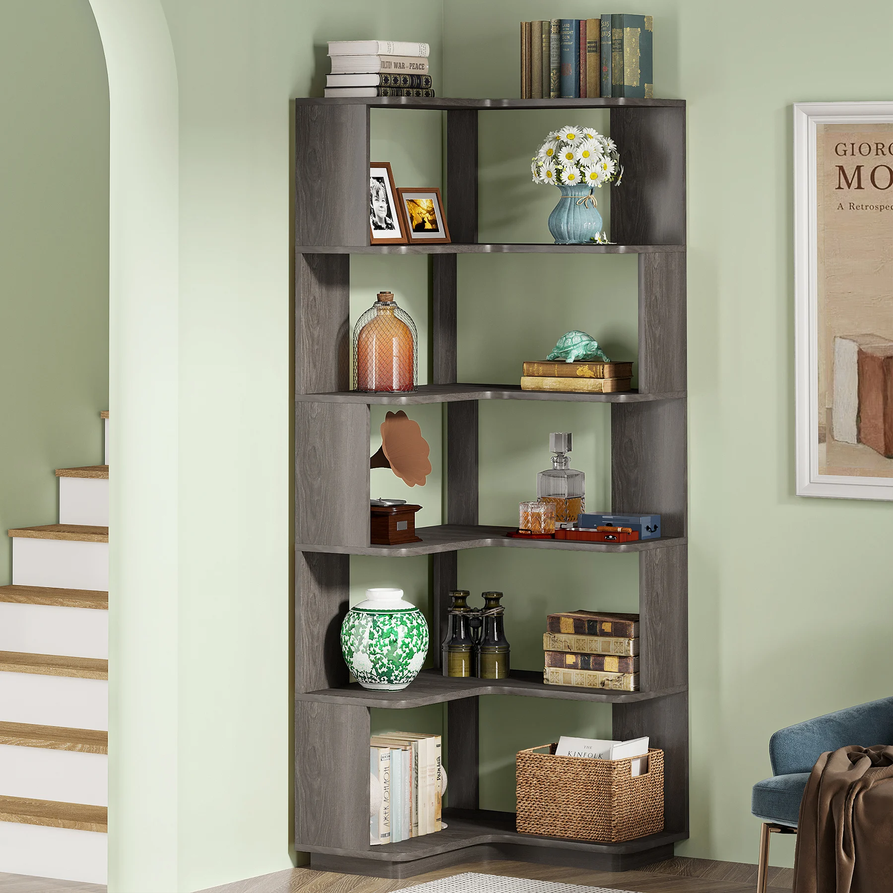 MonoWood 6-Shelf Corner Bookshelf, 6-Tier Tall Bookcase with Baffles, Multifunctional Book Shelves Storage Display Stand