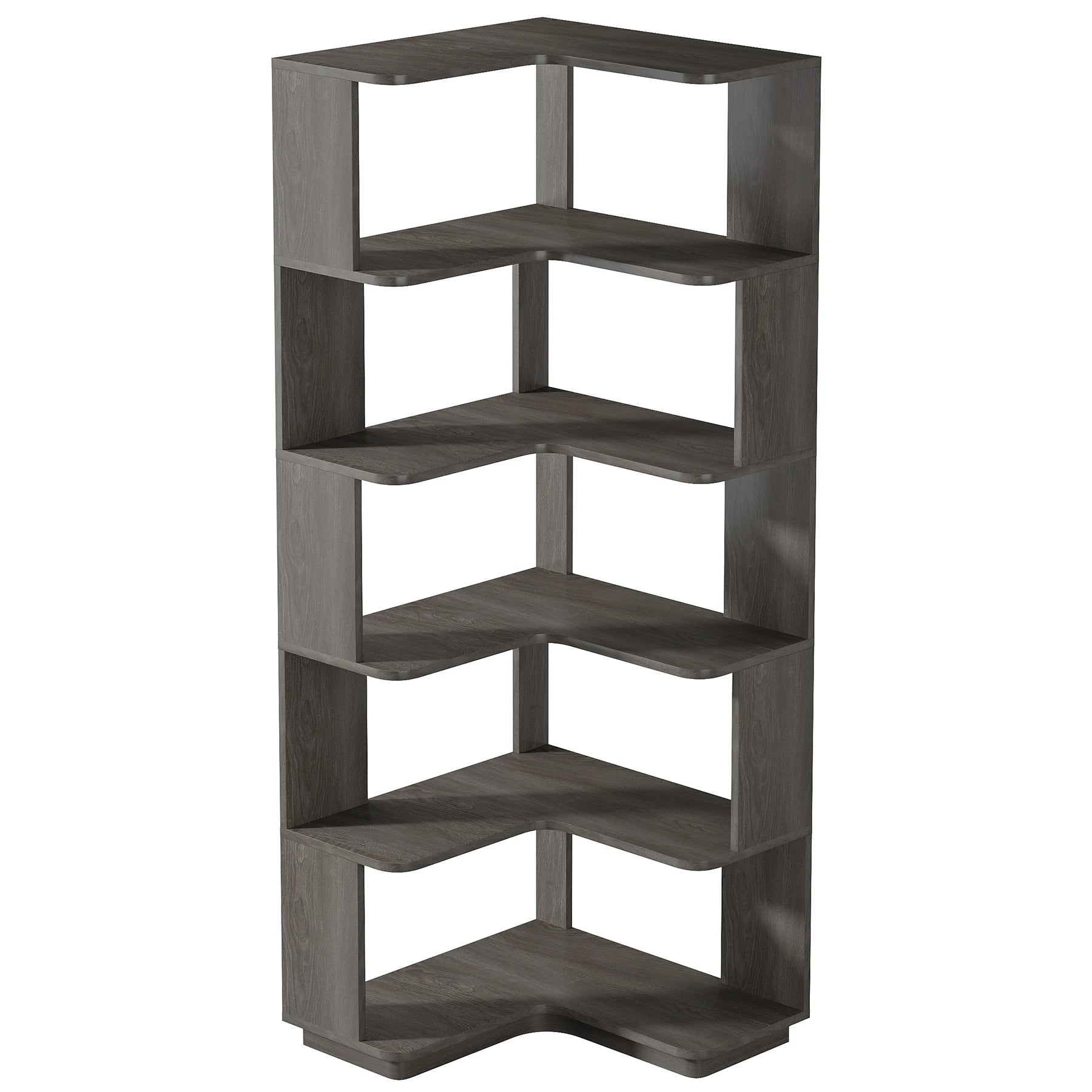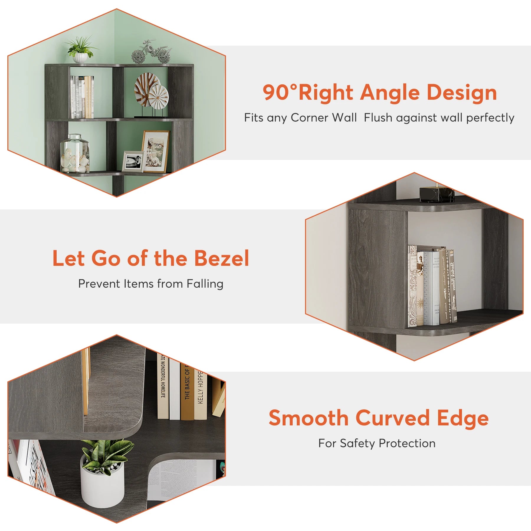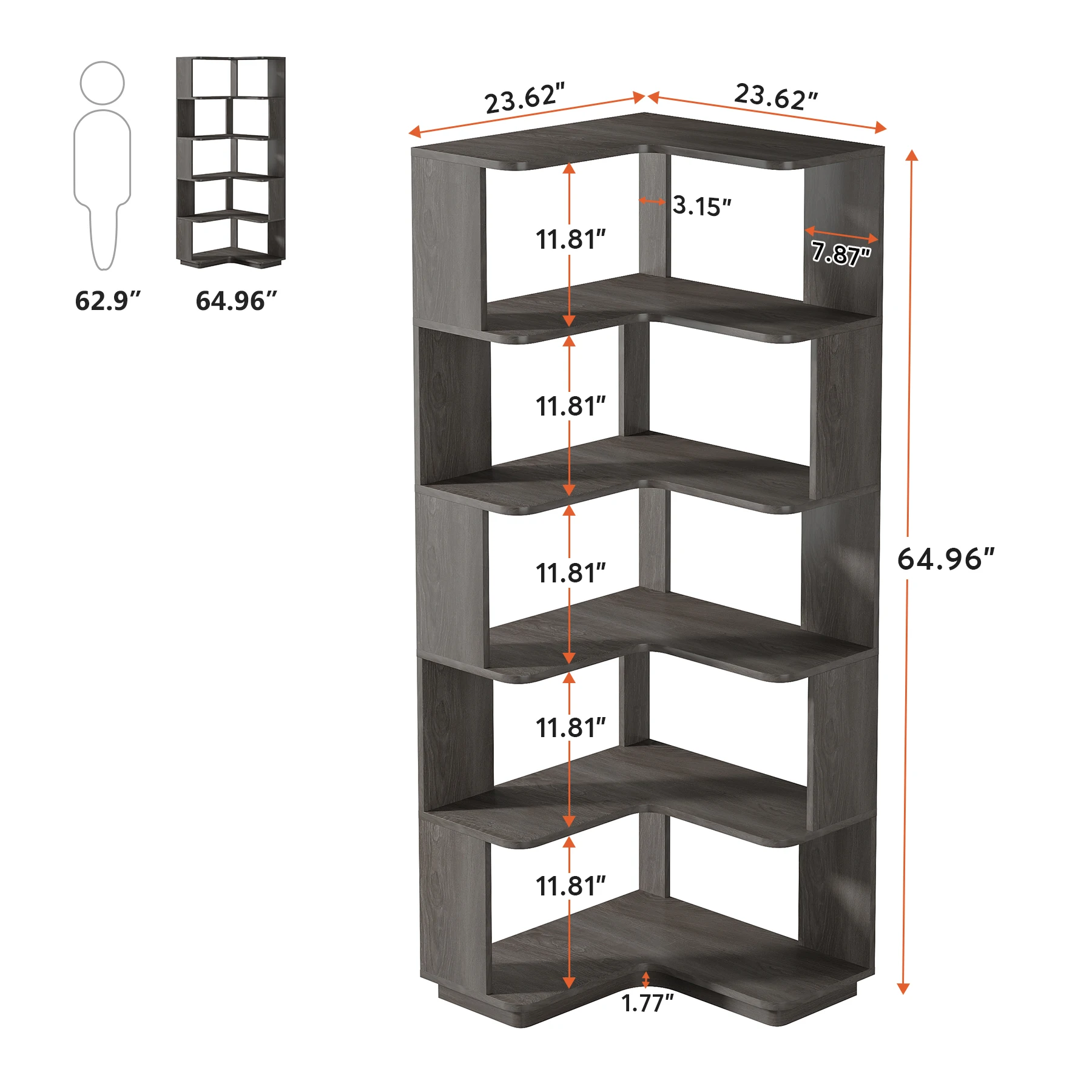 unique appearance. Overall size: 23.62"L x 23.62"W x 64.9"H.Modern & Multi-functional Bookcase: The 90° right-angle design and