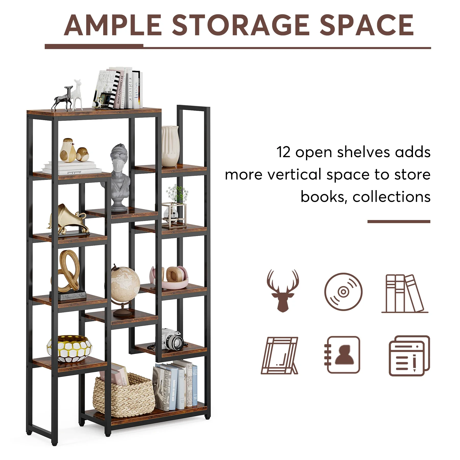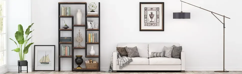 【More Storage & Display Space】: 6-Tier with 12 open shelves design can maximize the vertical storage space that helps bring your storage and decoration to a new level, there are plenty of space for storing or displaying your favorite books, knickknacks, family photos, ornaments, collections