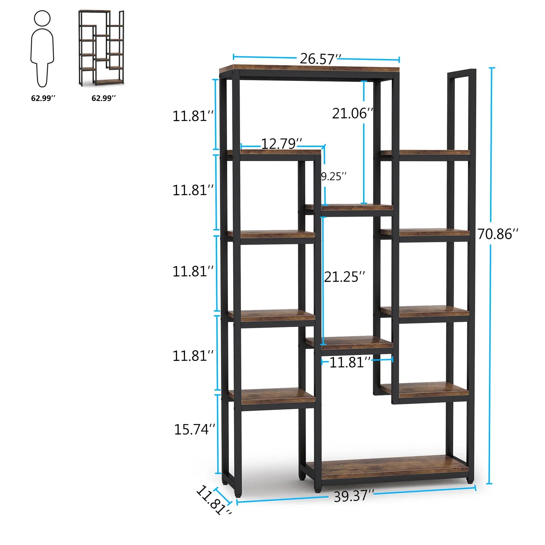 MonoWood 6-Tier Bookshelf 70.9 inch Tall Bookcase, Vintage Industrial 12-Shelf Display Shelves Book Storage Organizer