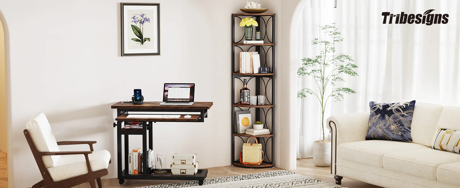 Tribesigns 6-Shelf Tall Corner Shelves, Large Storage Capacity Yet Space Saving-- The Ideal Corner Stand Shelf For Living Room, Home Office, Kitchen