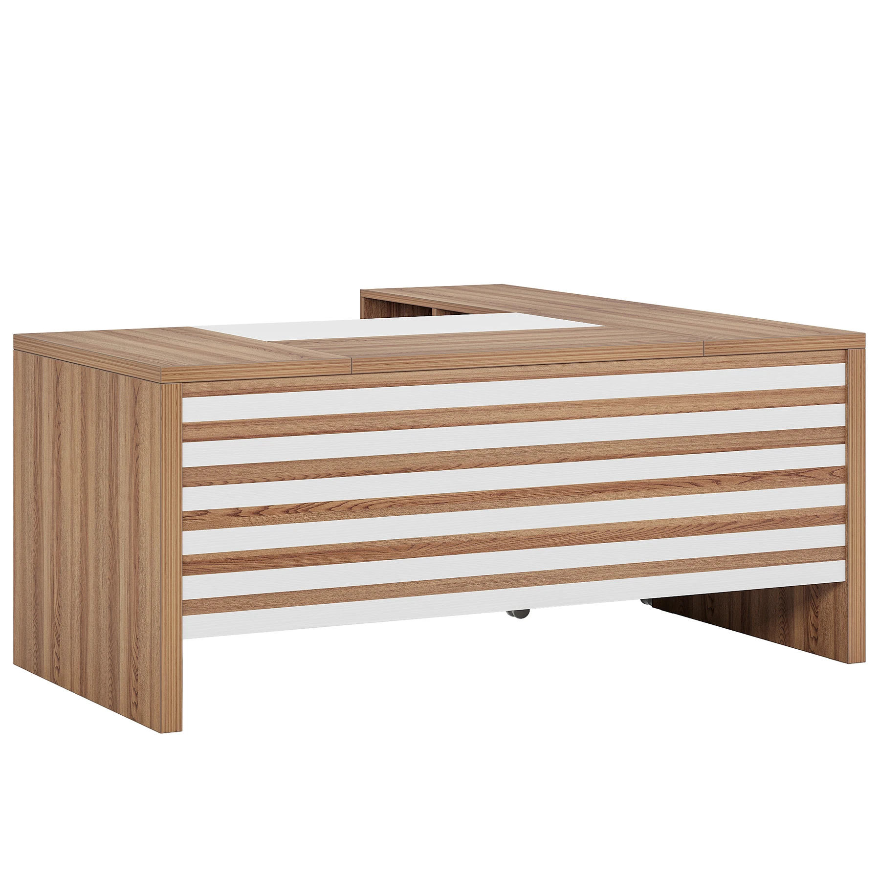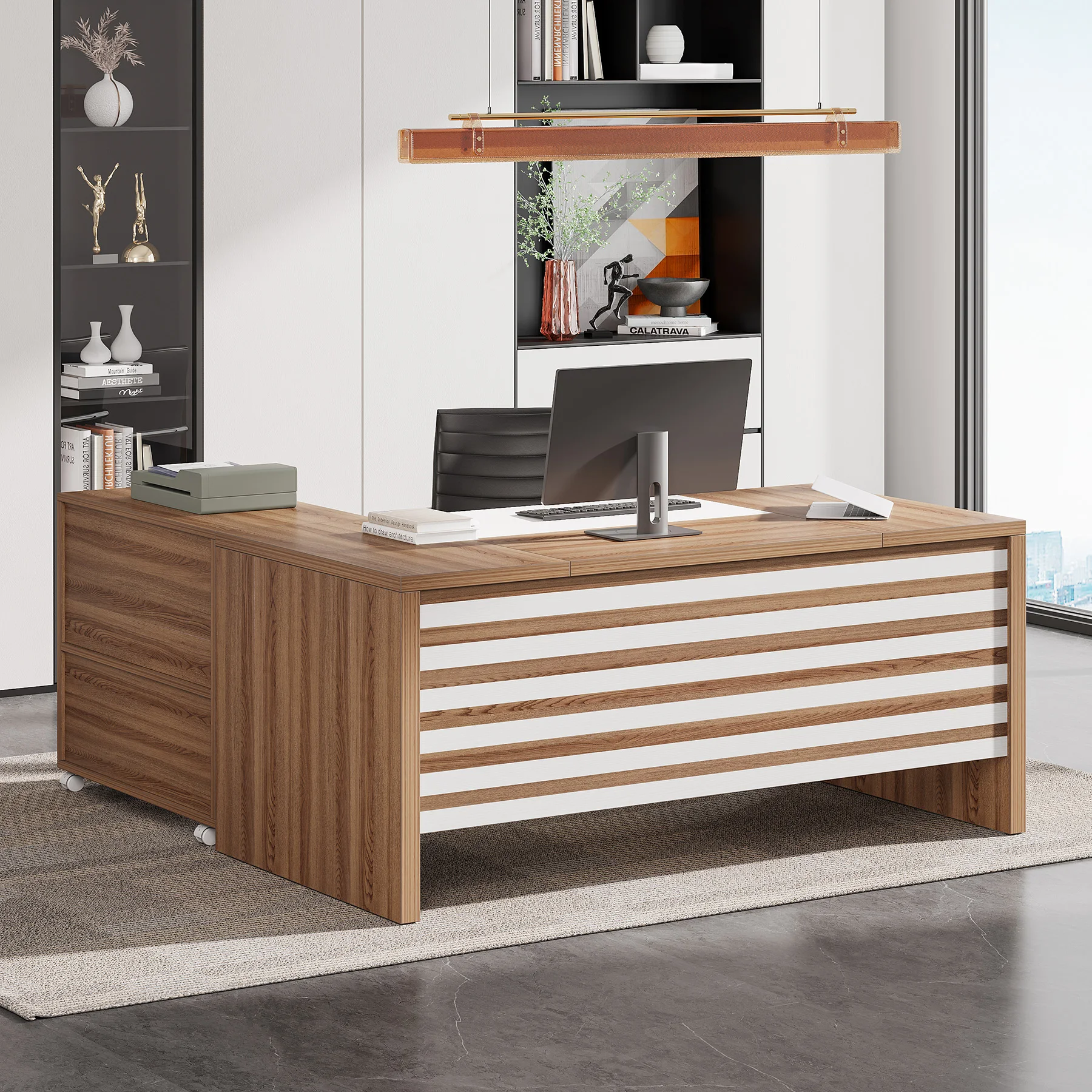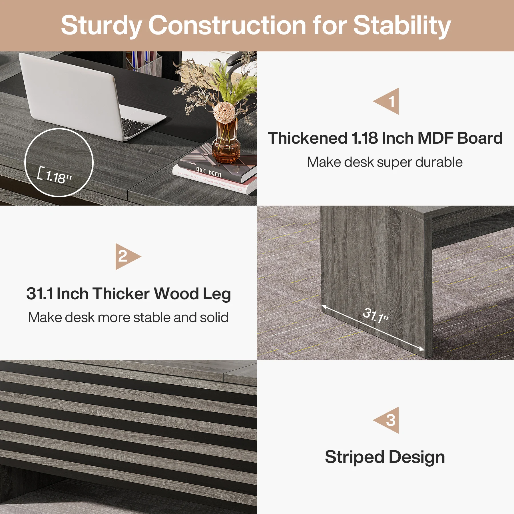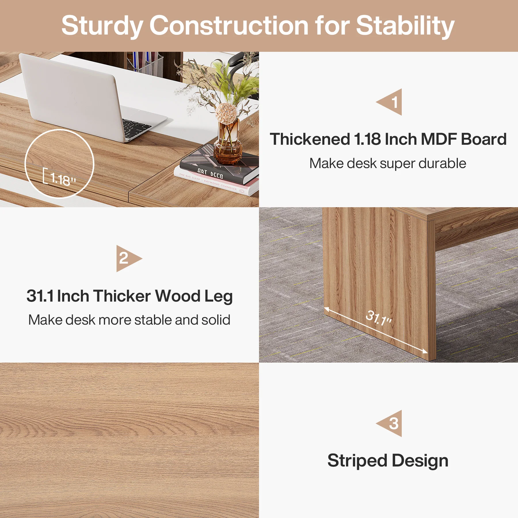 【Crafted by Experts】: This expansive computer desk is more than just functional - it's a statement piece. Devised by acclaimed designers, the Wood Grain and Off-White color scheme on the desktop creates an appealing contrast. The addition of a striped design on the baffle further enhances its aesthetic appeal, while the drawers of the mobile filing cabinet showcase a distinct color contrast.