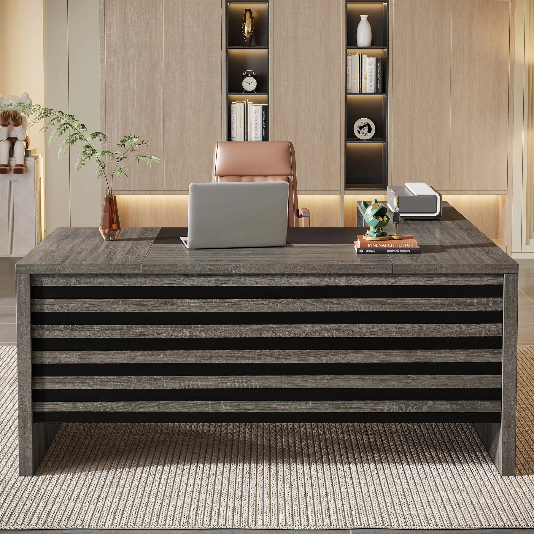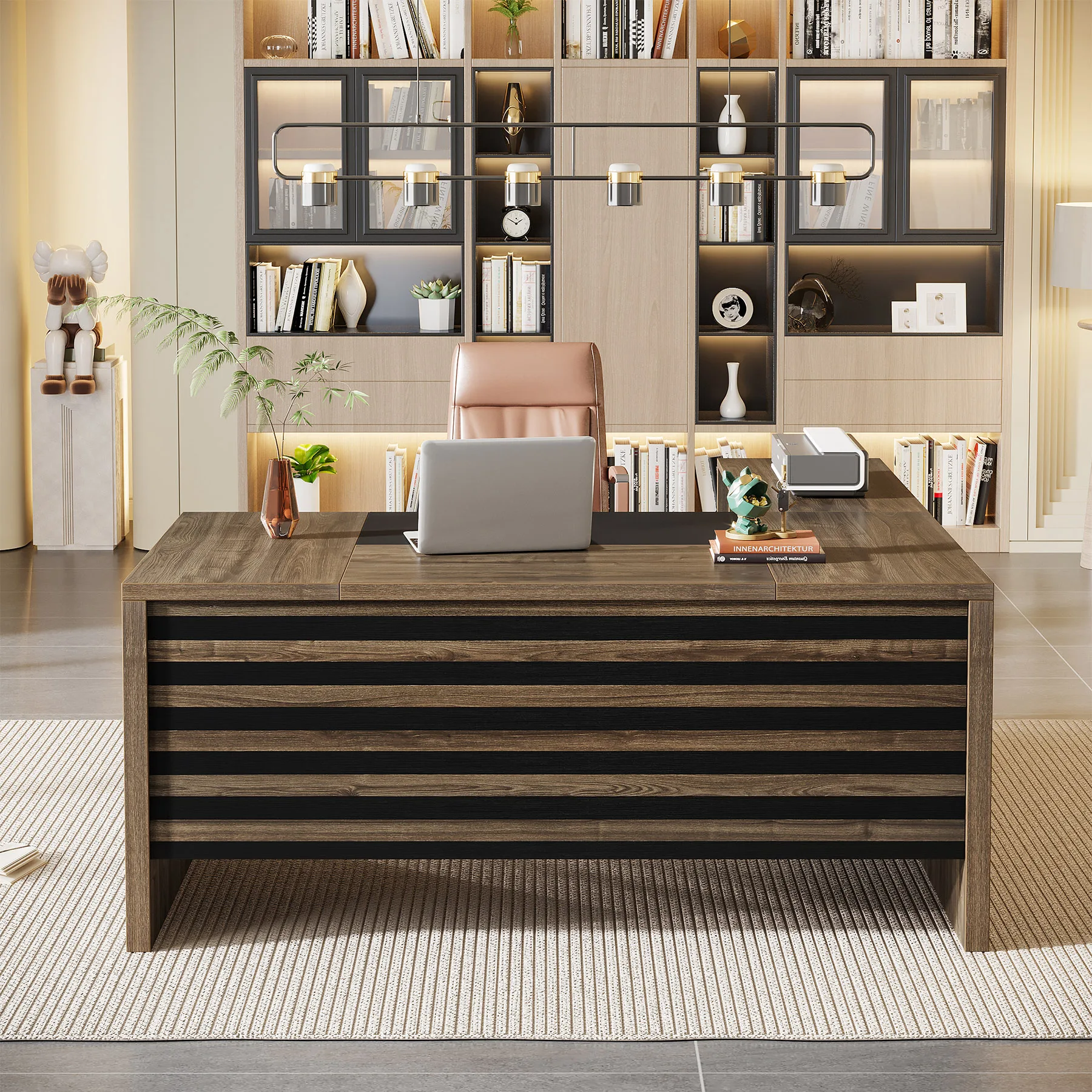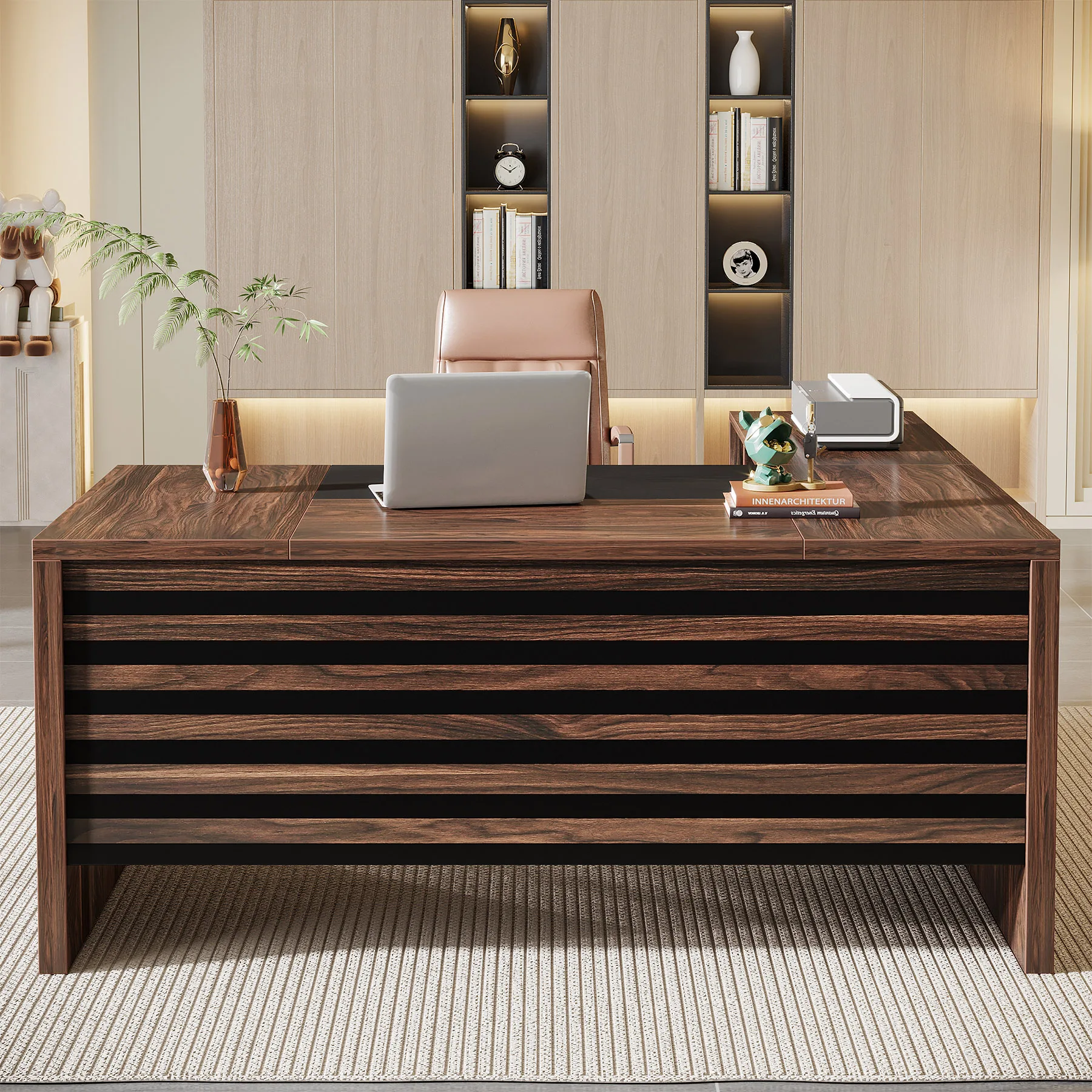 【Spacious Executive Desk】: The desk works great as a piece of business furniture or a home office workstation. With a 62.2" W x 31.1" D super large desktop, it provides ample space for your computer, monitor, printer, as well as for writing, study, and other home office activities. This executive desk is a great option for dual monitors.