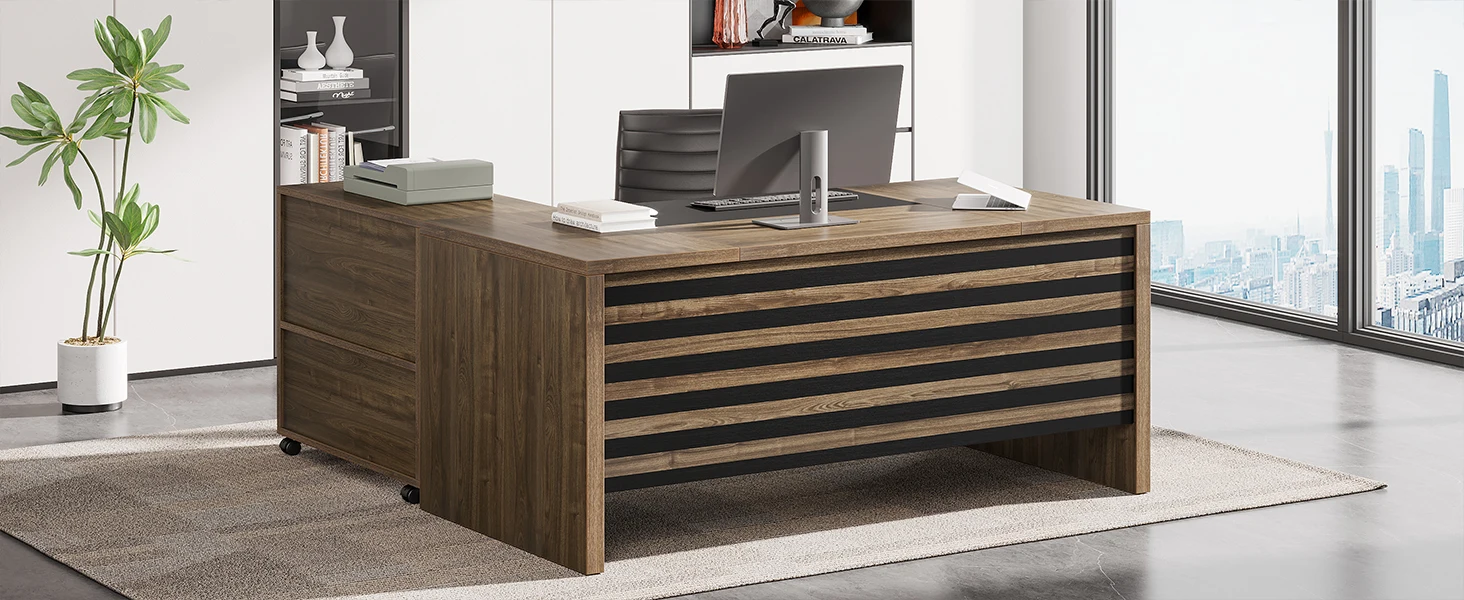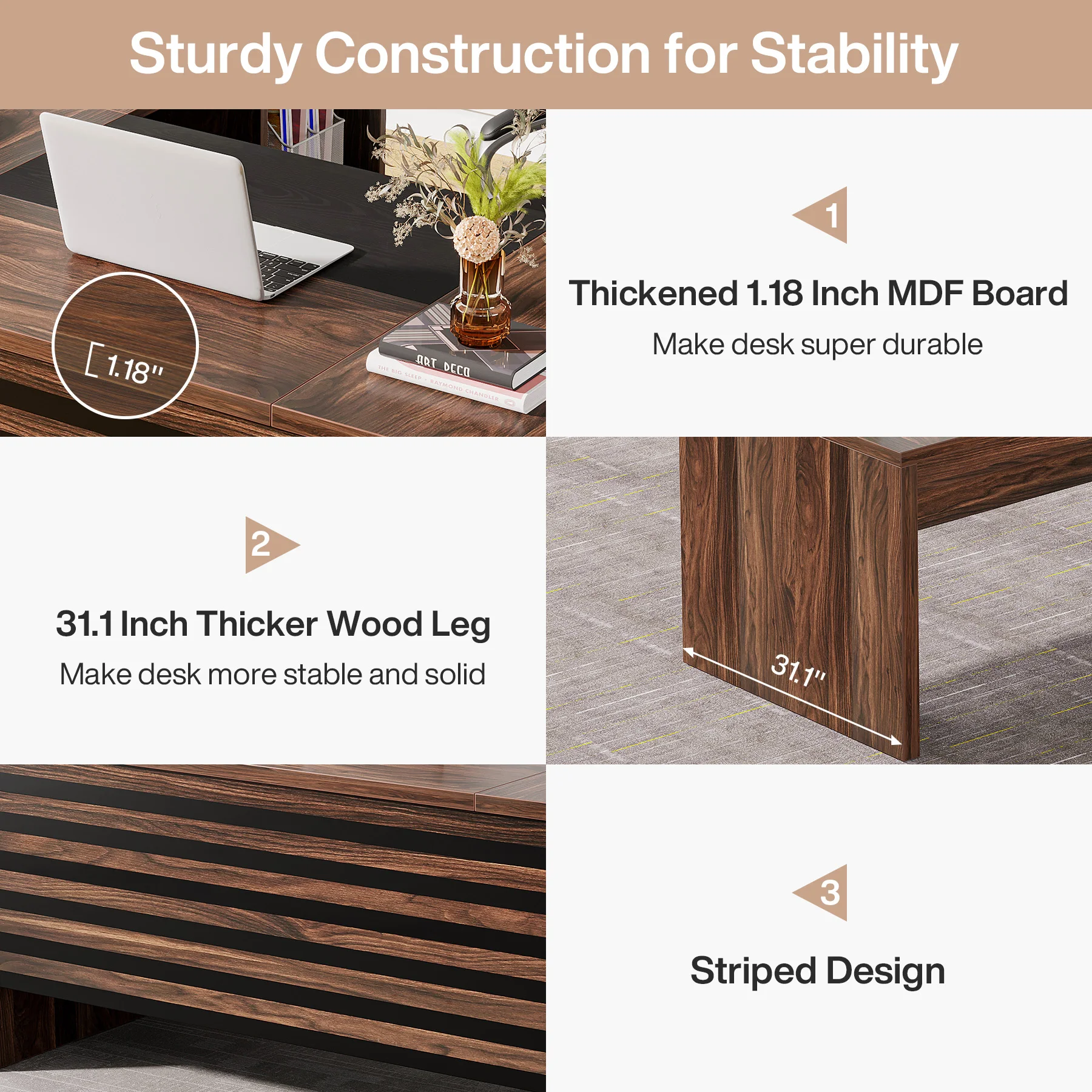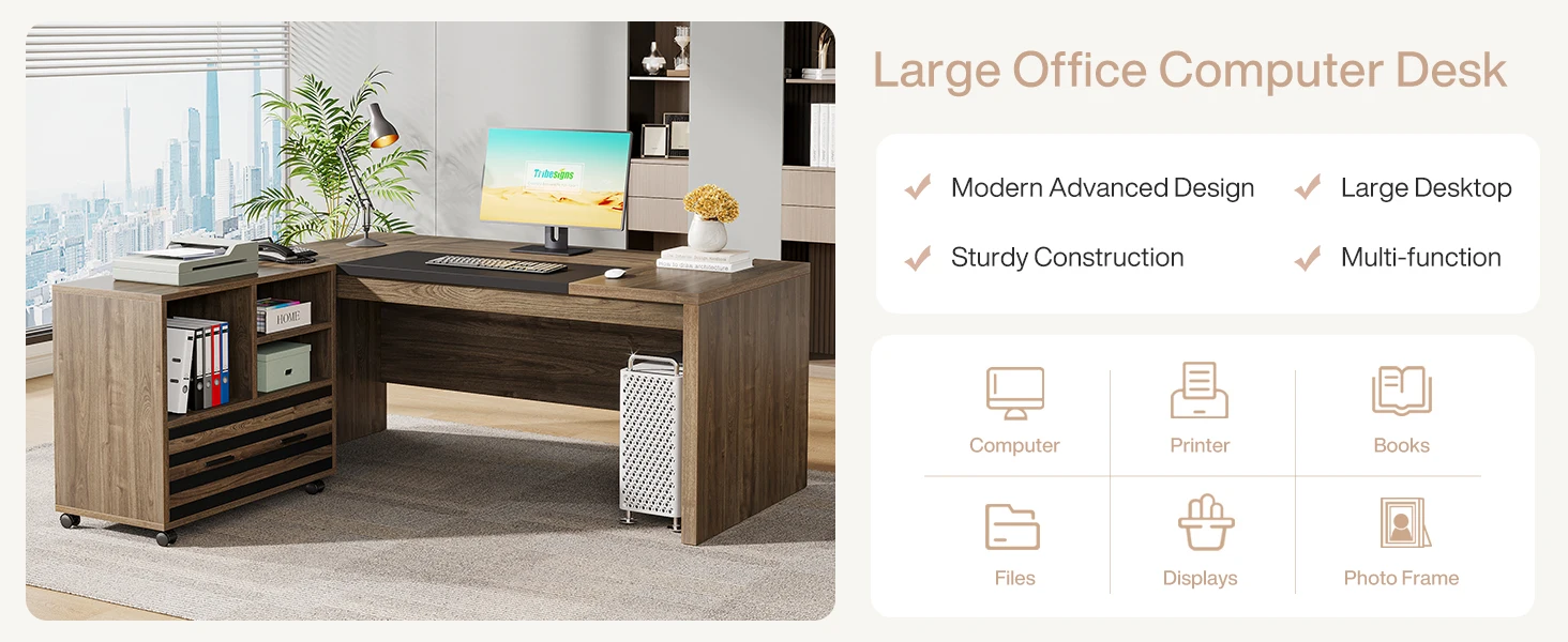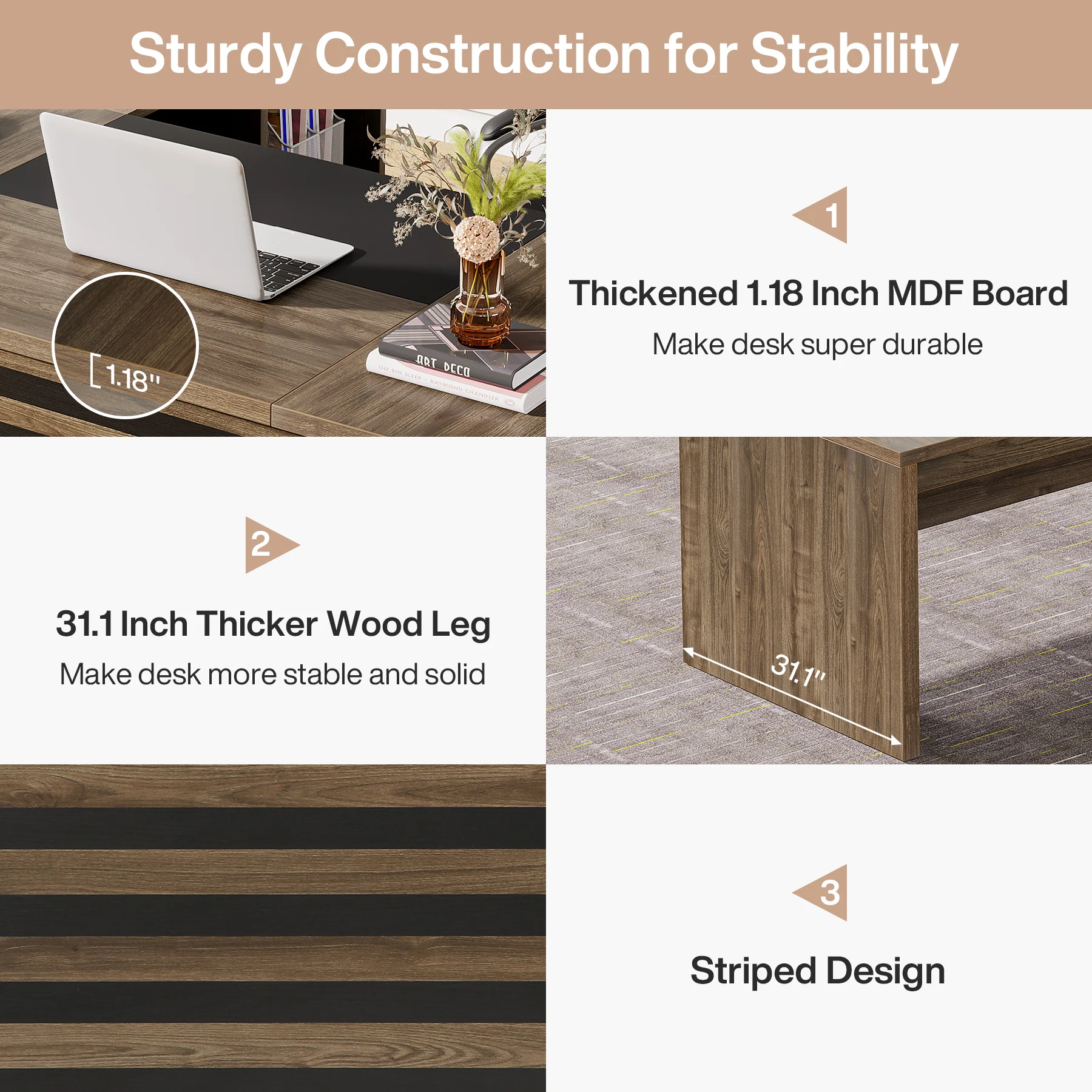 【Spacious Executive Desk】: The desk works great as a piece of business furniture or a home office workstation. With a 62.2" W x 31.1" D super large desktop, it provides ample space for your computer, monitor, printer, as well as for writing, study, and other home office activities. This executive desk is a great option for dual monitors.