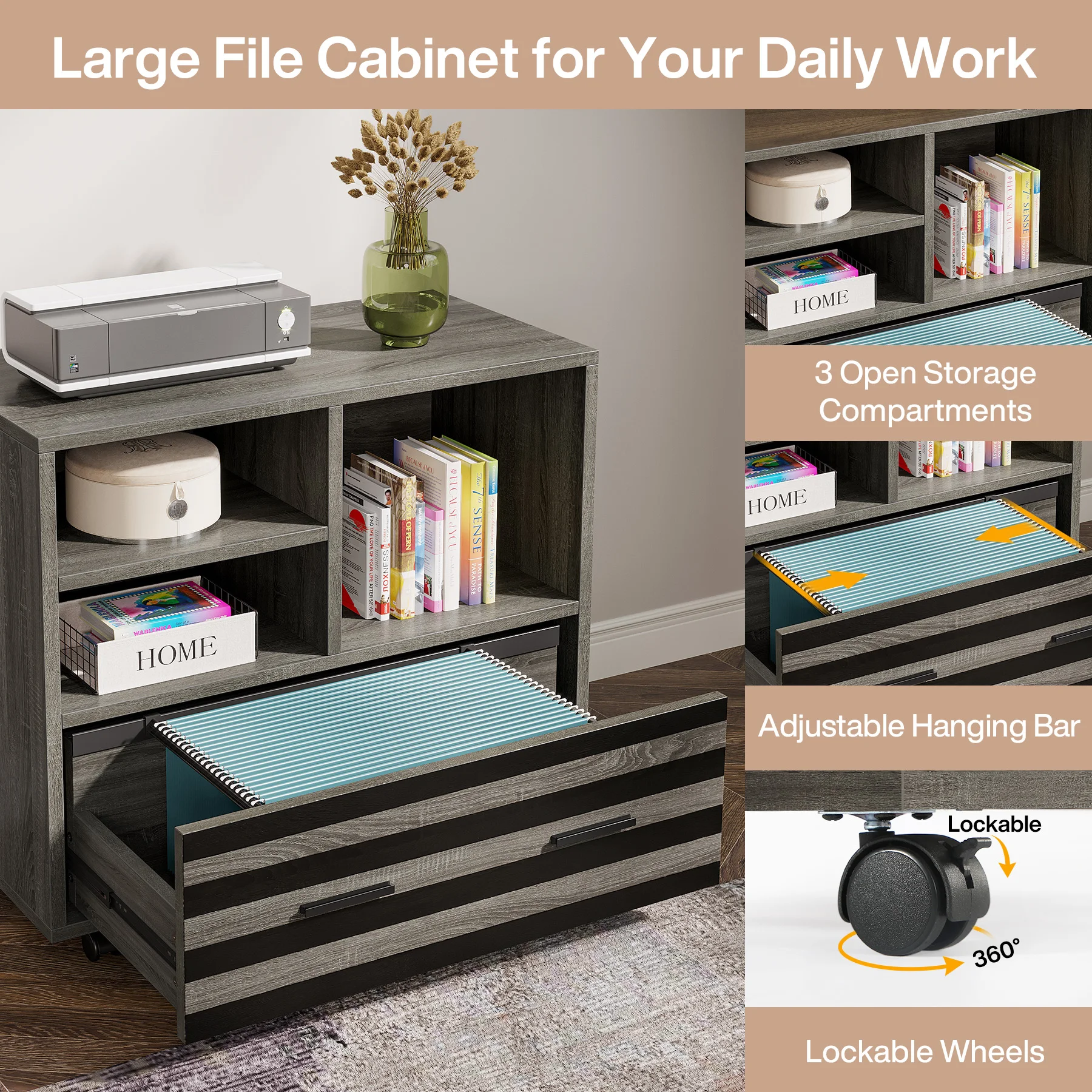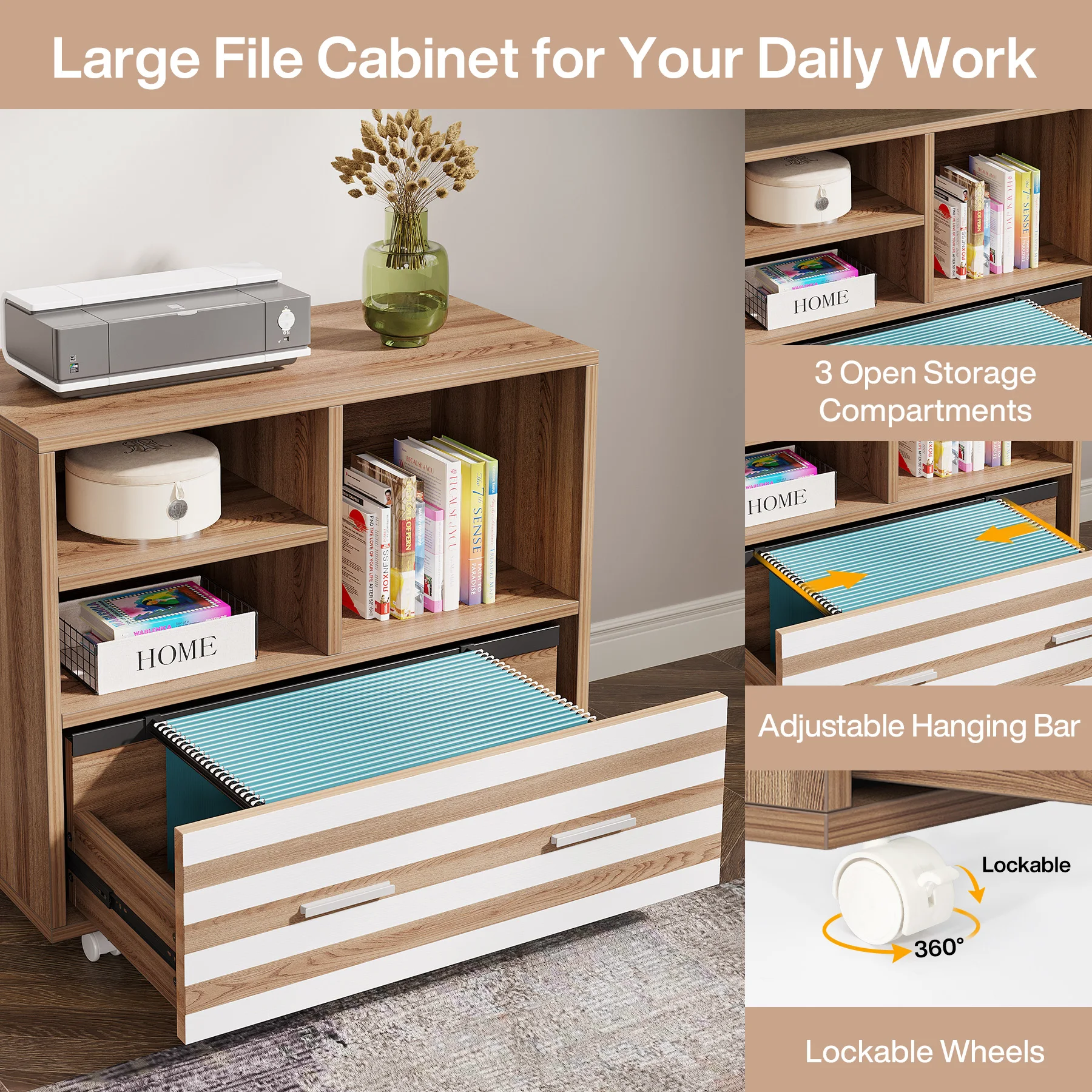 【Versatile Mobile Filing Cabinet】: This rolling file cabinet comes with 4 swivel 360° casters. The front 2 casters can be locked, so you can easily move and lock this cabinet anywhere. The file cabinet measures 31.3" W x 15.6" D x 29.7" H, holds letter/legal/A4 folders, and keeps the office environment tidy.