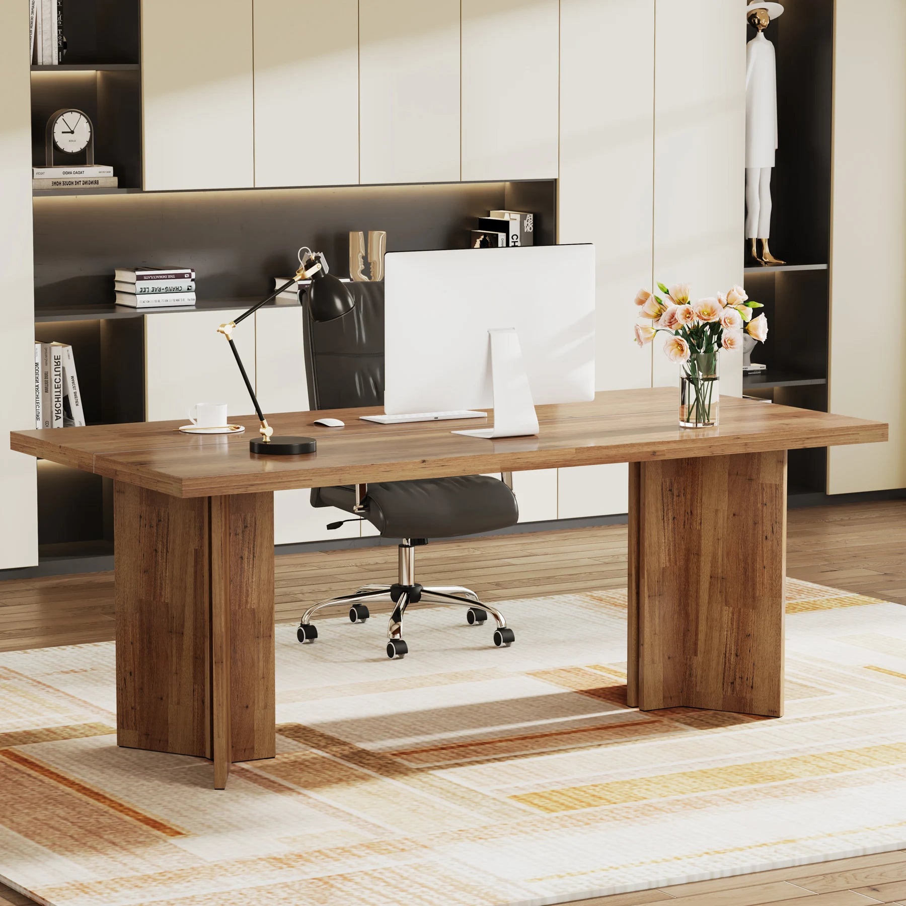 MonoWood 63-inch Executive Desk, Vintage Home Office Computer Desk with Large Tabletop, Farmhouse Wood Writing Conference Tabl