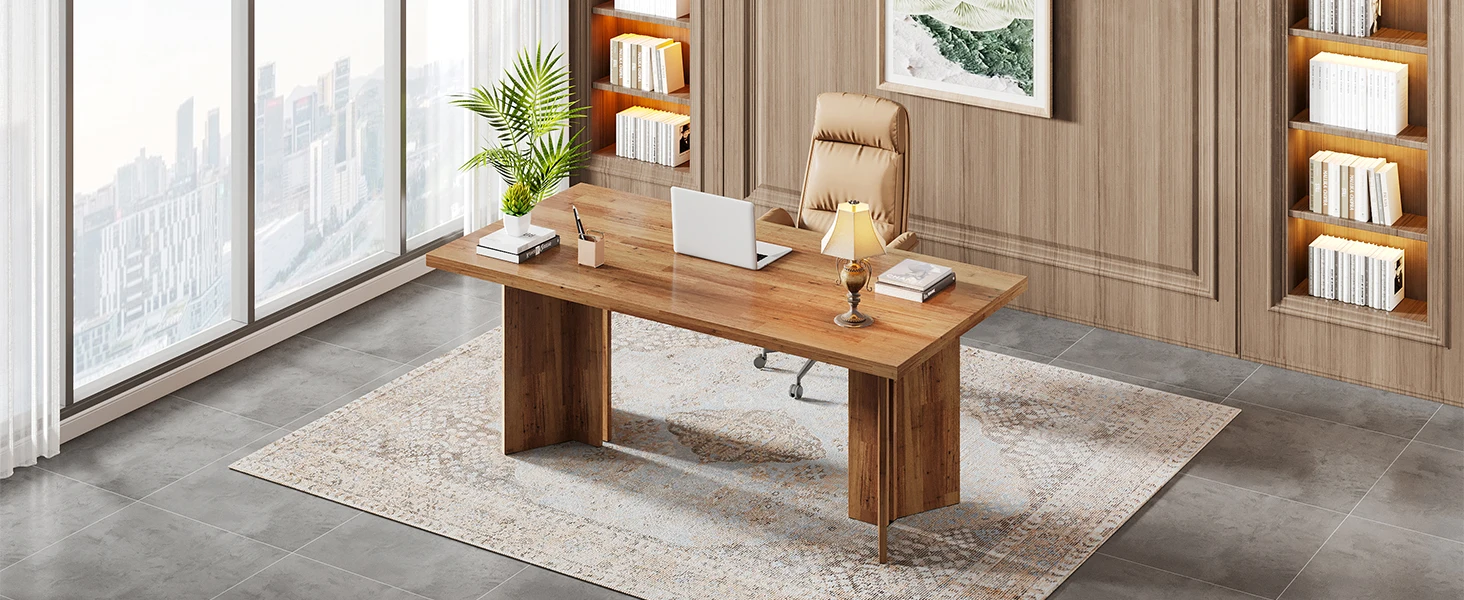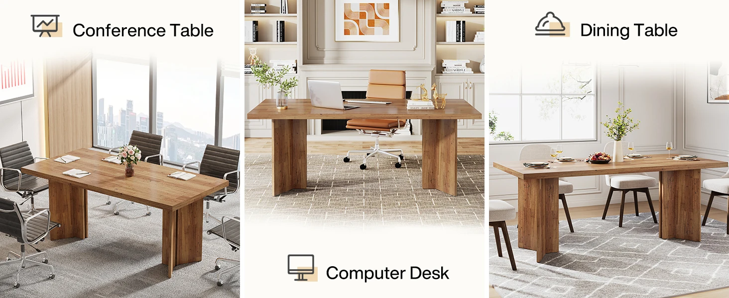 【Versatile Usage】: Elevate your home decor with our multipurpose rectangular desk! Embrace its versatility as an executive desk in the office, a conference table in the meeting room, a stylish dining table in the dining room, a functional computer writing desk, a conducive study table, a productive work desk, and so much more.