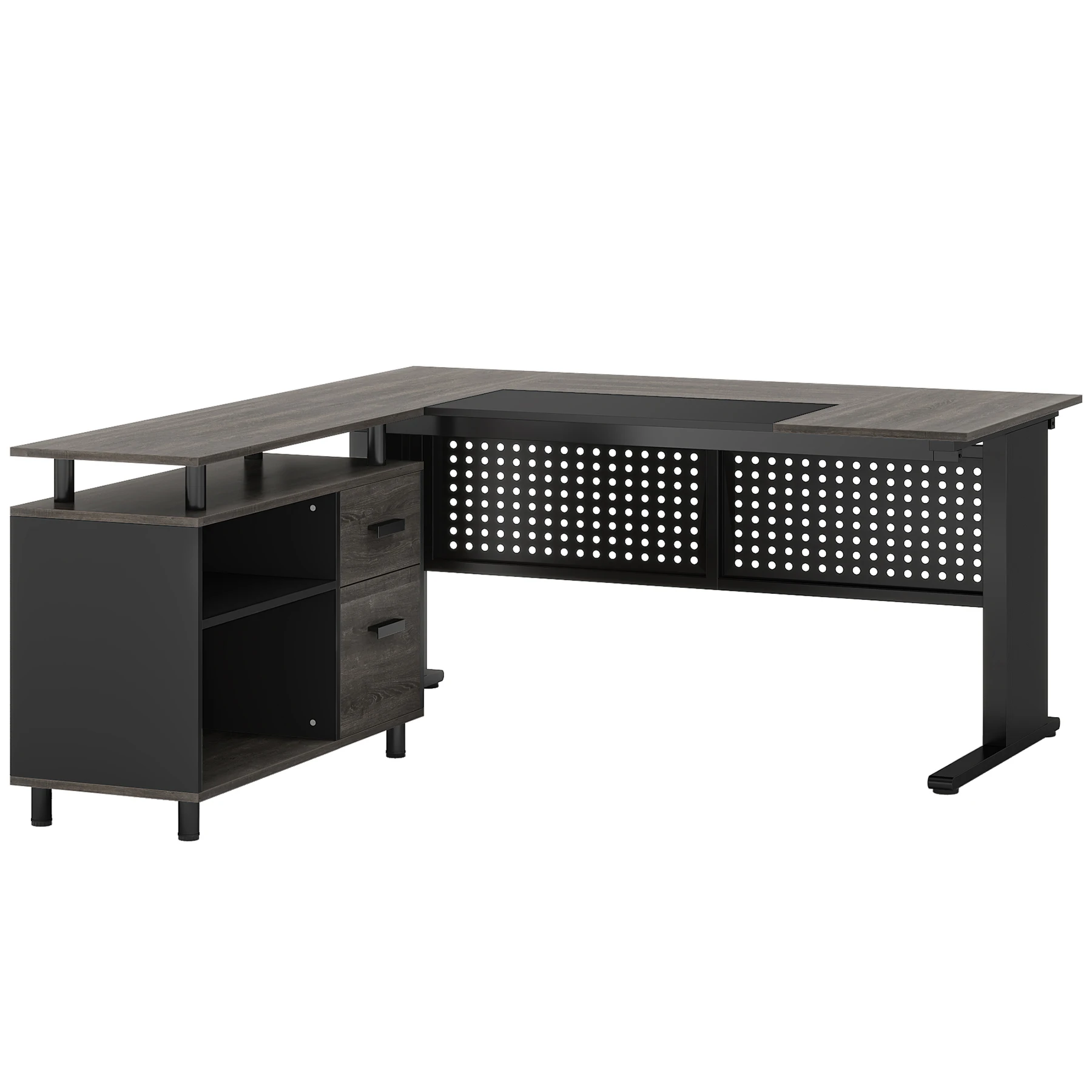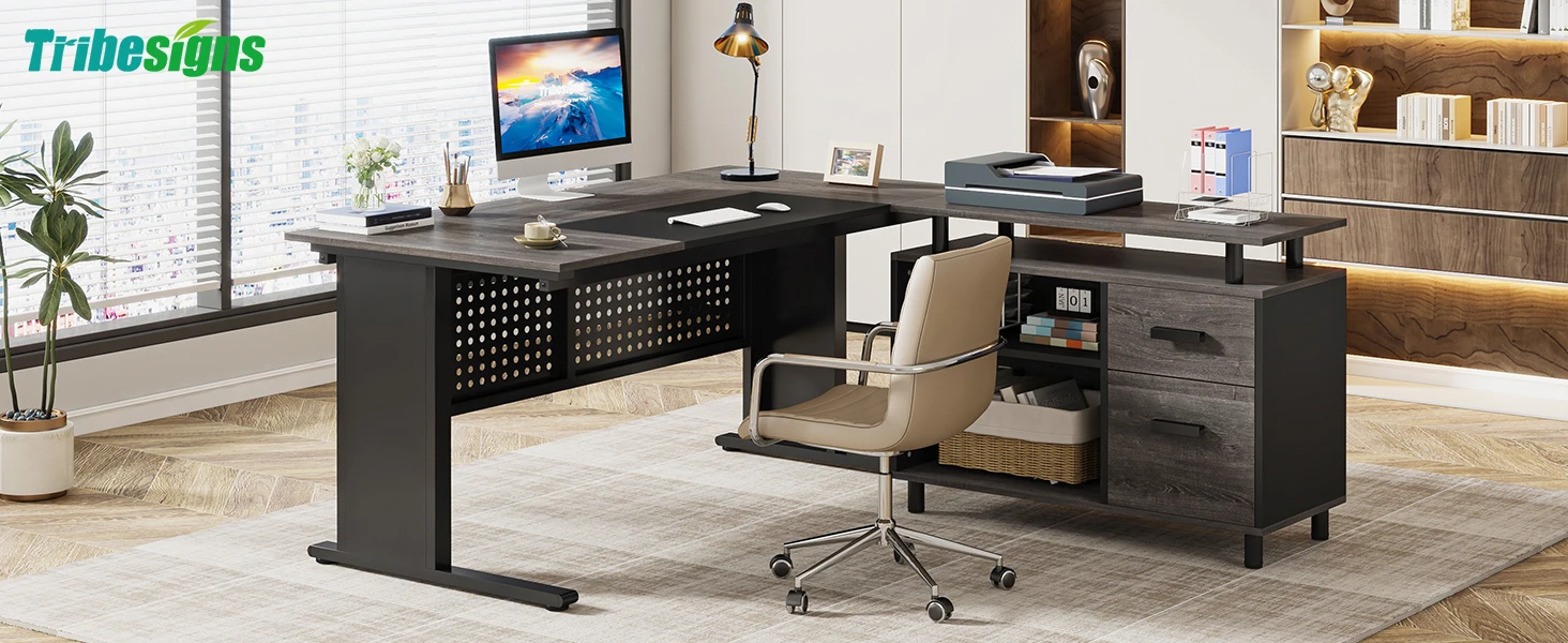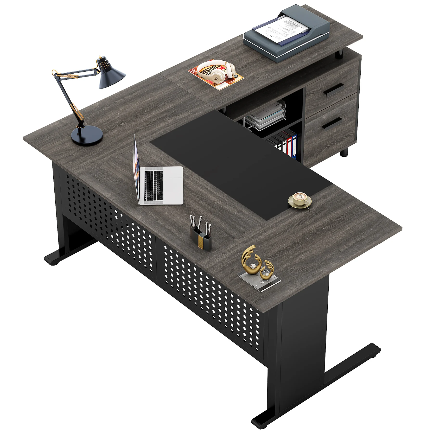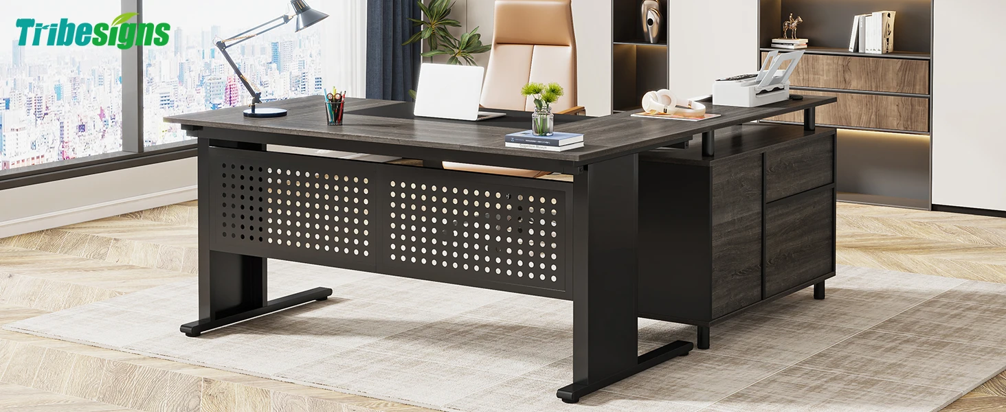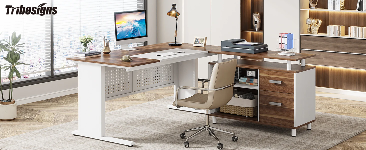 MODERN L SHAPED DESK: With the combination of functional design and elegant grid design, this l shaped executive desk not only includes practical performance of modern furniture, but also adds a nice addition to your room. The decent and elegant appearance makes this office desk and filing cabinet look great in your space as a workstation.