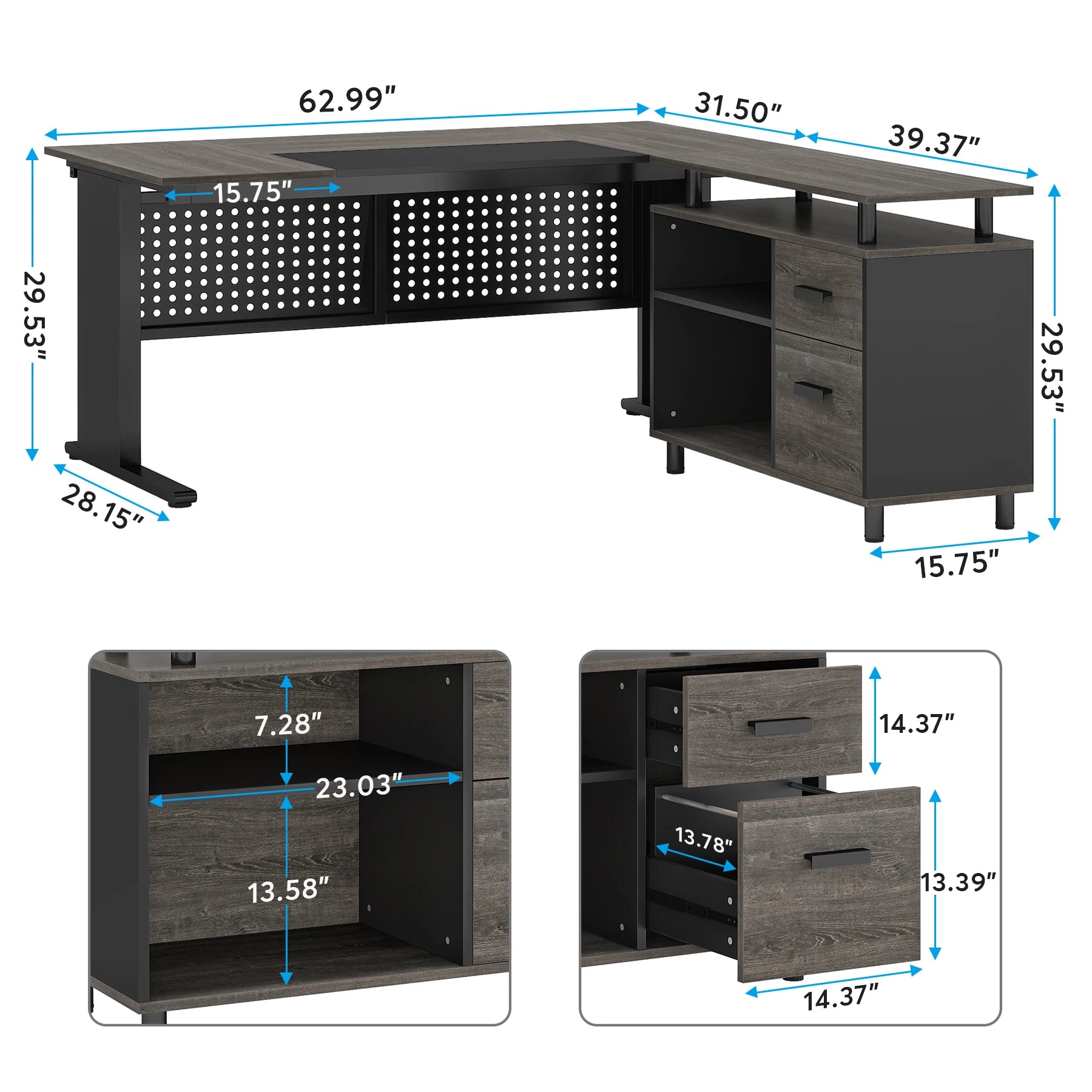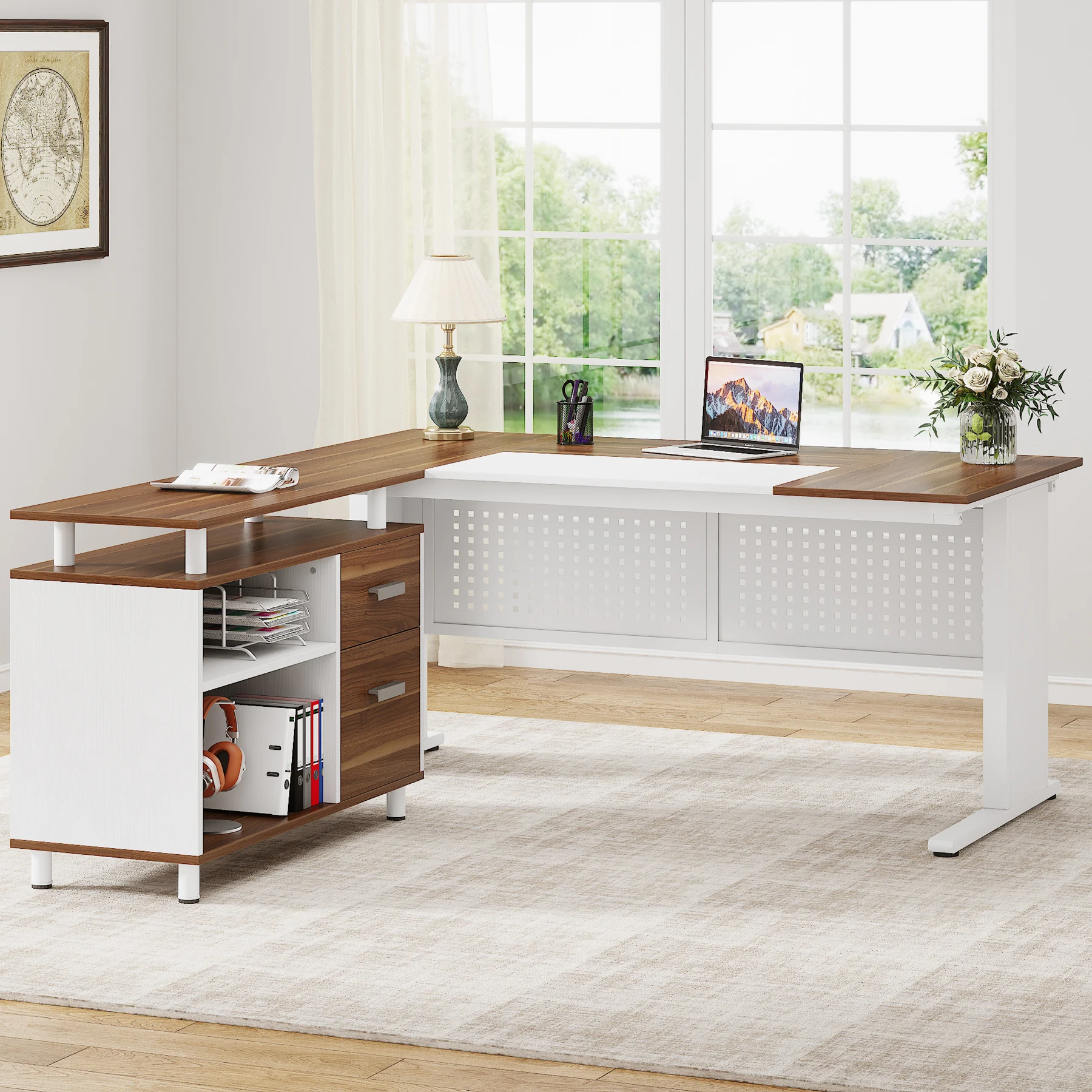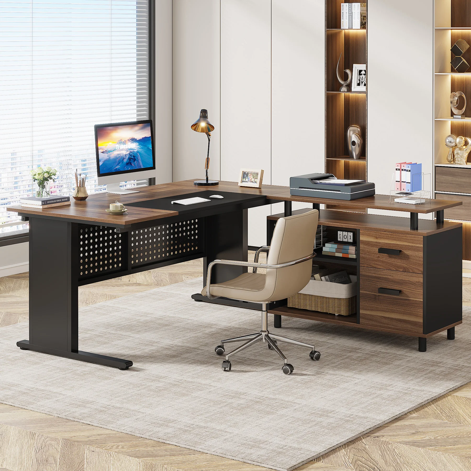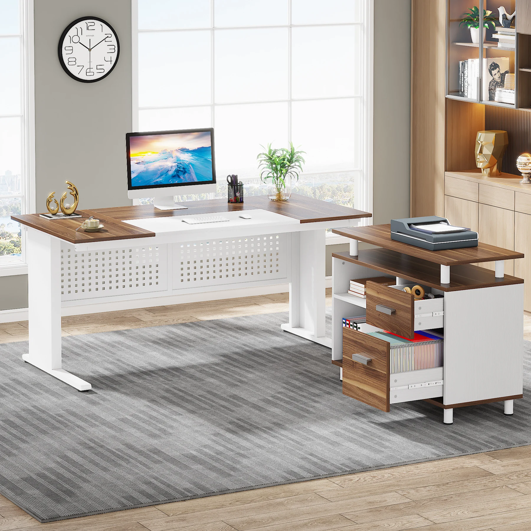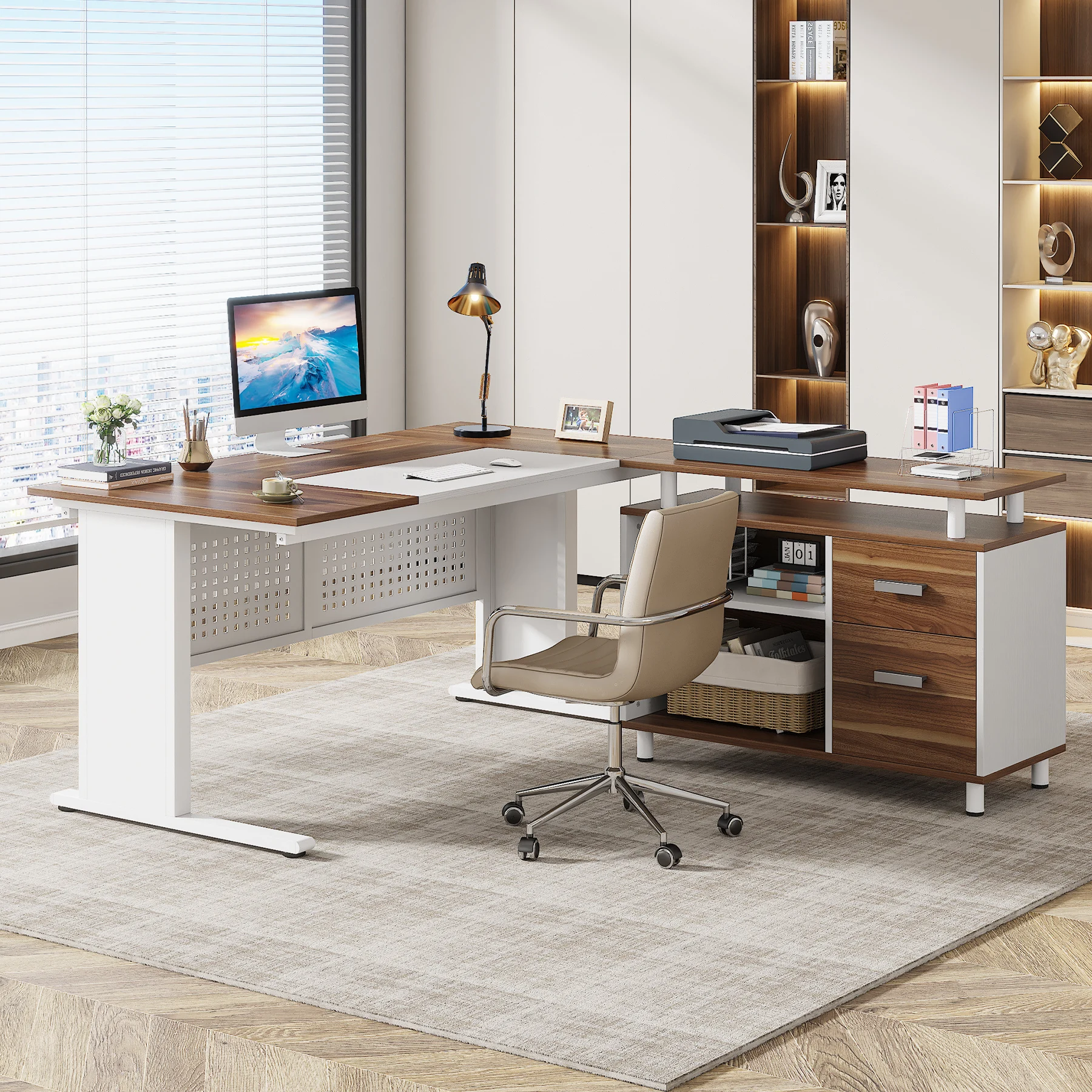 MODERN L SHAPED DESK: With the combination of functional design and elegant grid design, this l shaped executive desk not only includes practical performance of modern furniture, but also adds a nice addition to your room. The decent and elegant appearance makes this office desk and filing cabinet look great in your space as a workstation.