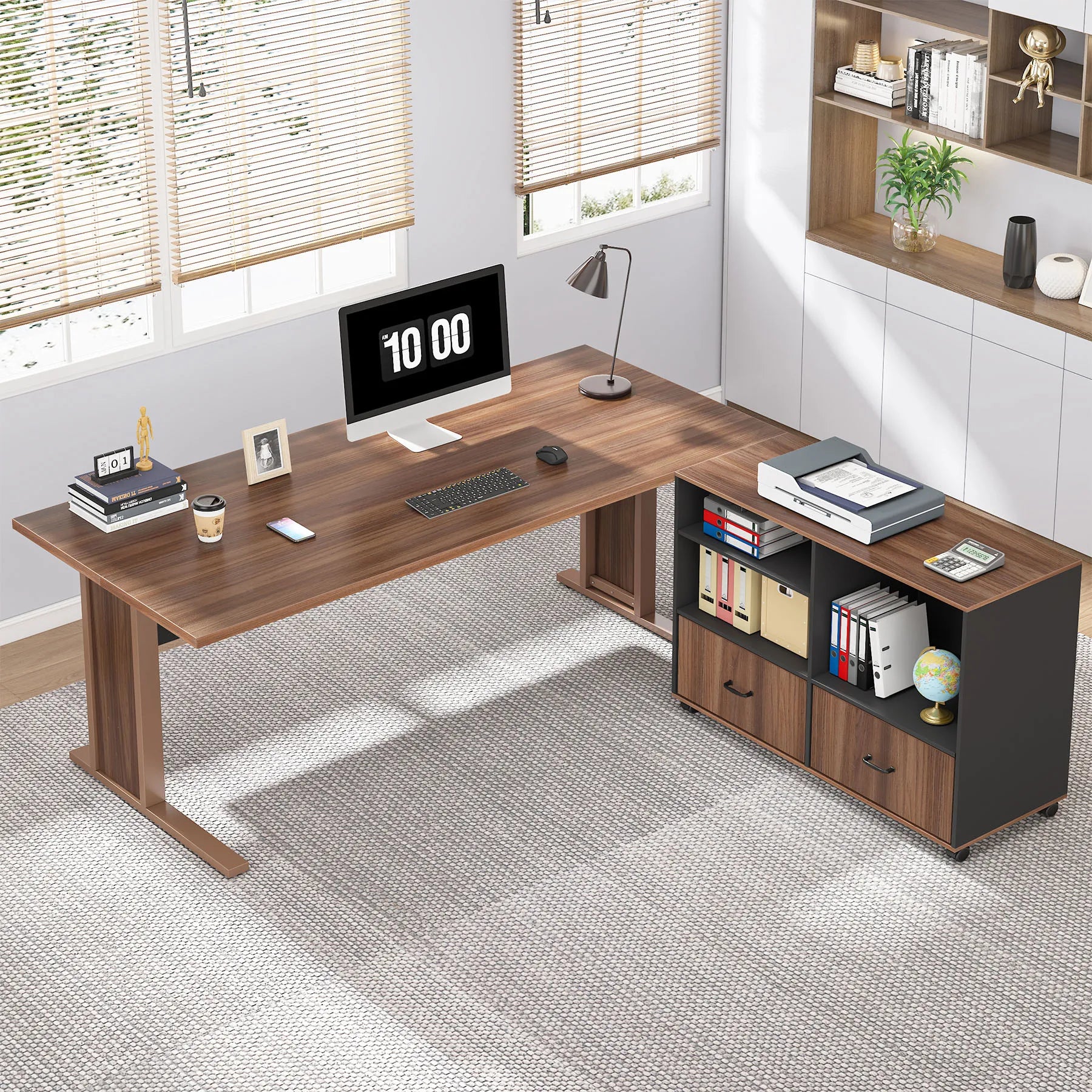 MonoWood 63" Large Executive Desk L Shaped Computer Desk with File Storage Cabinet, L-Shaped Executive Office Desk