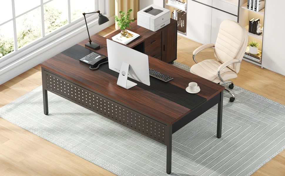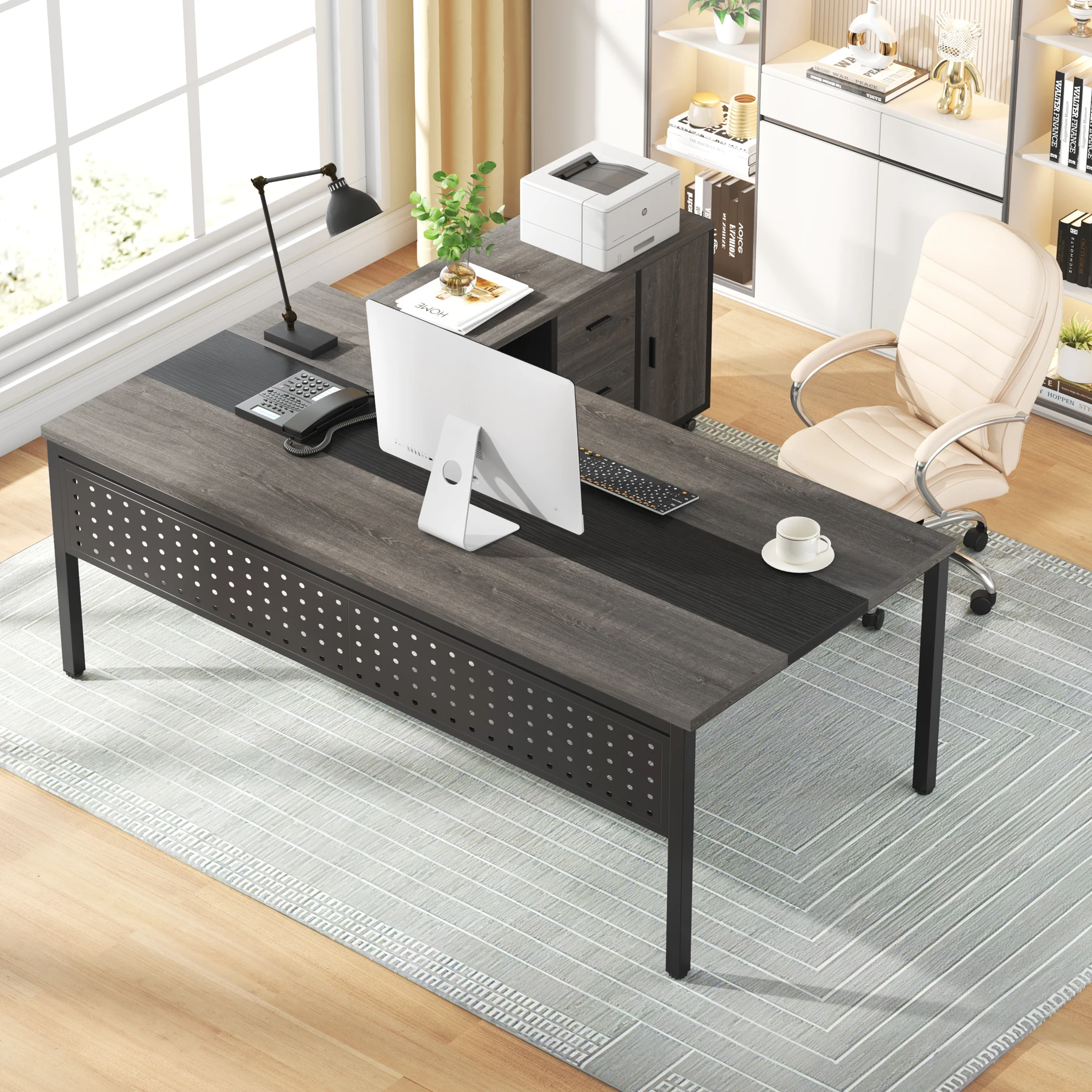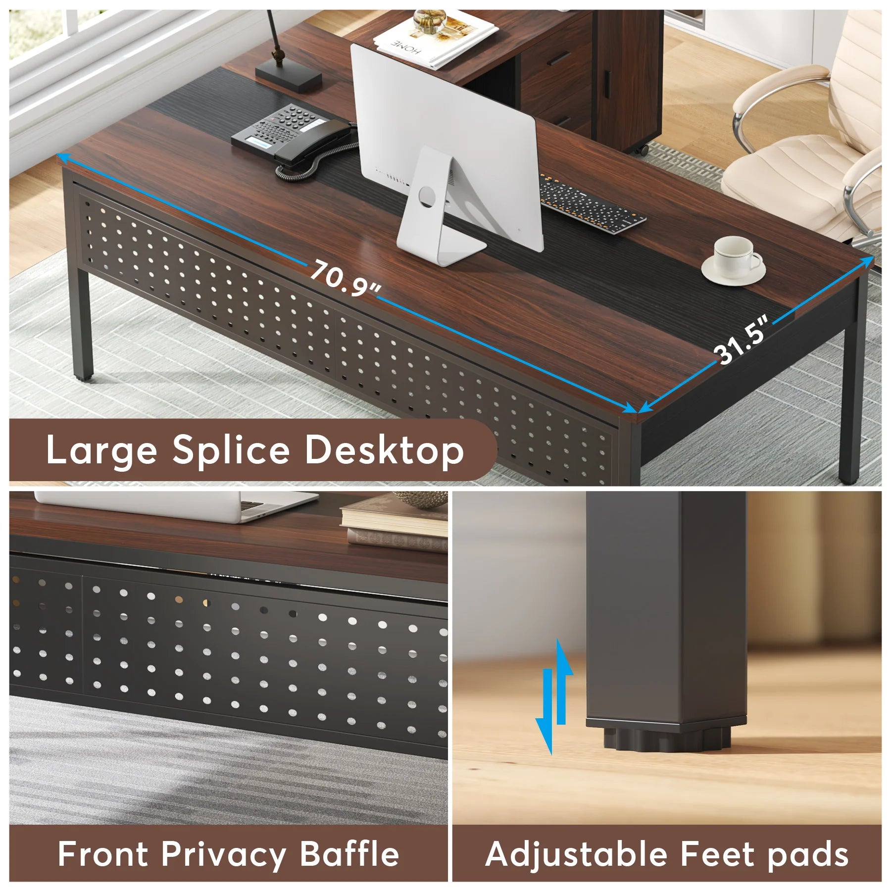 Extra Large Executive Desk: Works great as business furniture workstation. 70.8 x 31.5 inch super large desktop, providing ample space for dual monitors or home office activities. Also, the front baffle design of the executive desk is great for decoration