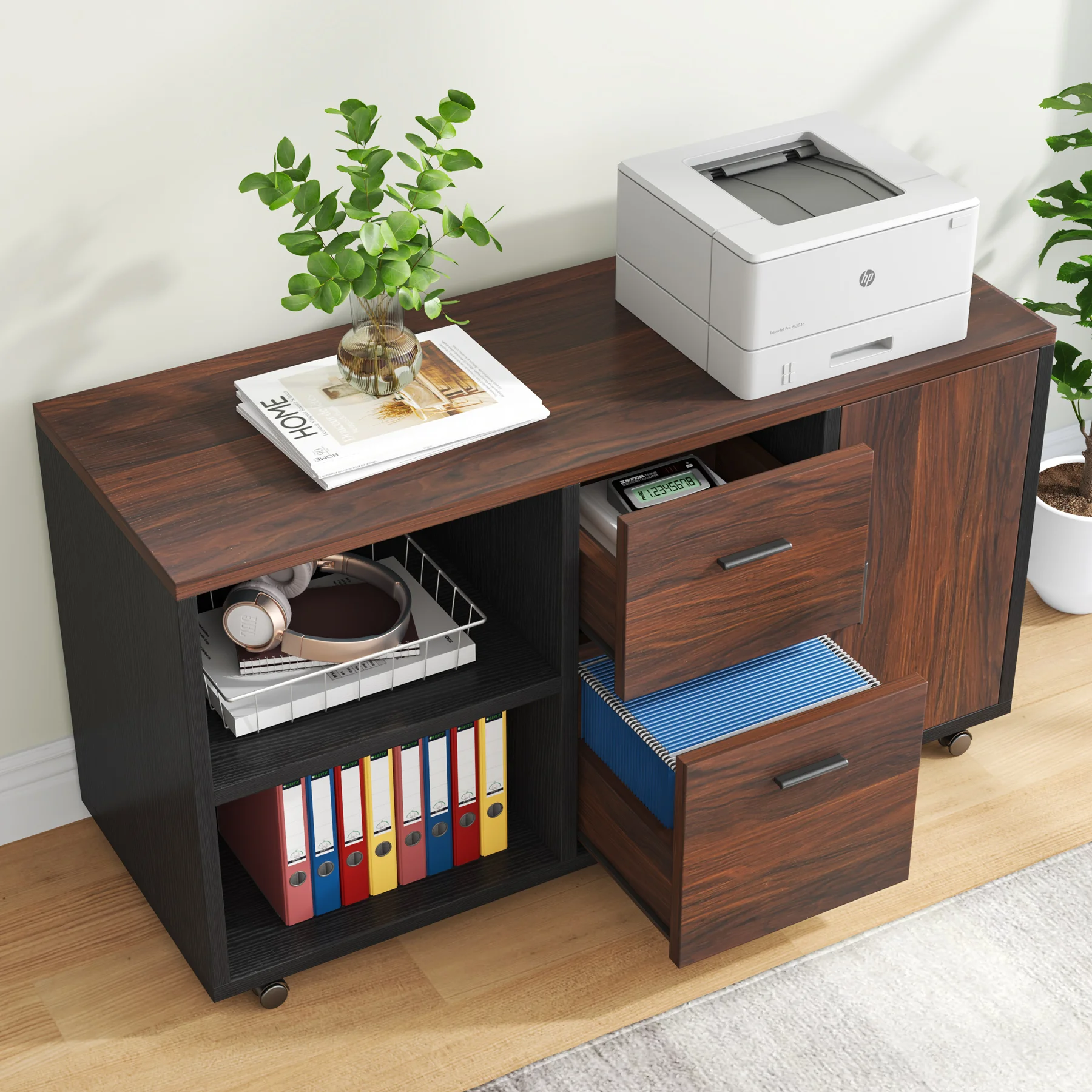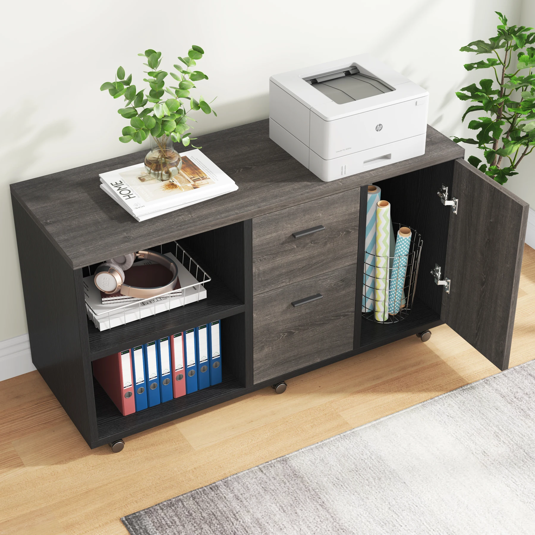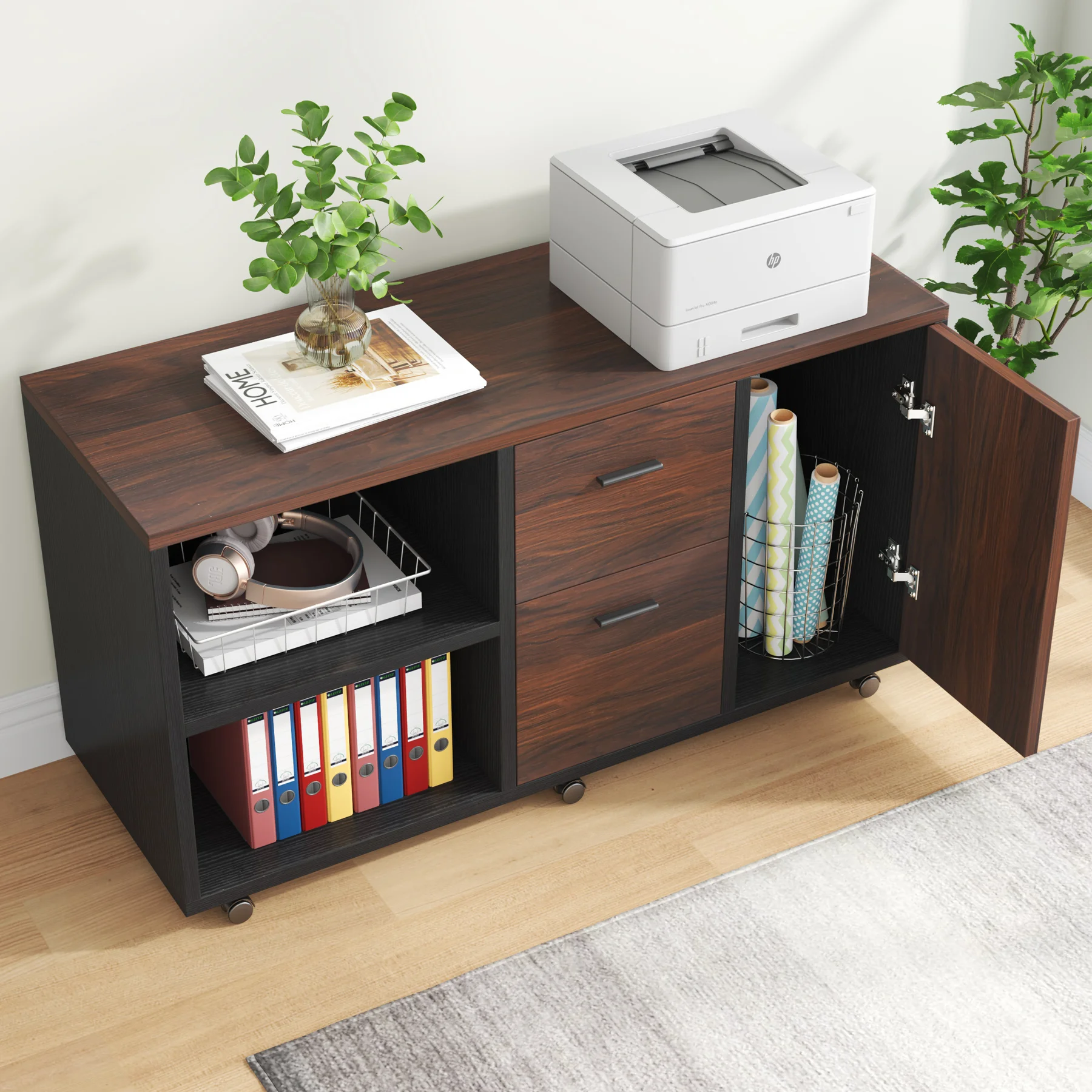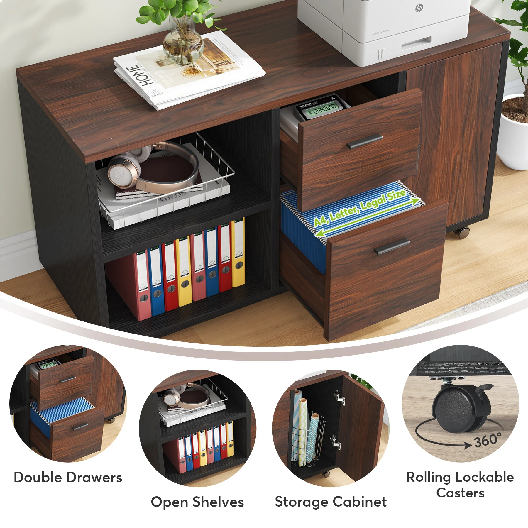 Storage Cabinet with 2 Drawers: 47" filing cabinet on wheels features with large top space, open storage shelves, door cabinet and 2 drawers (the bottom drawer is fit for A4/ Letter/ Legal size file), which can keep your daily office supplies organized