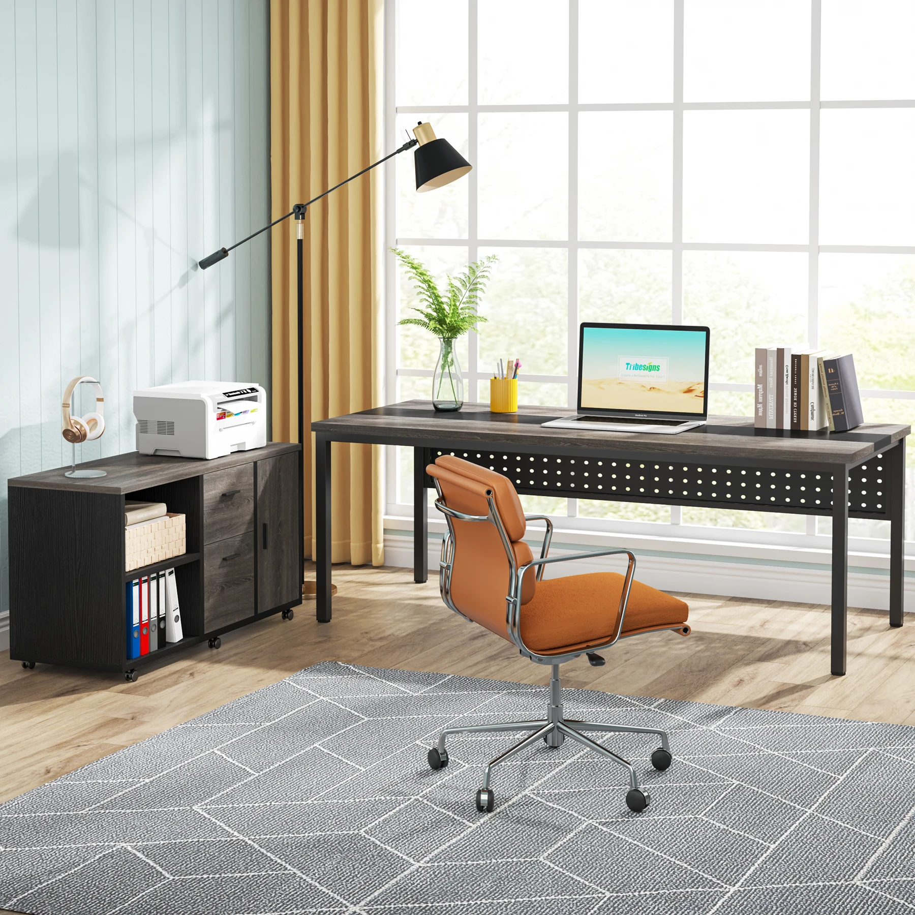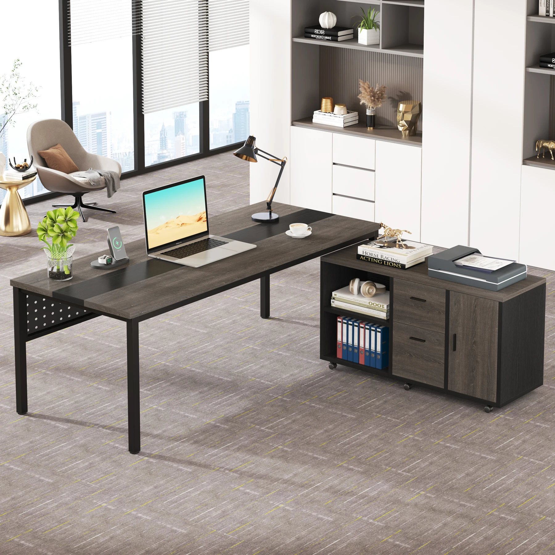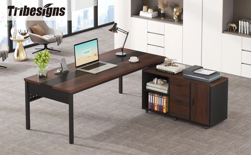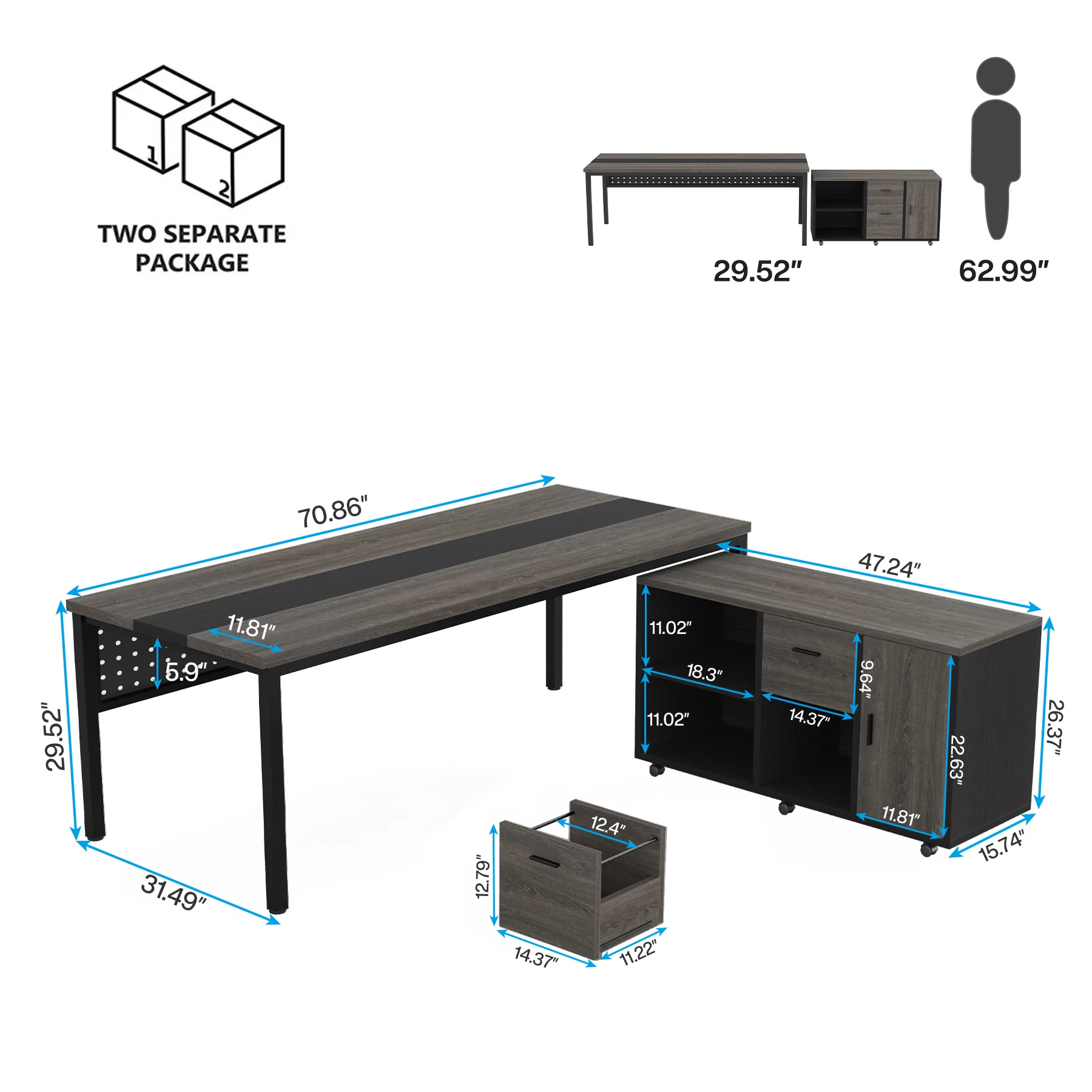 Simple Office Furniture Combo: The long computer desk & mobile file cabinet set. Two separate pieces design allows you to use them independently and install on the left or right side as you like. The executive desk offers ample space to stretch your feet