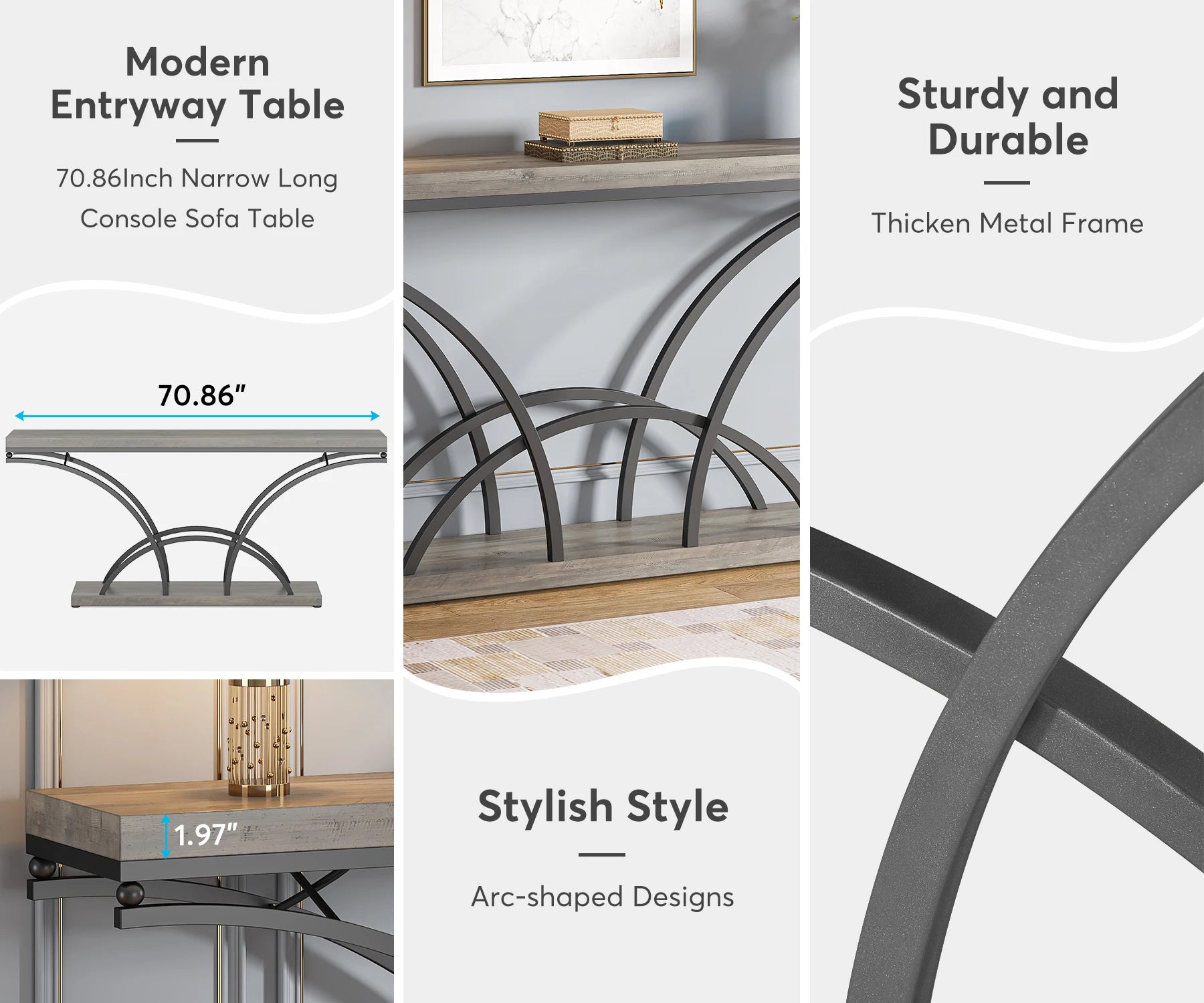 MonoWood 70.9 Inch Extra Long Console Table for Entryway, Gray Sofa Table with Wood Tabletop, Modern Accent Tables