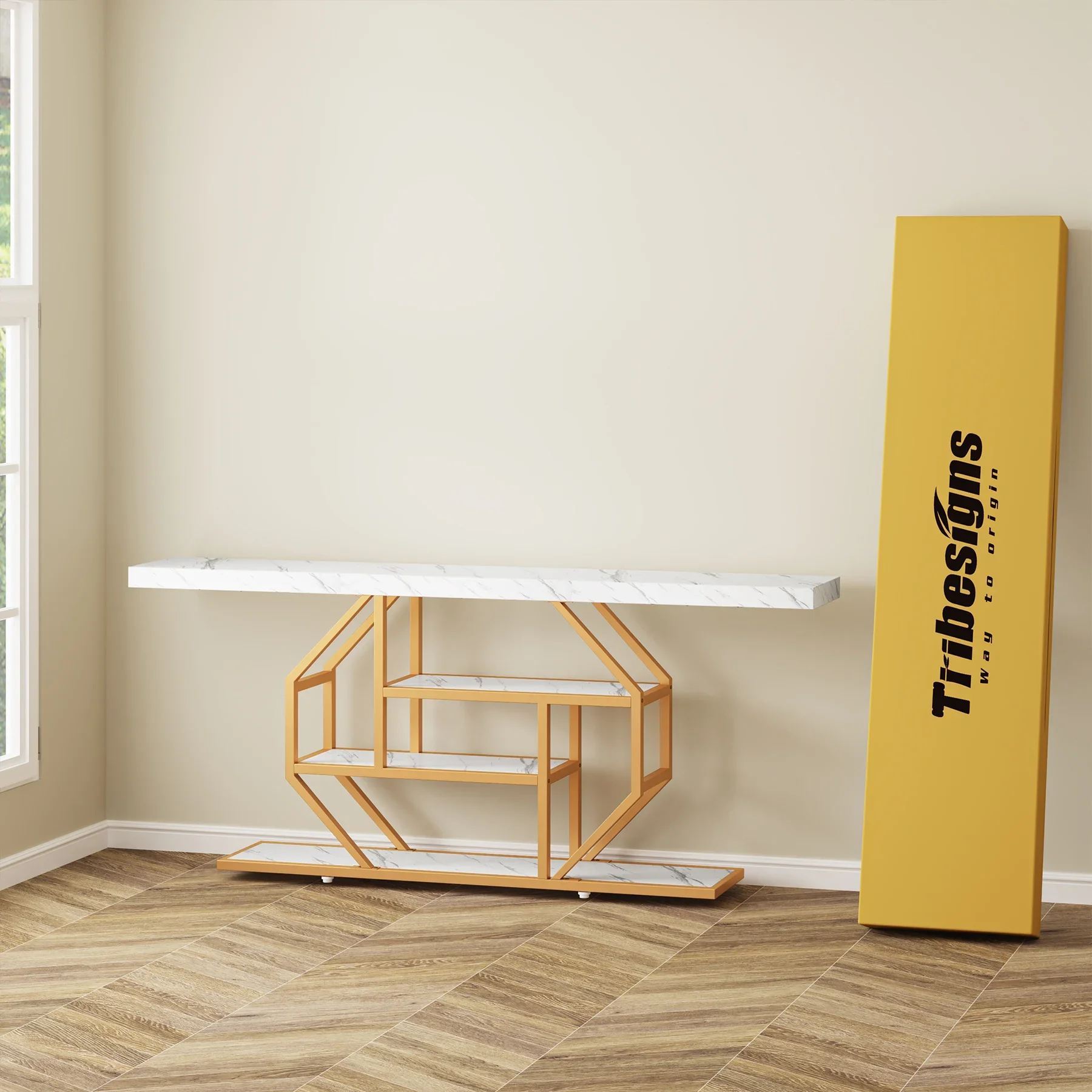 MonoWood 70.9 inch Extra Long Console Table, Modern Gold Sofa Table Behind Couch with Storage, 4 Tier Entryway Accent Table