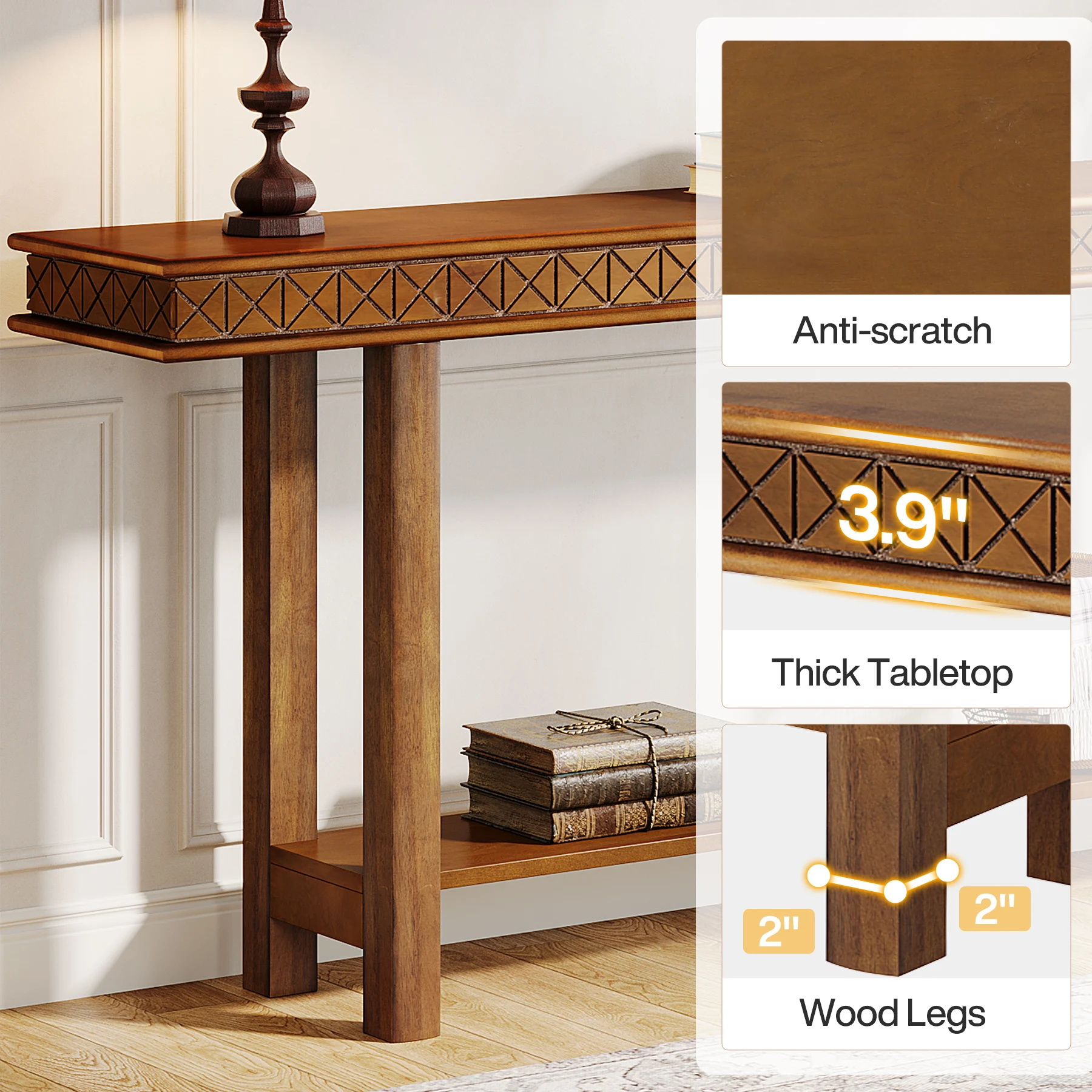 【SOLID CONSTRUCTION】 Made from premium E1 particleboard, the wood structure ensures the durability and solidity of the rustic console table for long-term use. With 1.96" thickened legs, the entrance table is always stable and holds significant weight (top: 120 lb, lower shelf: 80 lb). Simply wipe it with a damp cloth for routine cleaning.