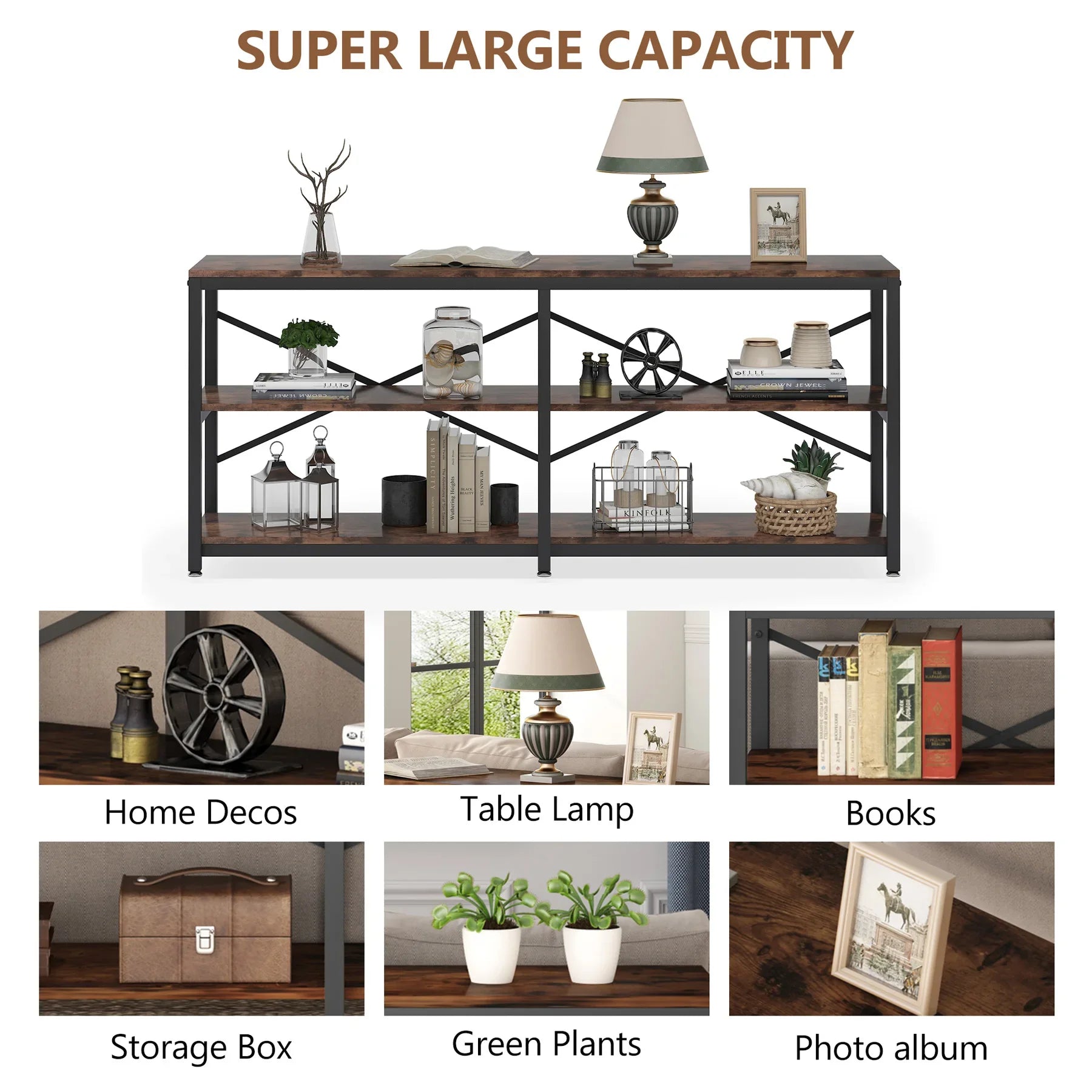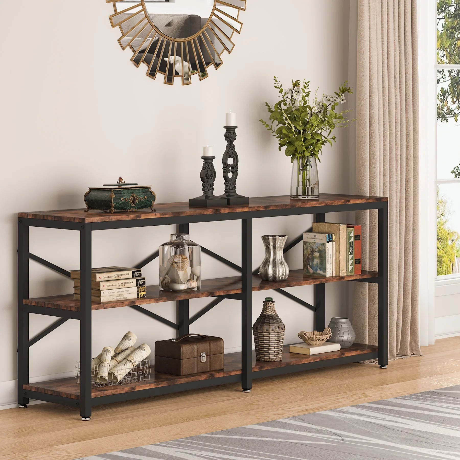 3-Tier Sofa Table with Storage: The long tabletop (70.86" L x 11.8"W) of the sofa table adds plenty of storage, while open shelves provide extra space to place books, plants, decorations, and other items