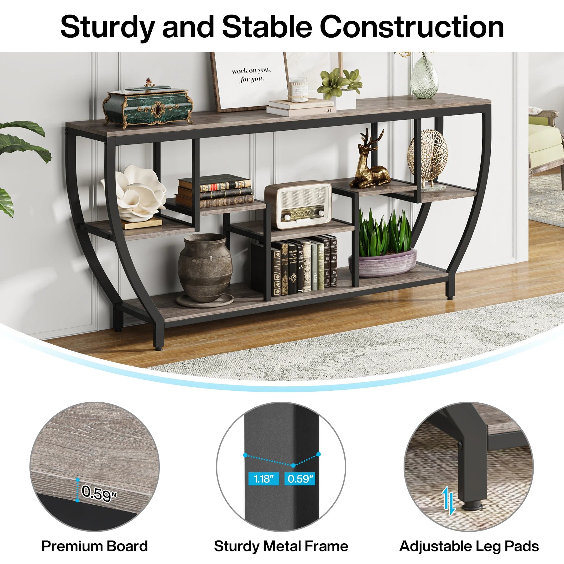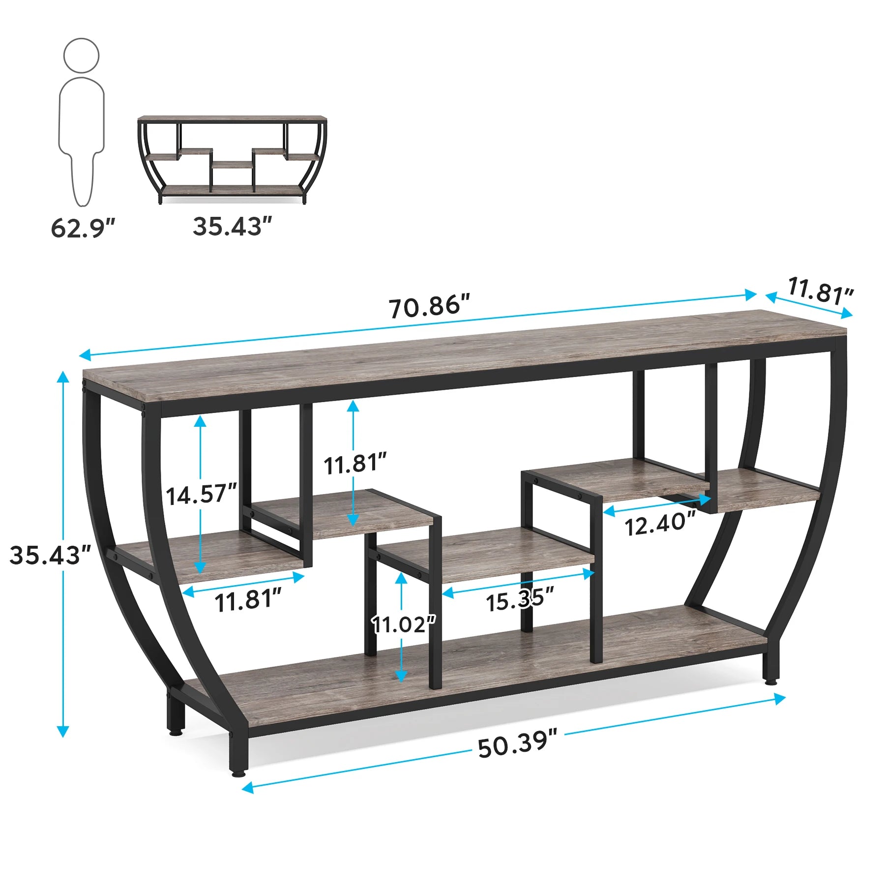 MonoWood 70.9 Inch Long Sofa Table with Shelves, Rustic Console Table with Storage, Industrial Entryway Table TV Stand