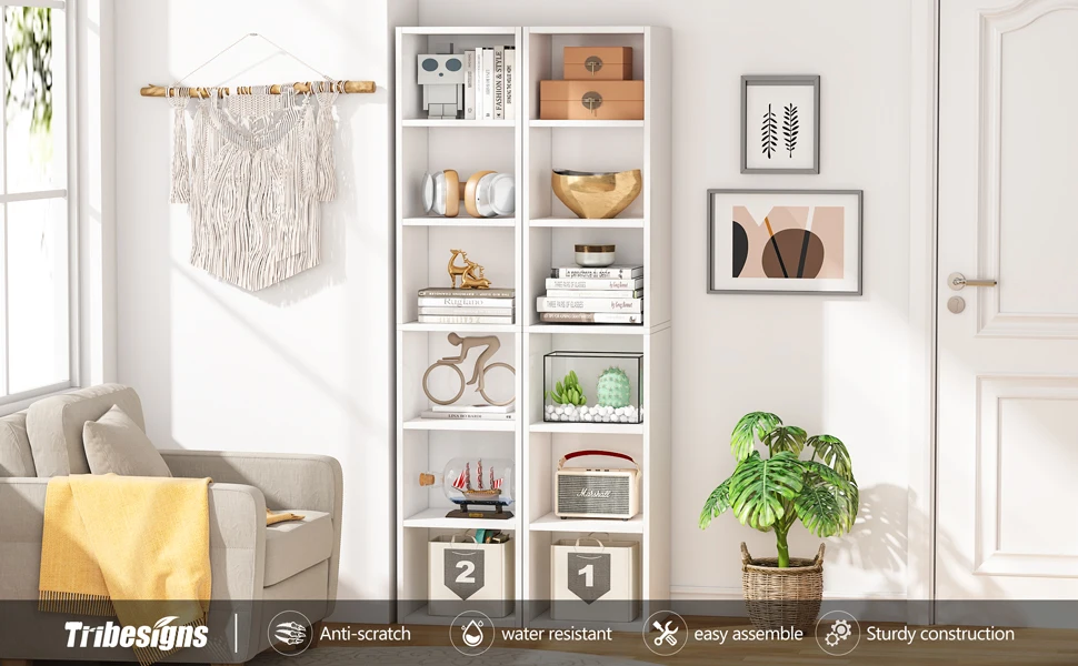 【Super Large Capacity】This cube bookcase features 6 tier open shelves which provide you ample storage space for books, photos, plants and other decorations, and also help keep everything organized and within reach