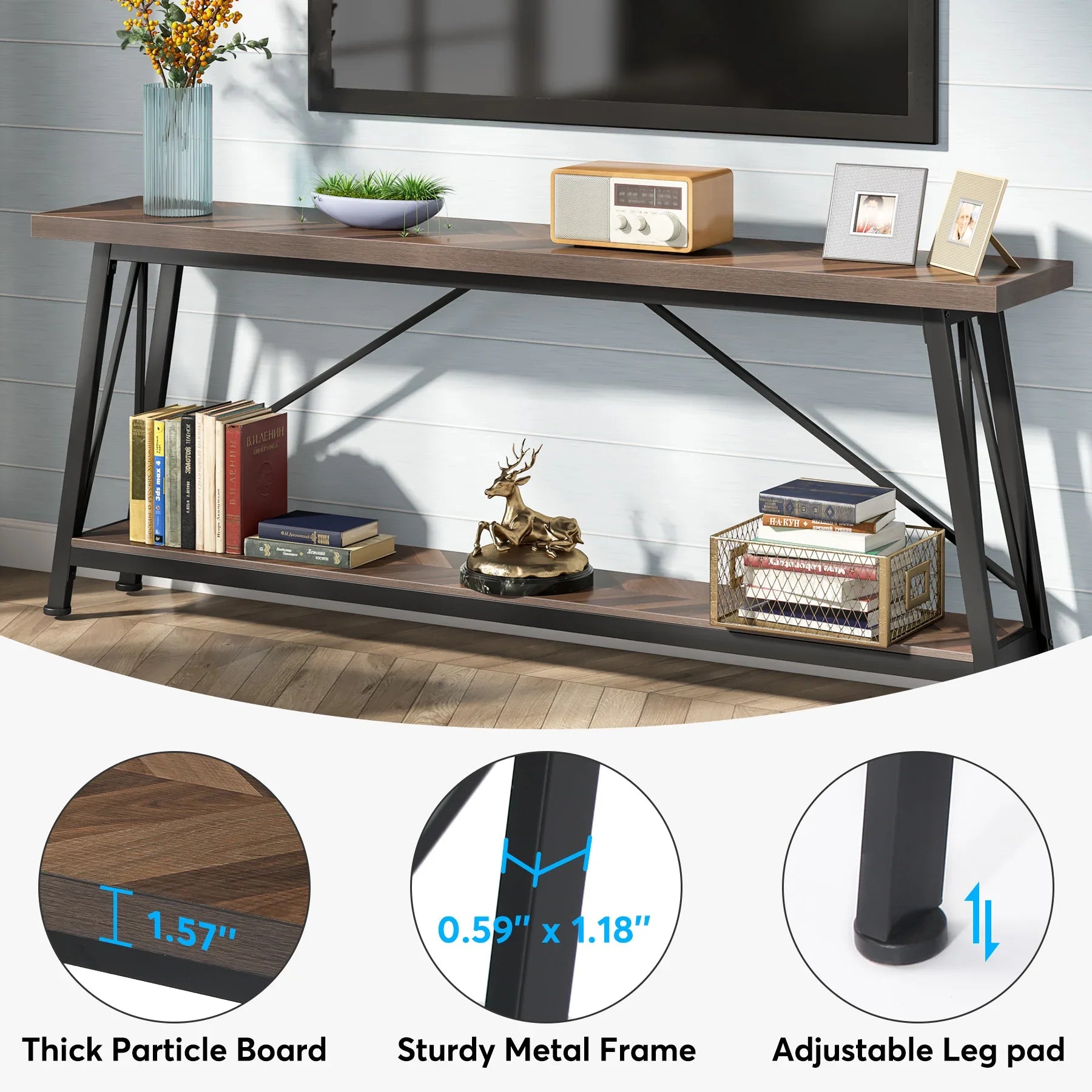 【Classic Industrial sofa Table】Bring rustic industrial style to your space with this sofa table. It is perfect for stacking go-to books, displaying framed photos, or your favorite artwork.