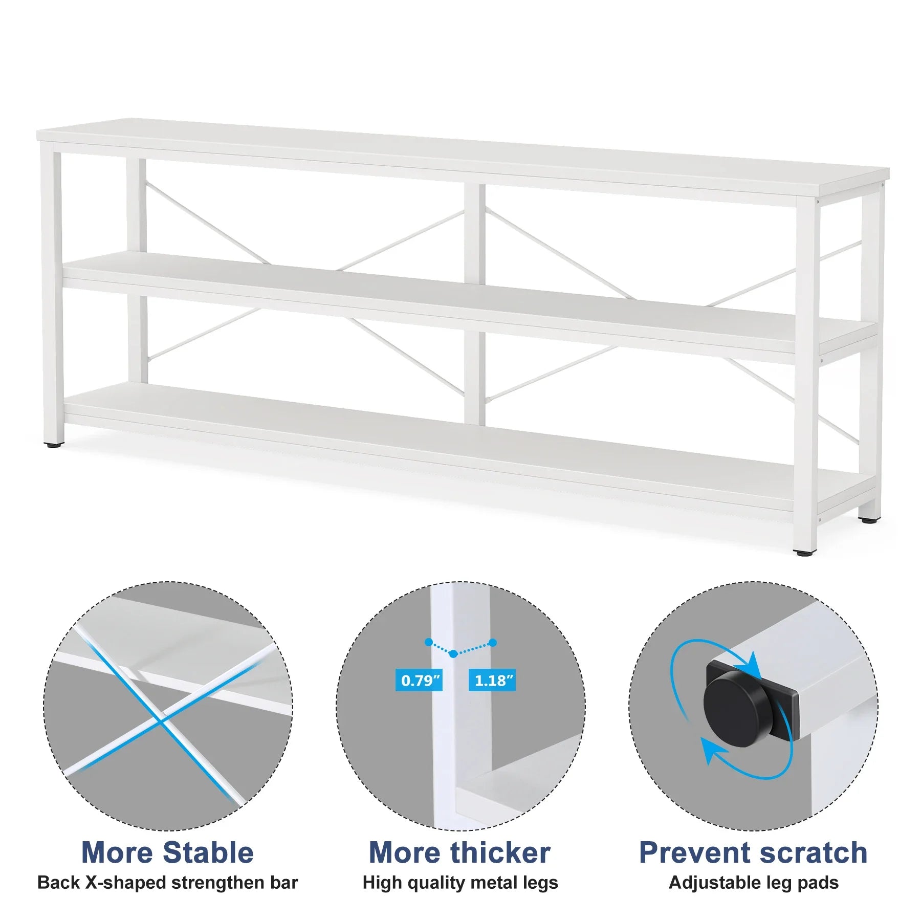 MonoWood 71" Sofa Tables,Extra Long Couch Table, Narrow Long Console Table, Sofa Table with 3 Tiers Storage Shelves