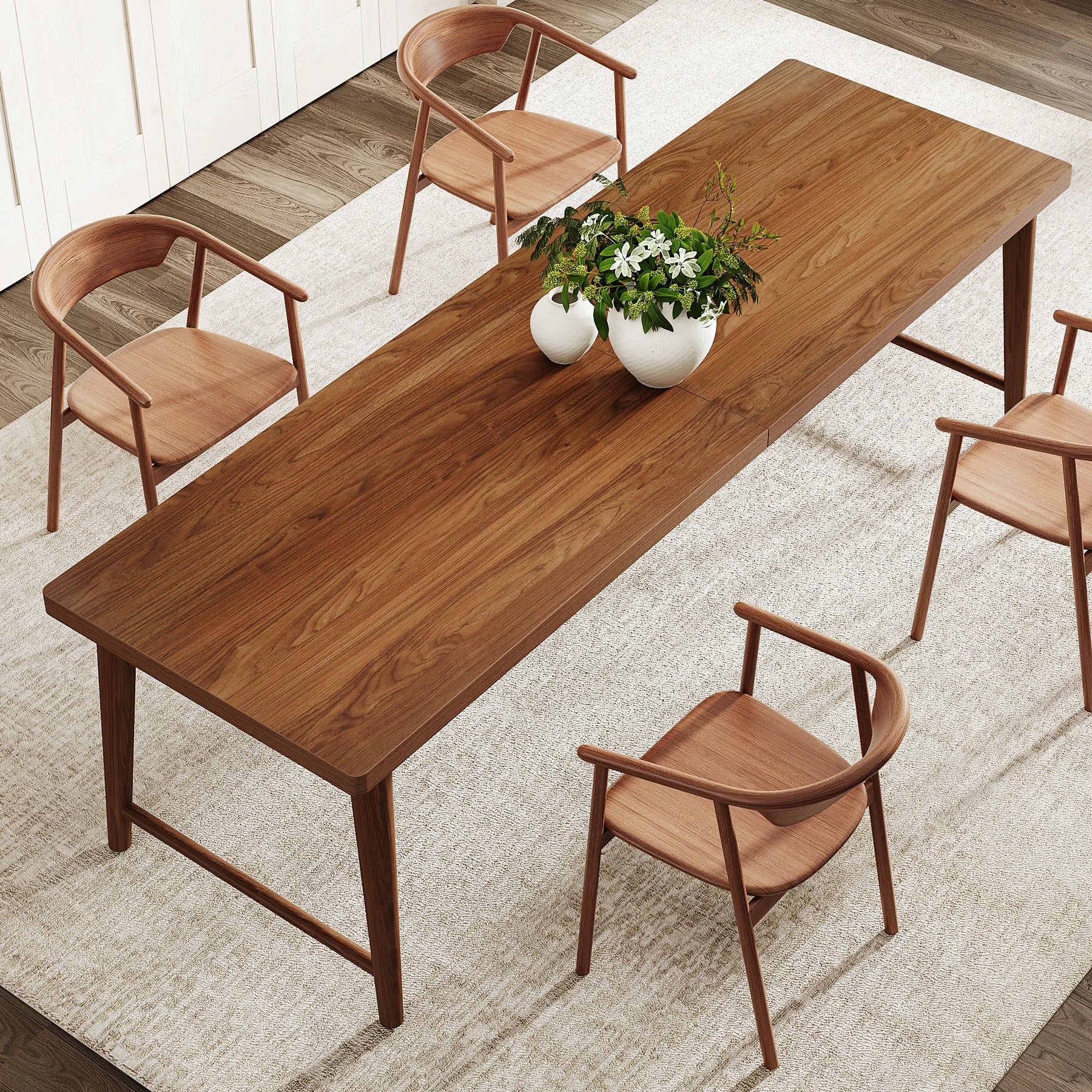 Mid-Century Elegance - Dive into the enduring appeal of mid-century aesthetics with this sophisticated dining room table. Drenched in a deep walnut hue, it brings a dash of retro refinement to your dining space, enriching its visual allure. Its sleek lines and uncluttered design make it a perfect focal point for both laid-back family meals and elaborate formal affairs.